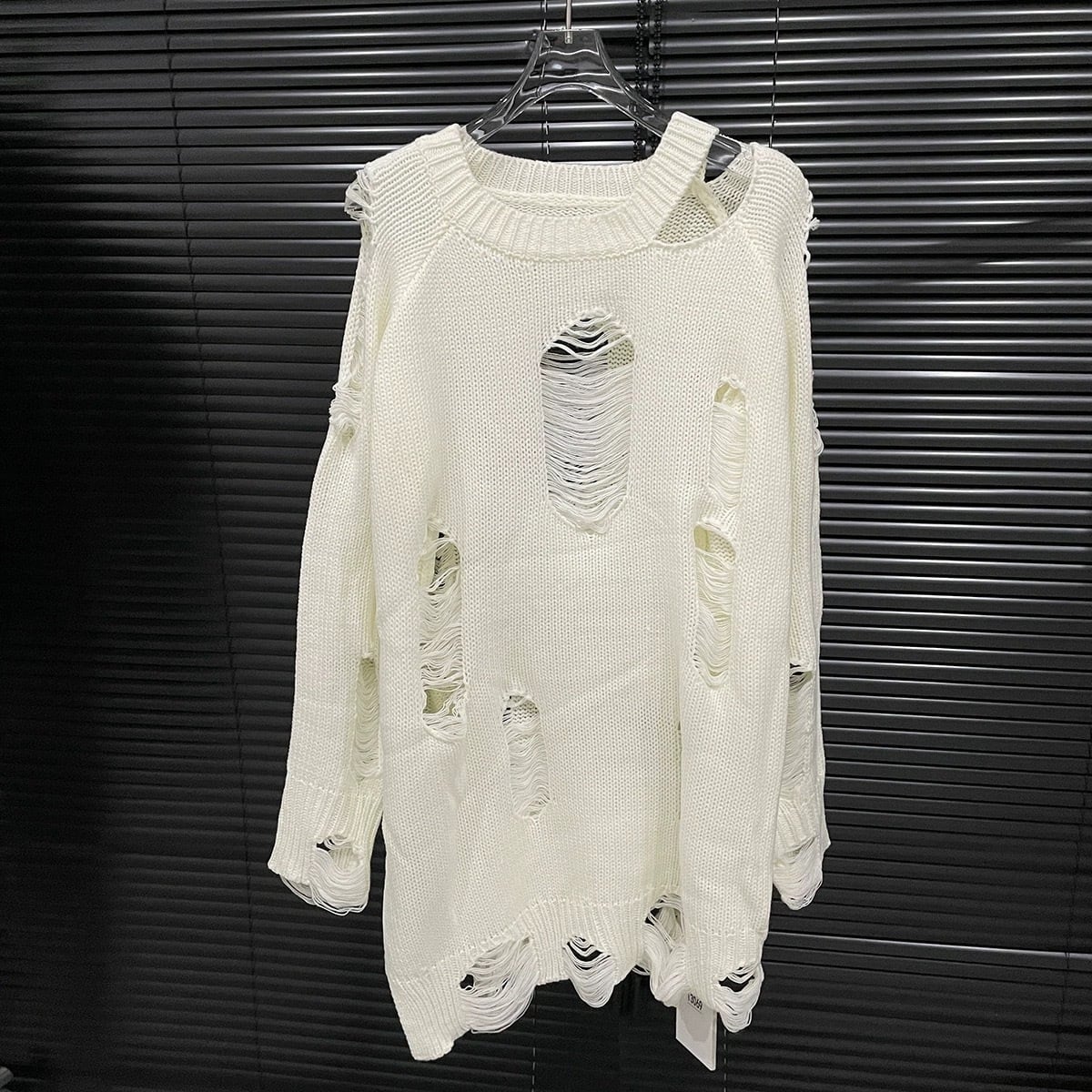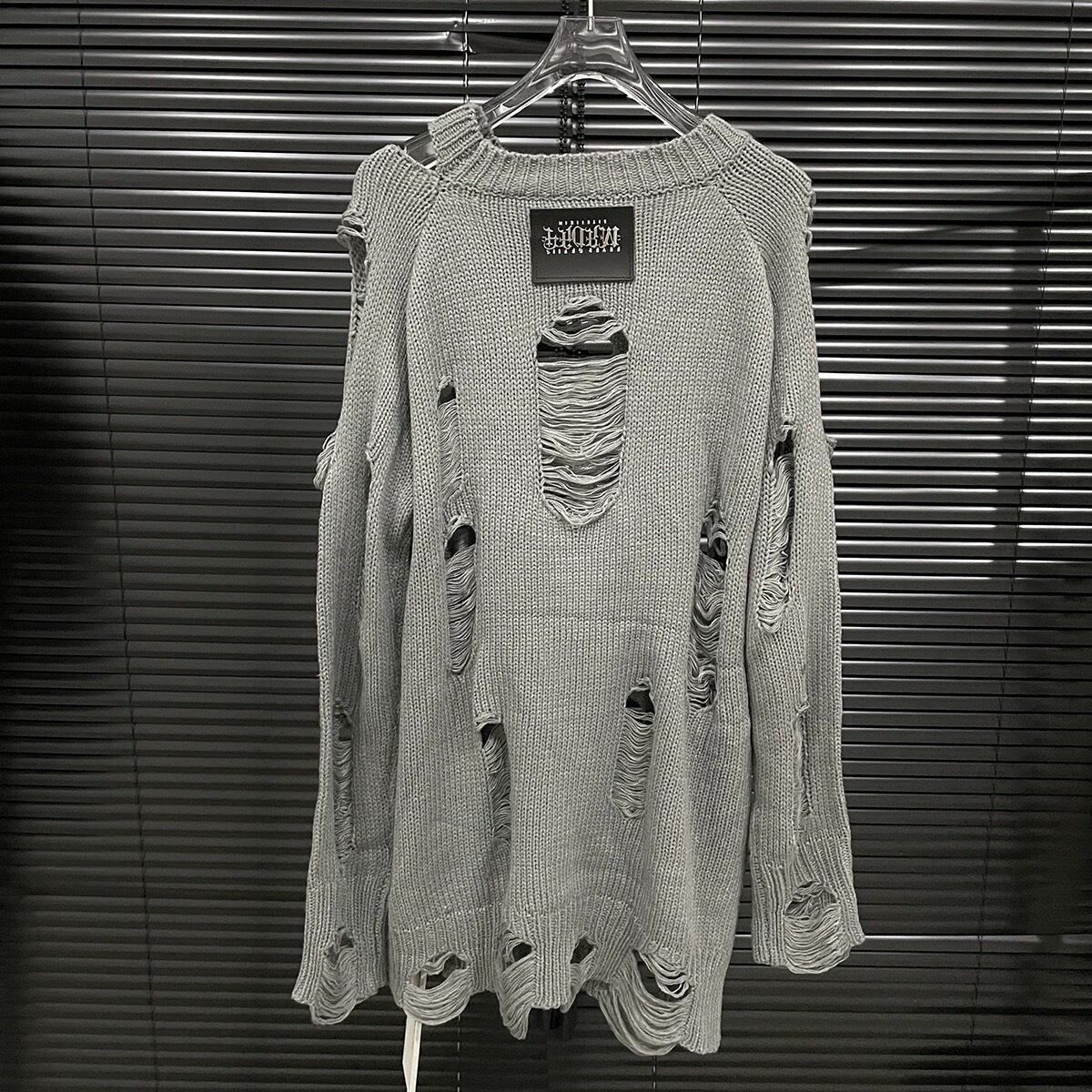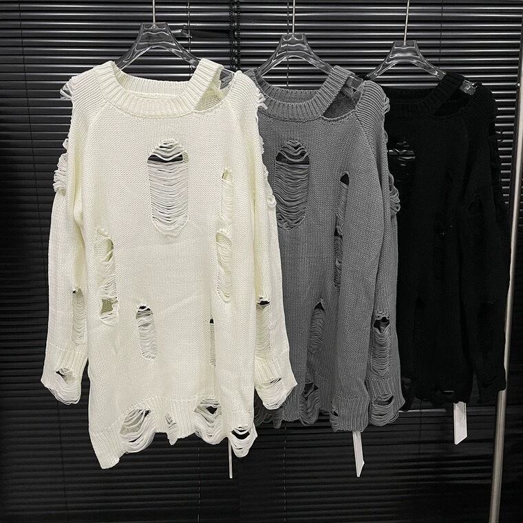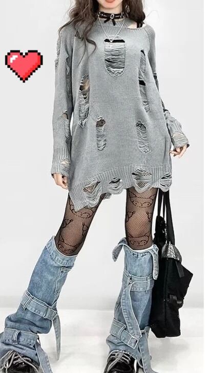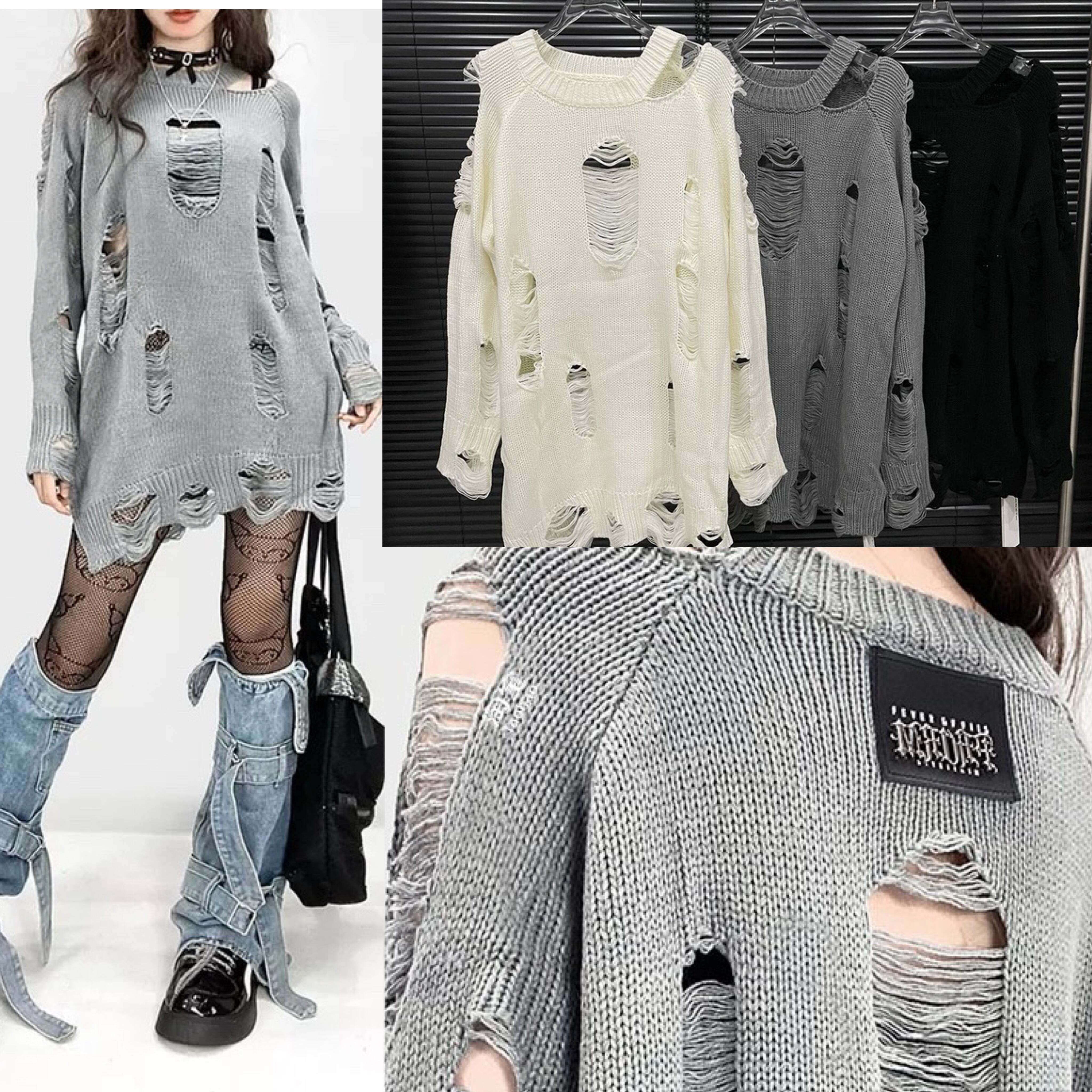 ダメージ 黒 グレー 白 セーター カーディガン ワンピース