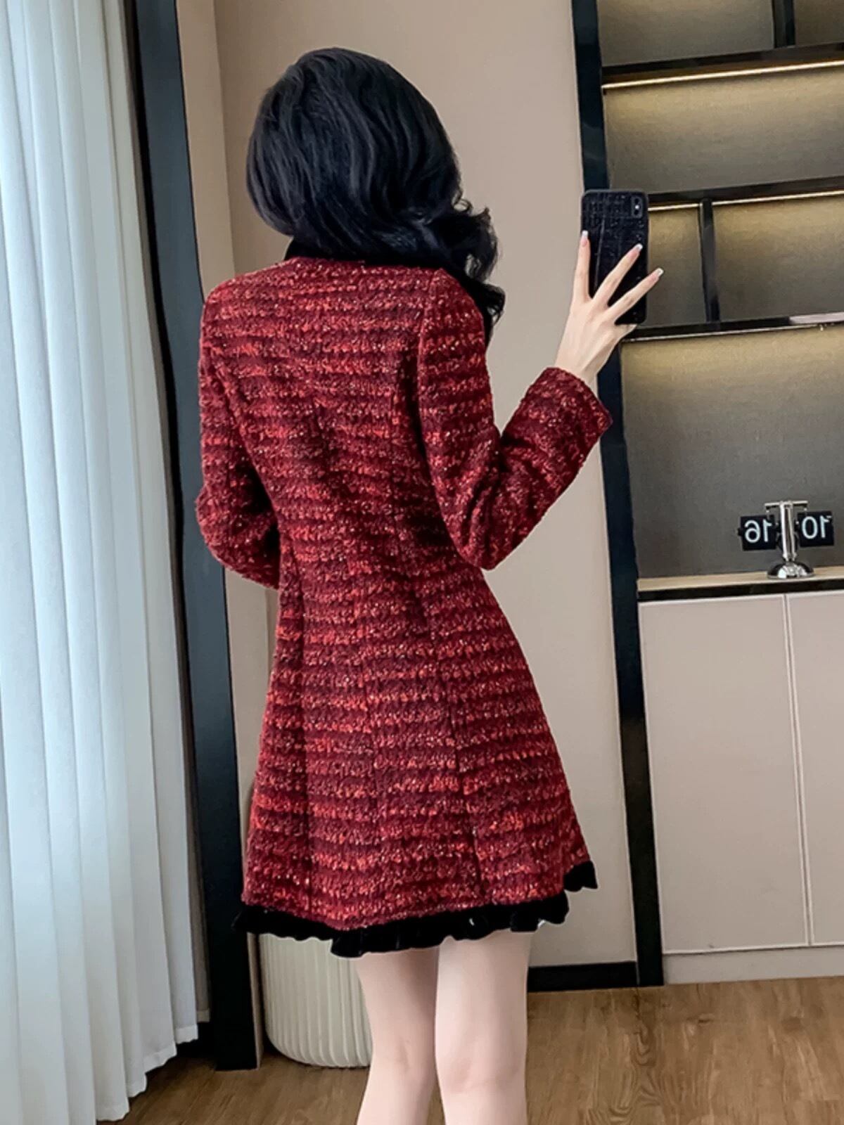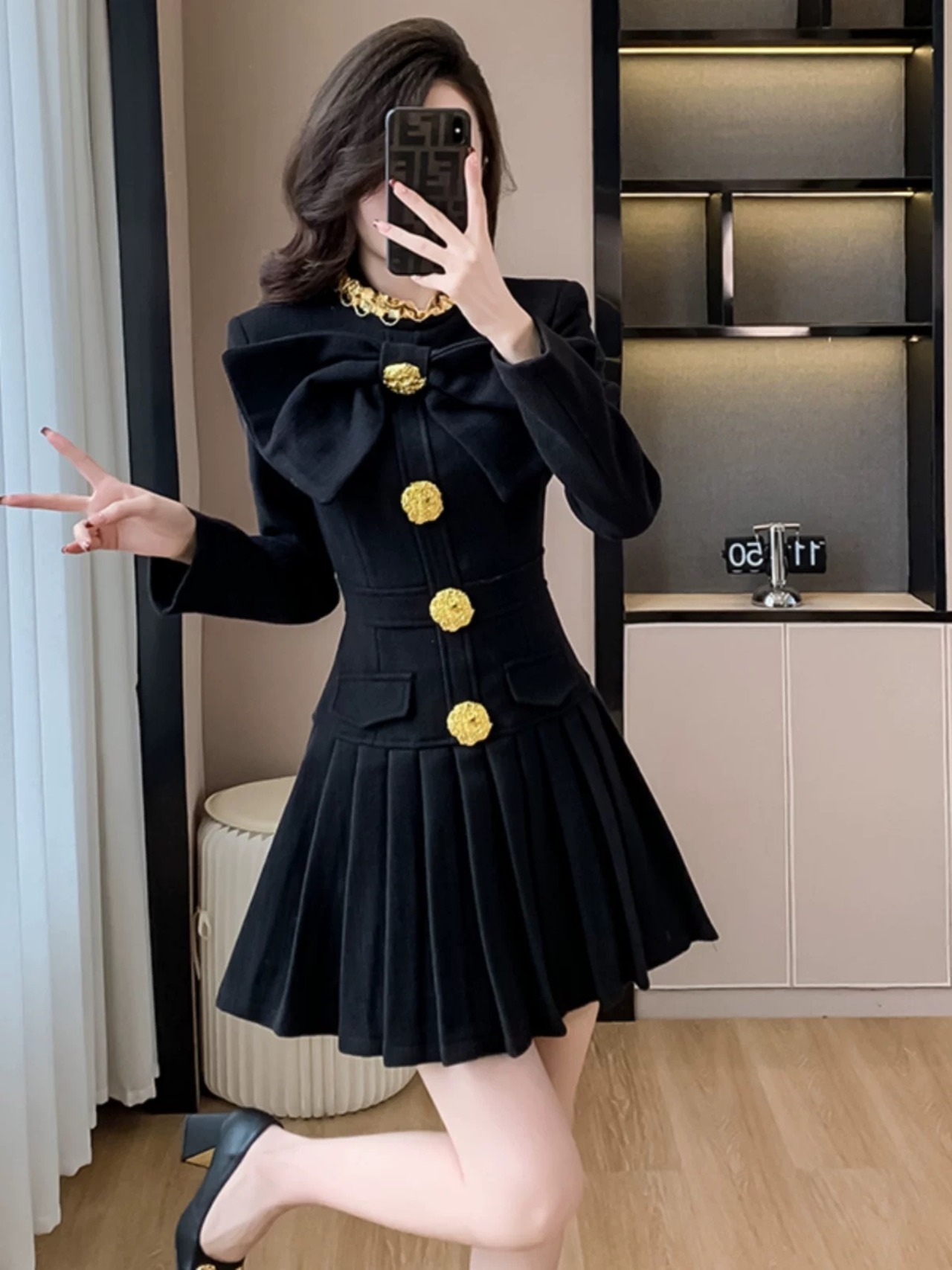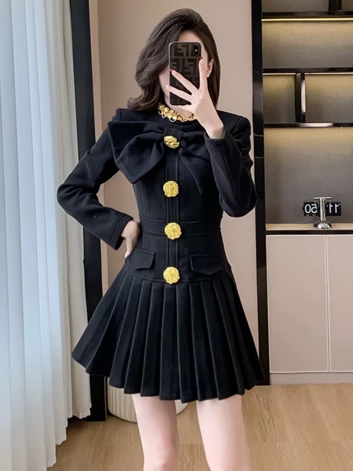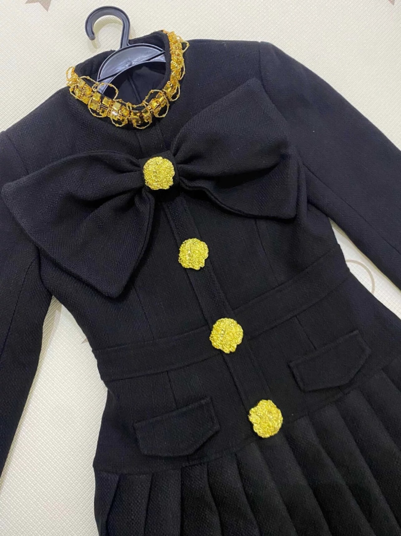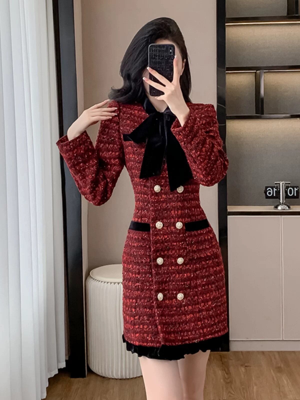 チェック 緑 黒 金色 ボタン ワンピース リボン 赤 黒