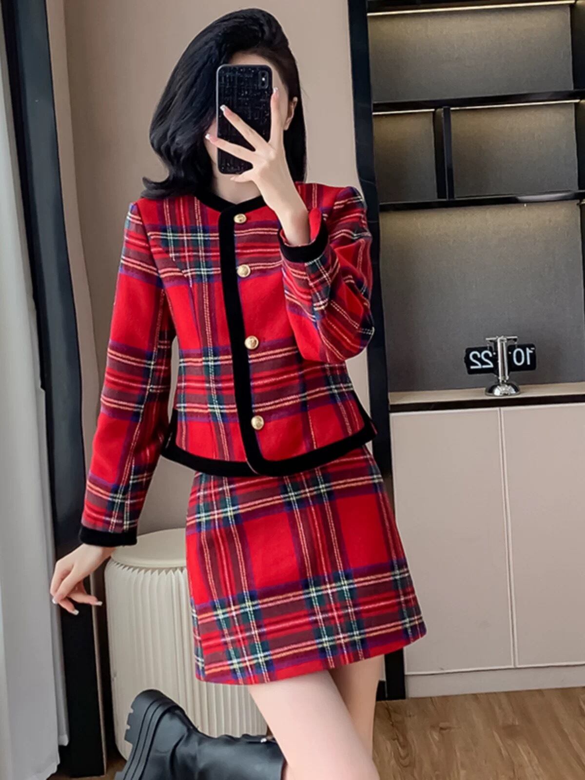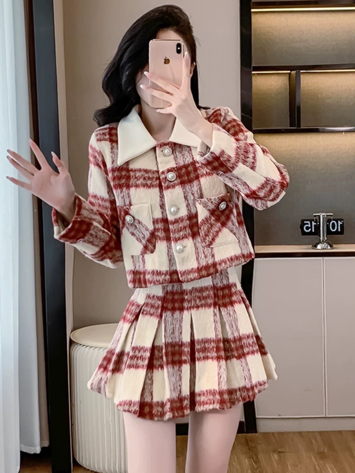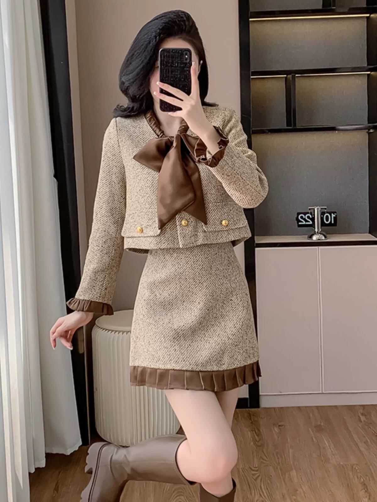 【セットアップ】茶色 リボン 赤 チェック ピンク