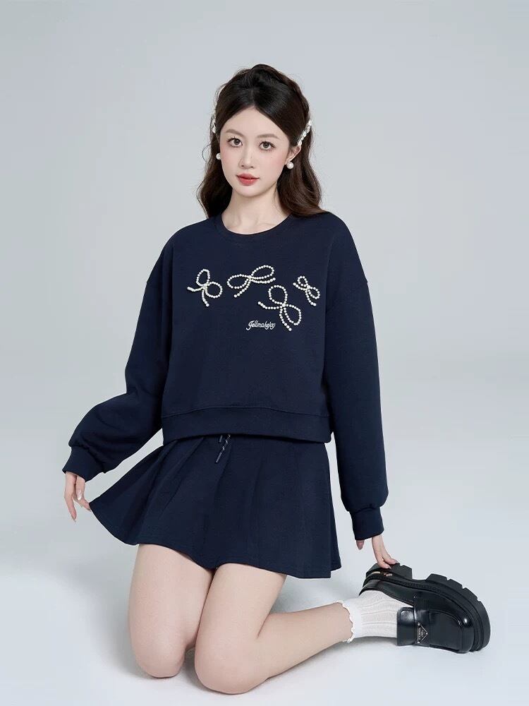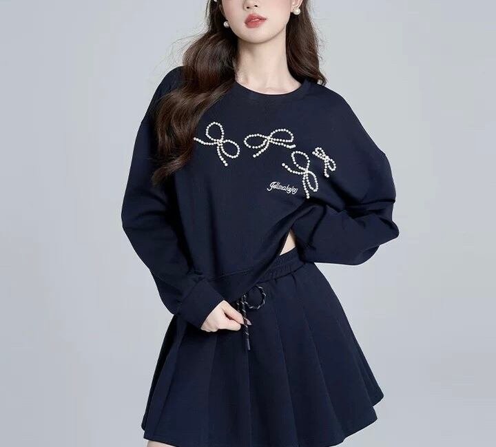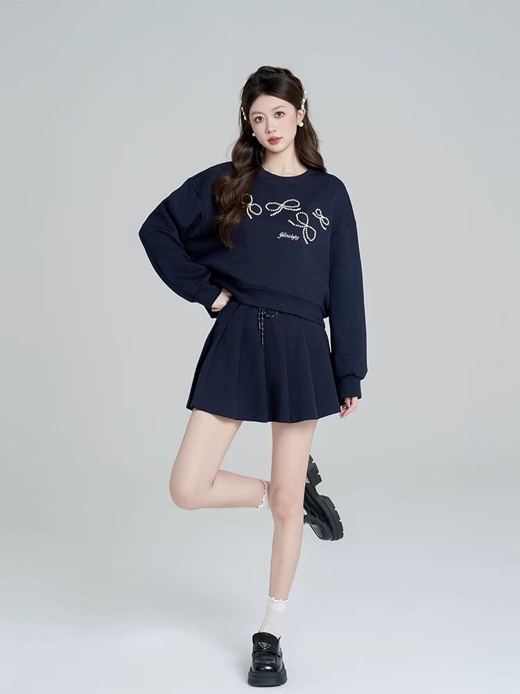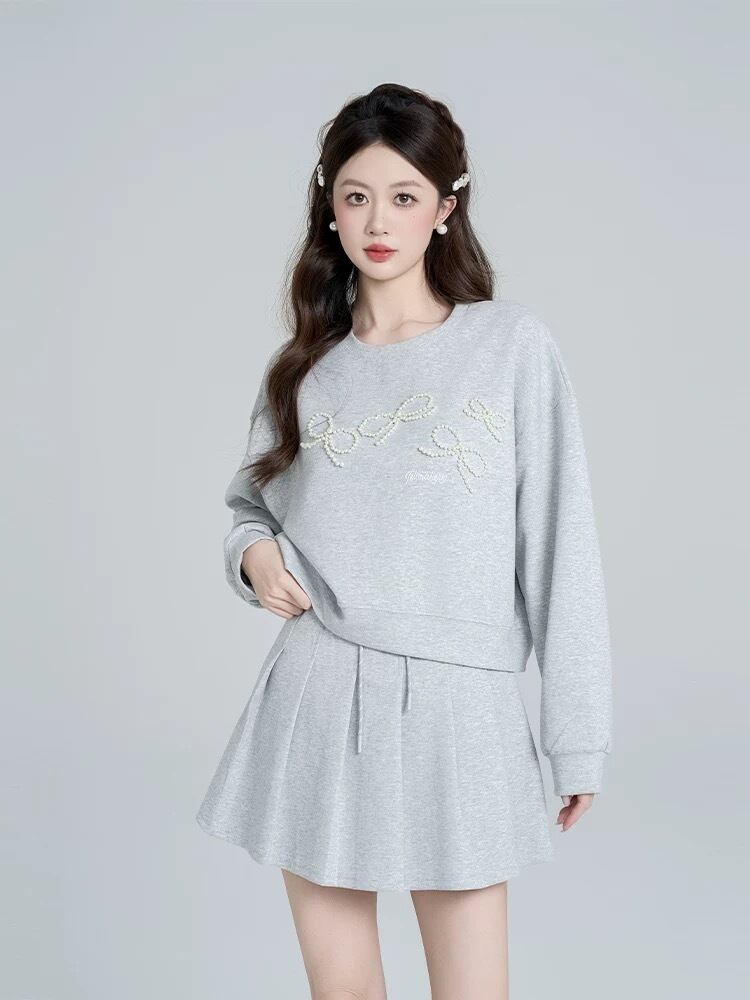 【セットアップ】黒 グレー パール ミニスカート スウェット