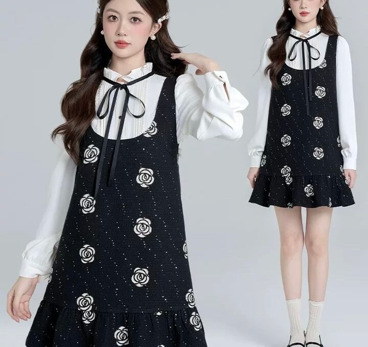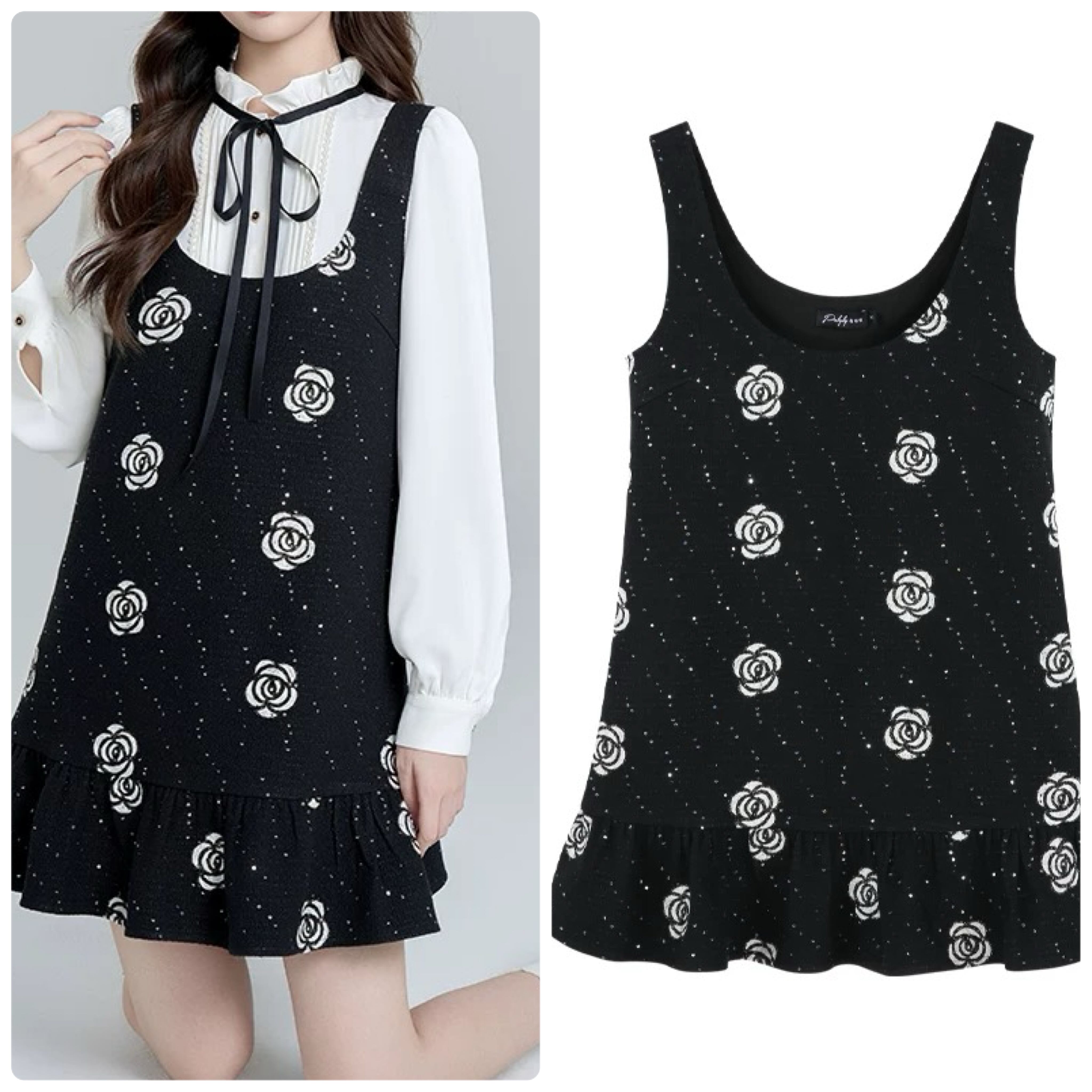 【ワンピース】薔薇 花柄 黒 可愛い フラワー