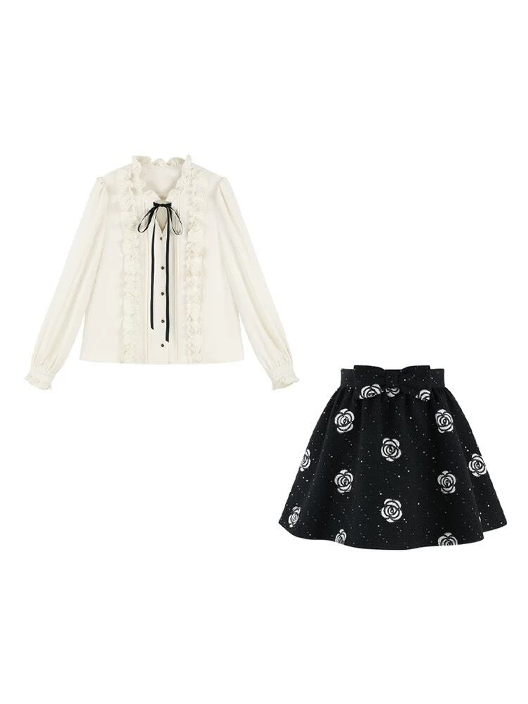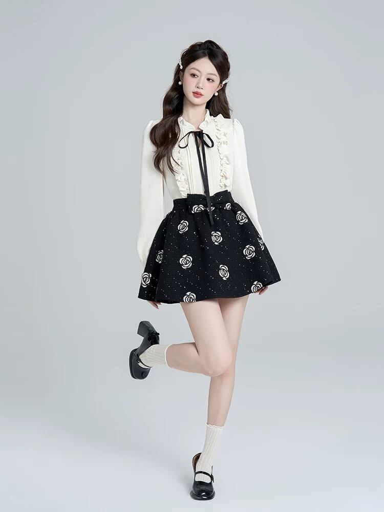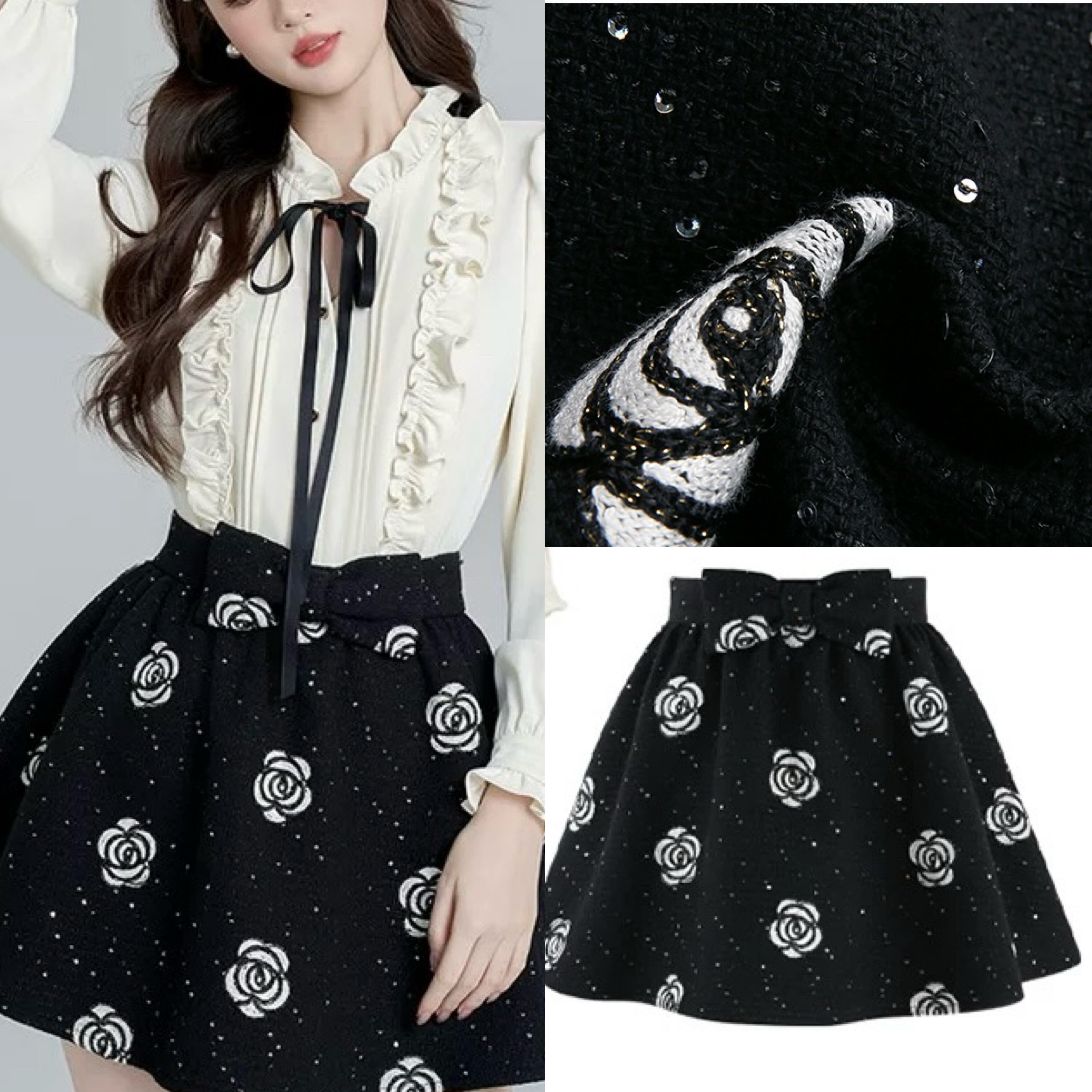 【スカート】黒 バラ フラワー 花柄 ミニスカート