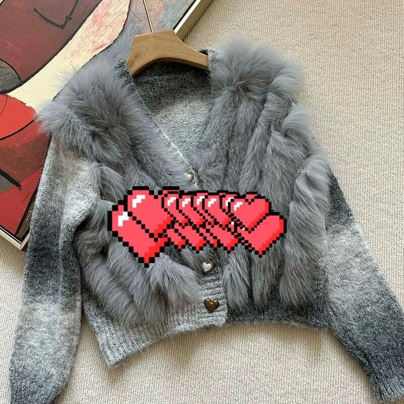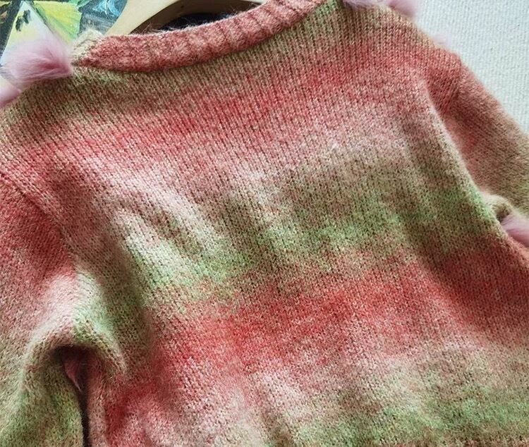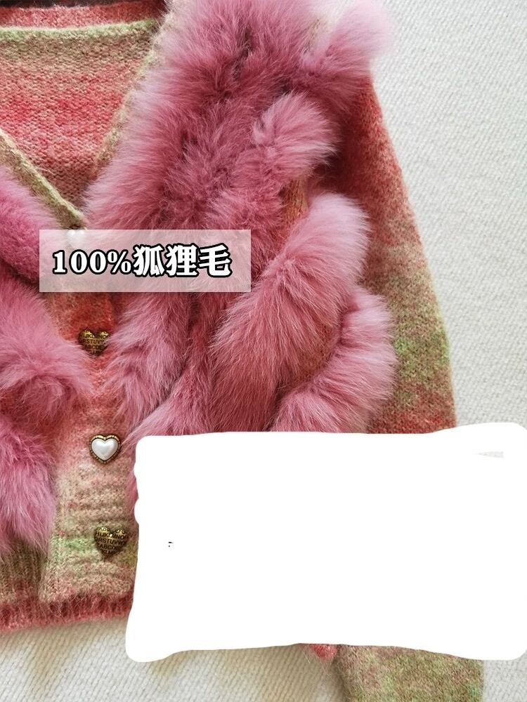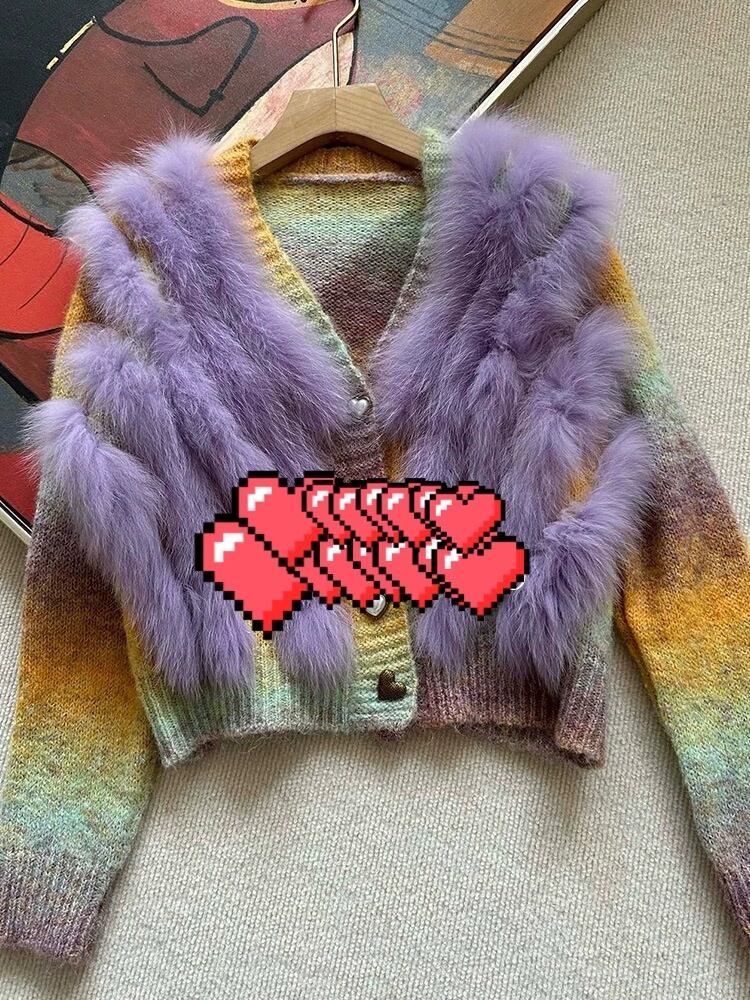 グラデーション カーディガン 紫 ピンク 緑 水色 ファー グレー フォックス