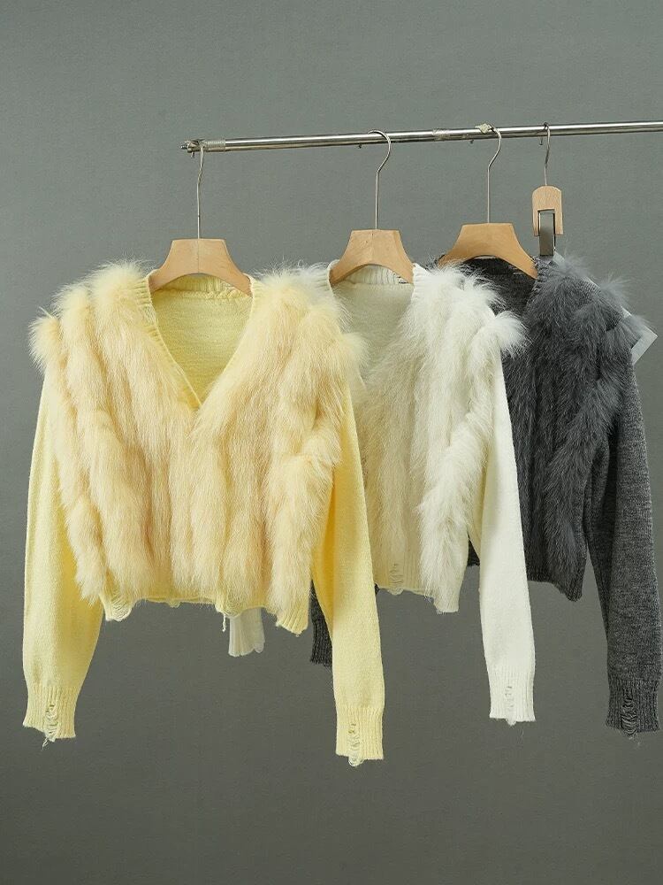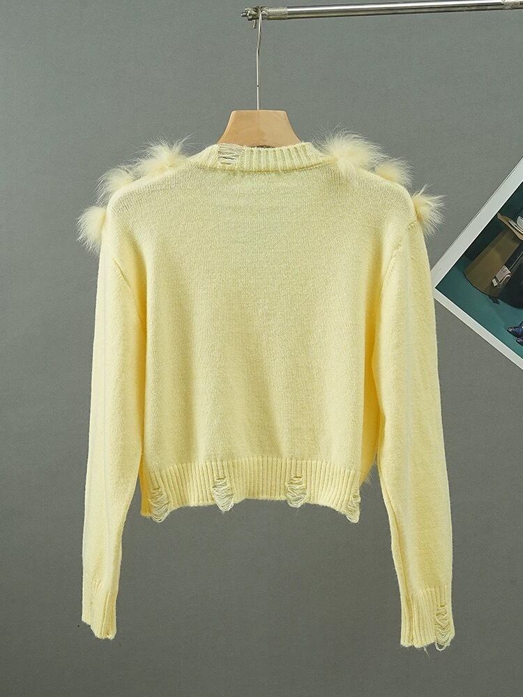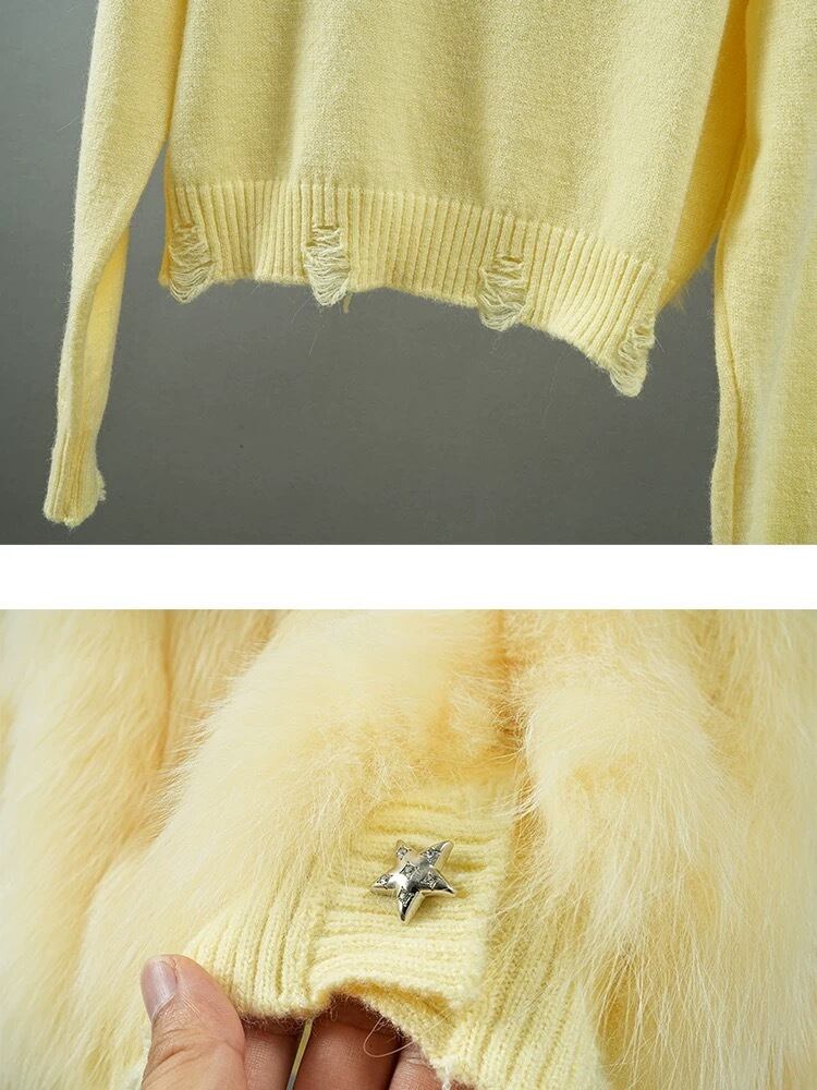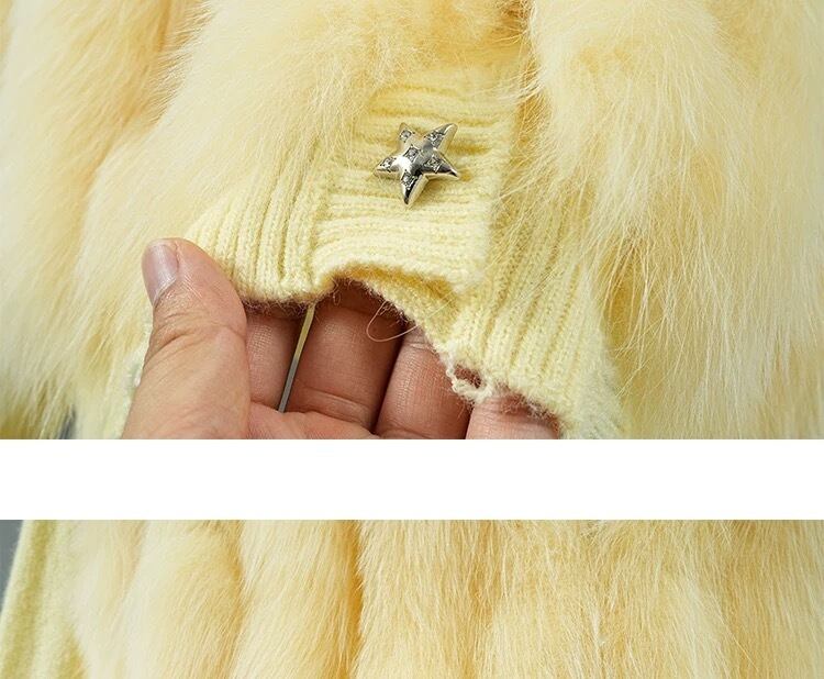 星 黄色 白 カーディガン グレー ファー