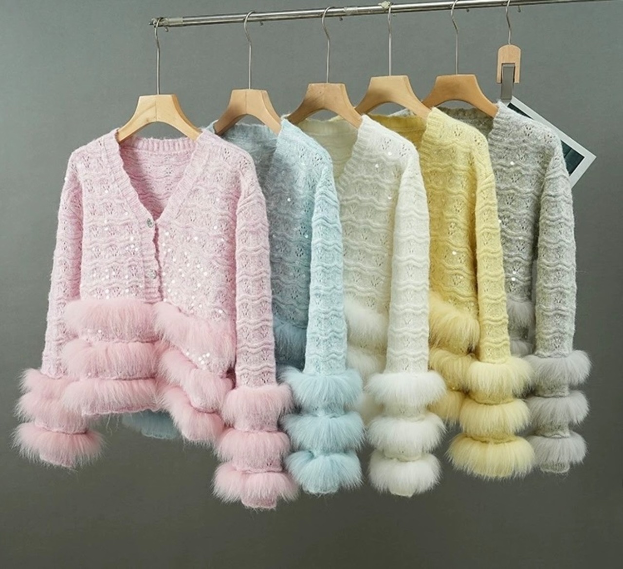 水色 ピンク 黄色 カーディガン キラキラ 白 グレー