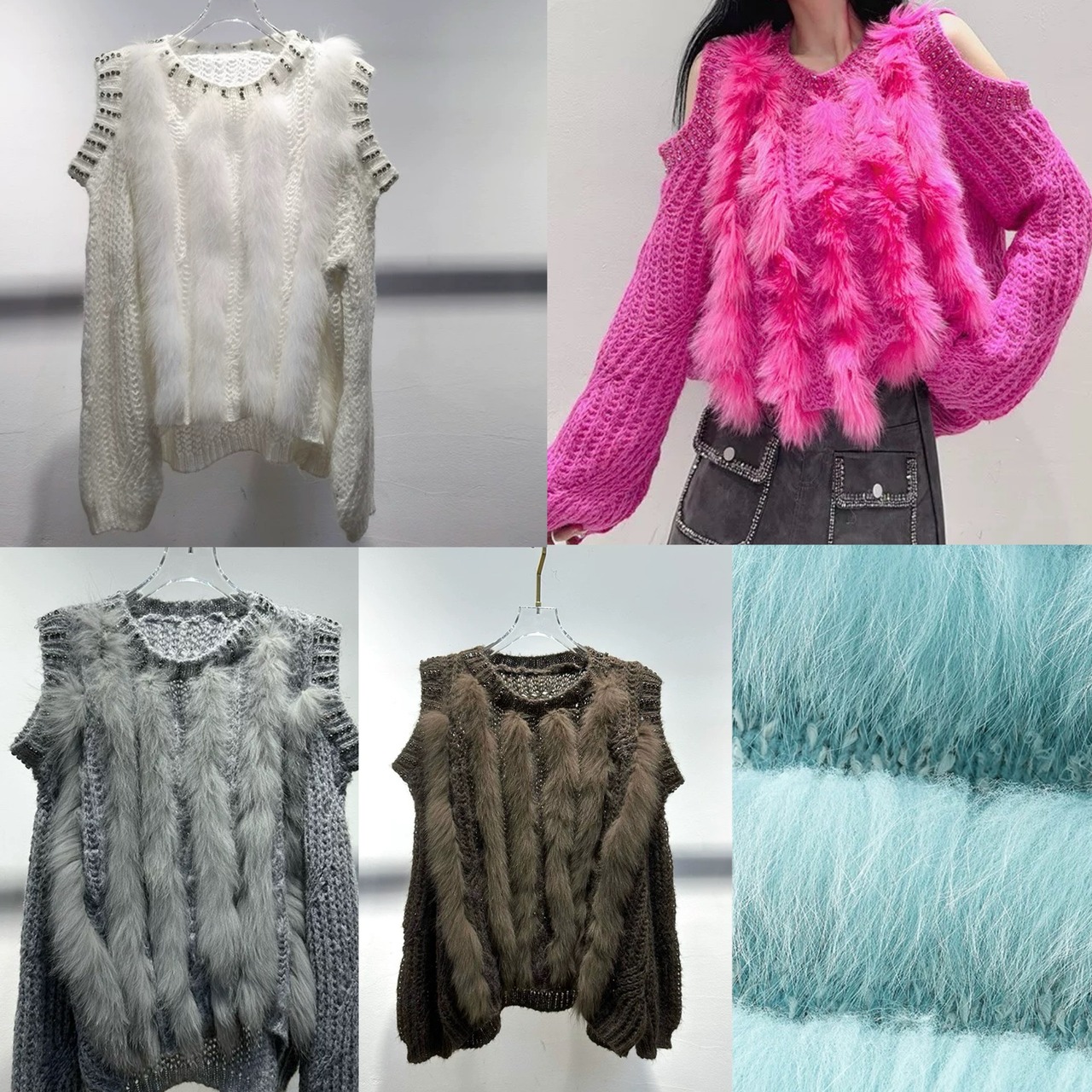オフショルダー ピンク 黒 白 水色 セーター グレー カーディガン