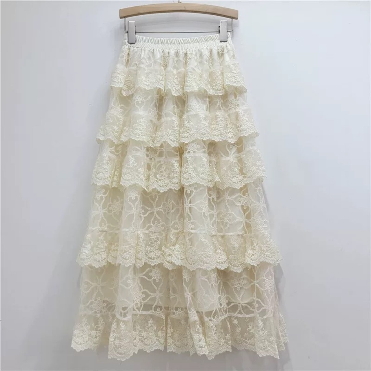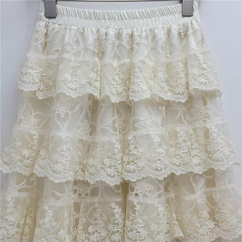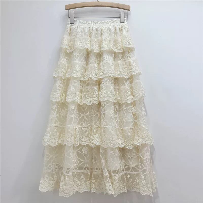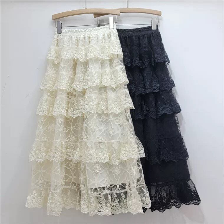 ボトムス 黒 白 フレア スカート 花柄 レース