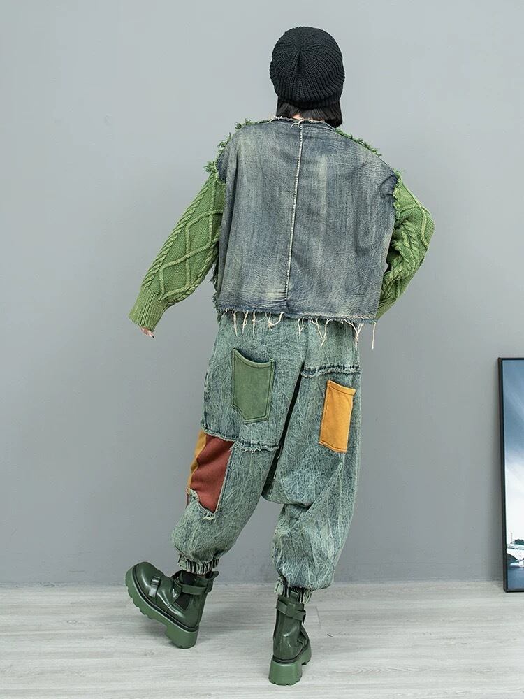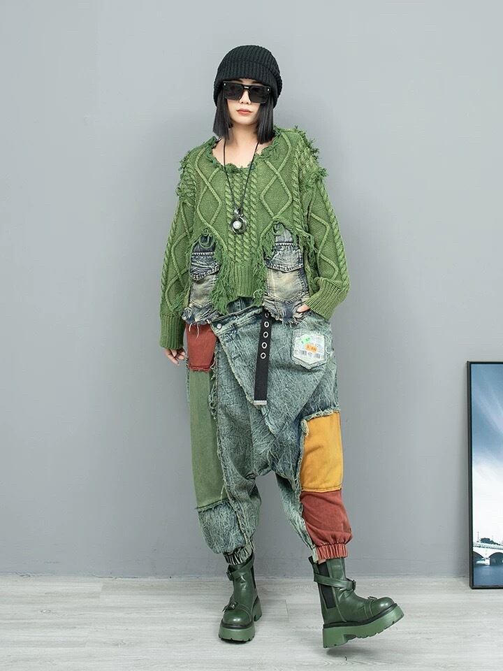 デニム ダメージ 緑 オレンジ セーター 茶色 黒