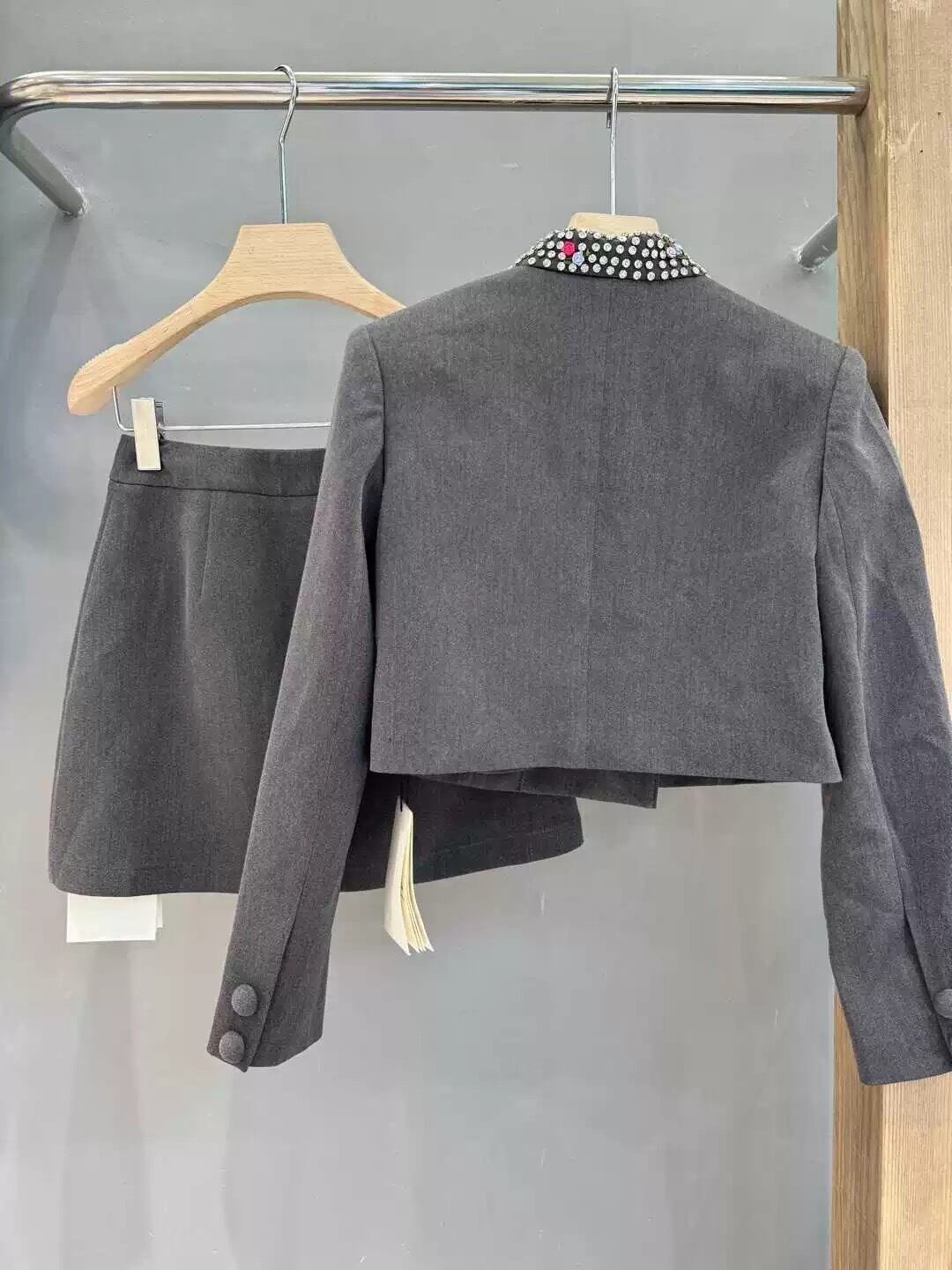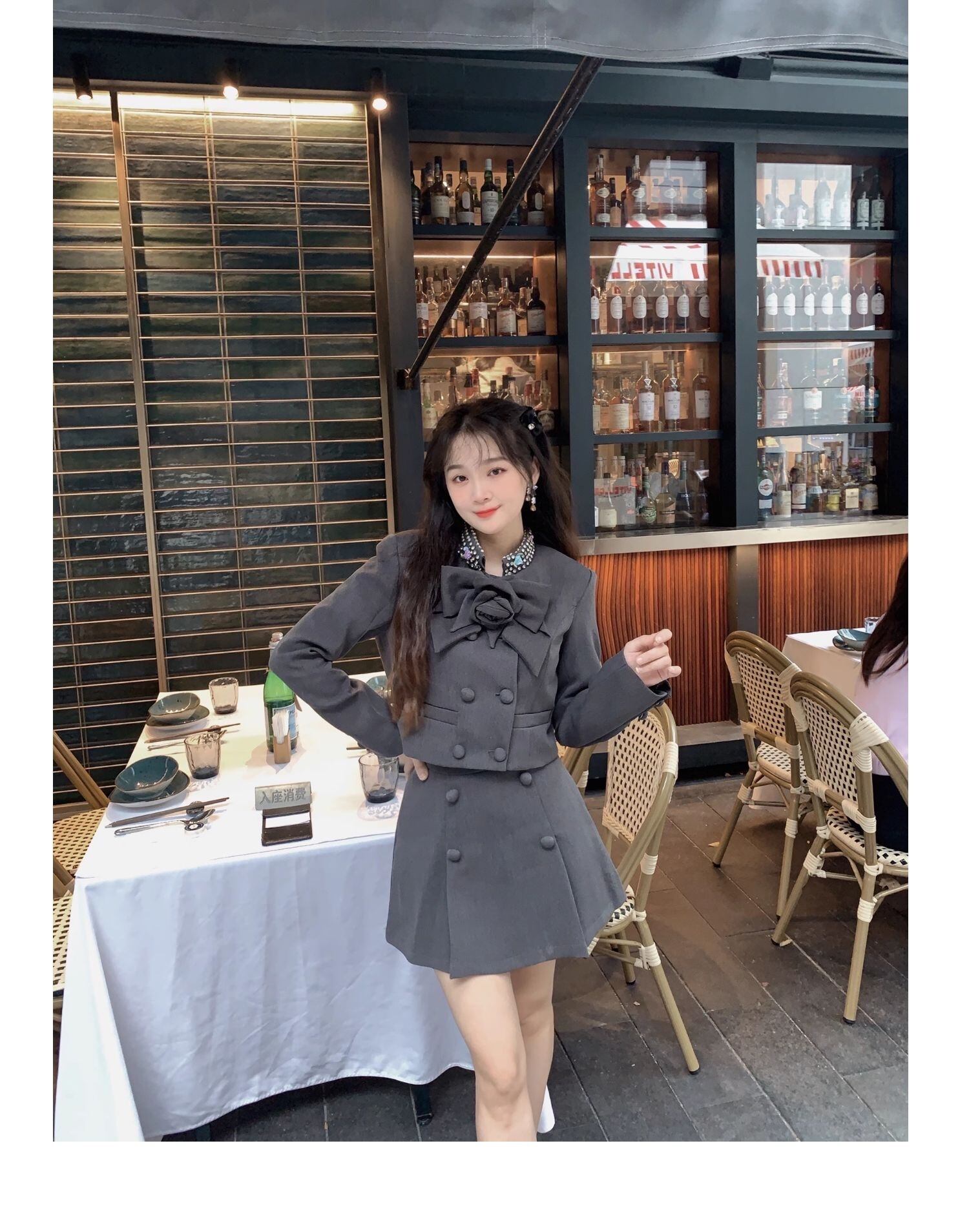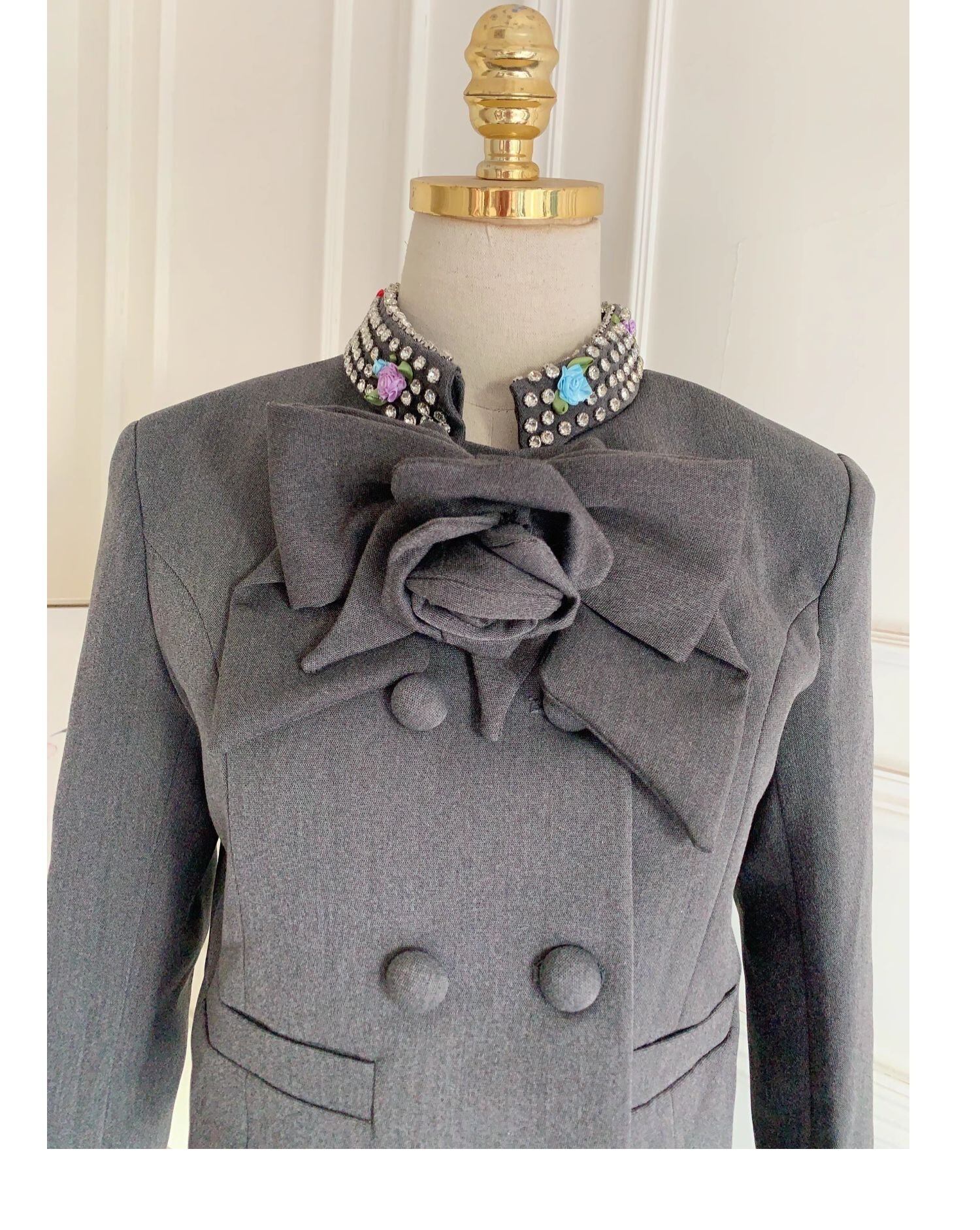 【セットアップ】グレー カメリア 薔薇 ジャケット スカート ツーピース