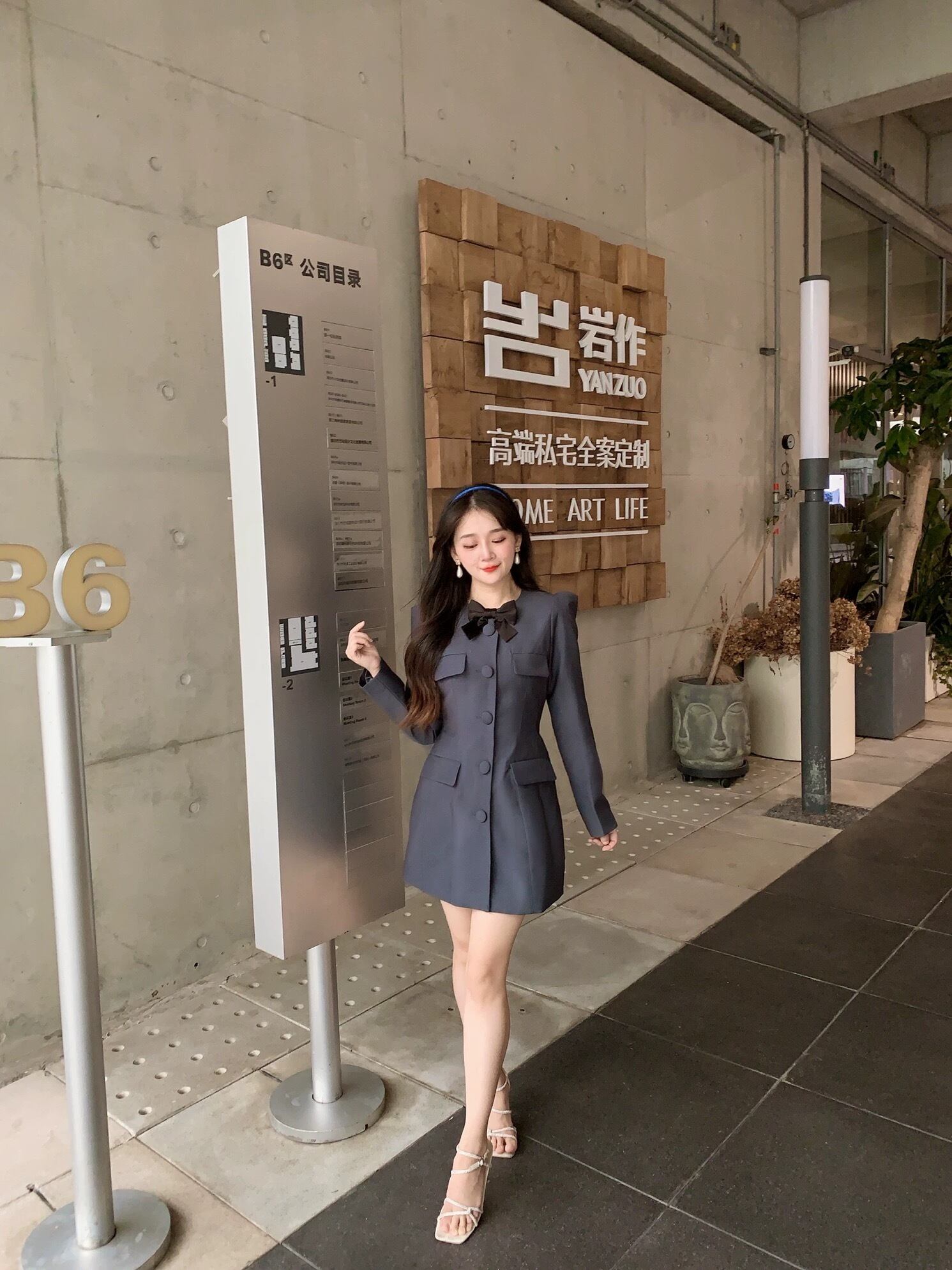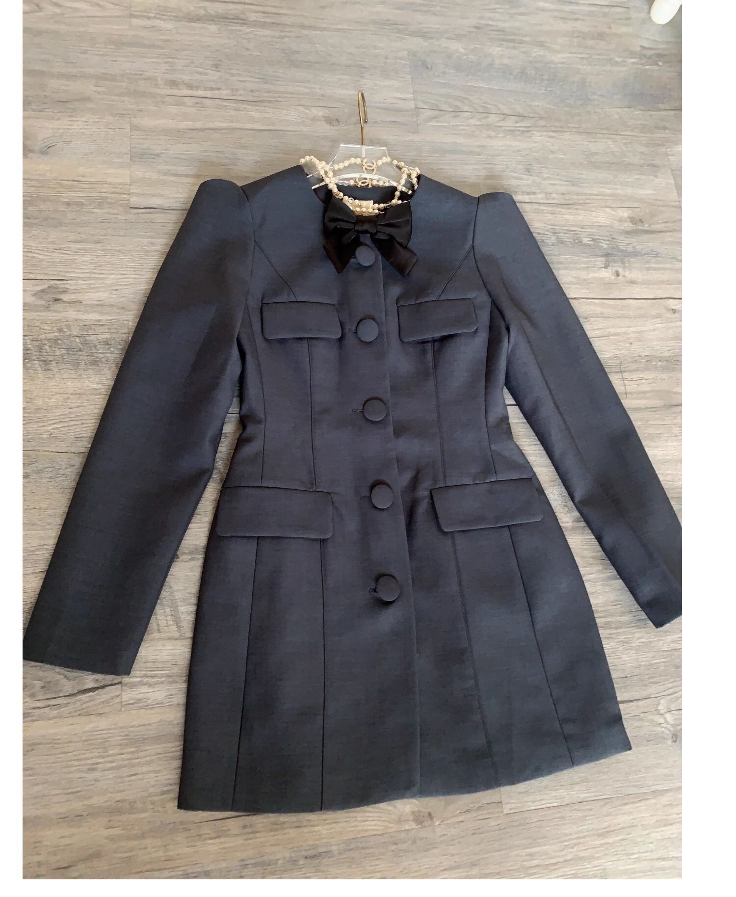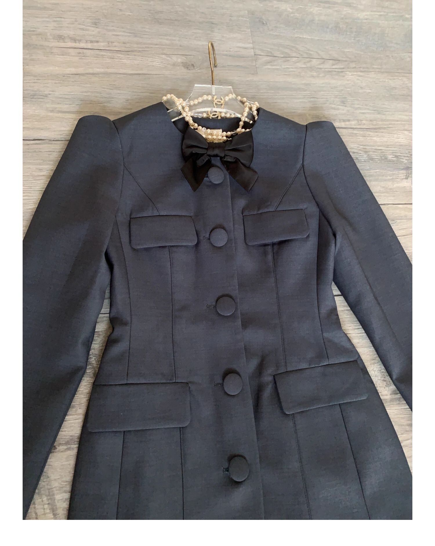 グレー ワンピース ジャケット リボン アウター