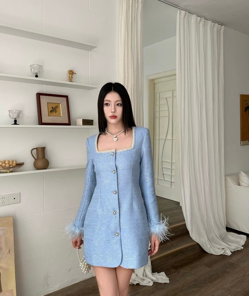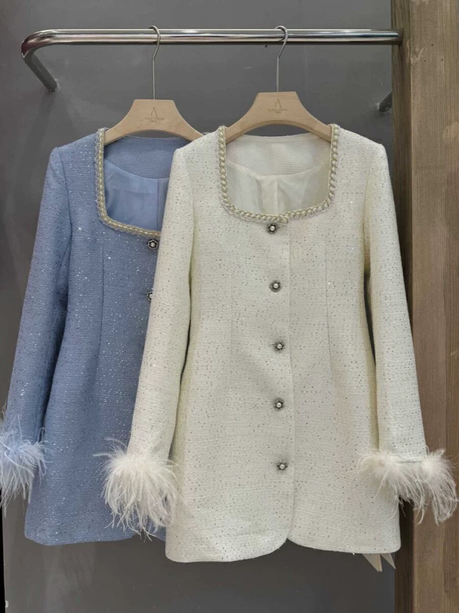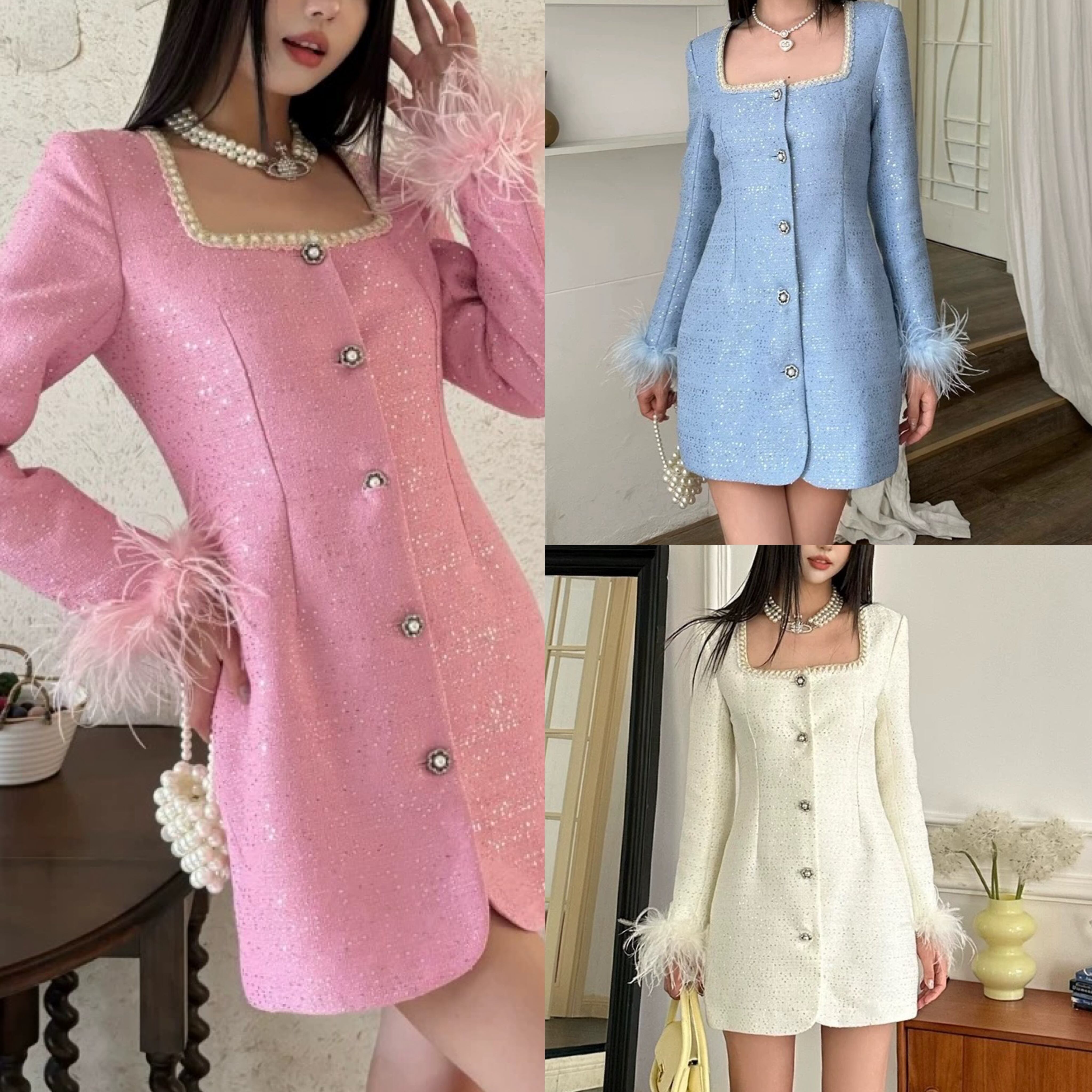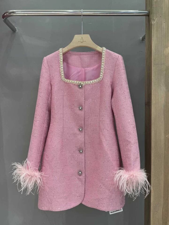 ピンク 白 水色 ワンピース コート ジャケット ファー