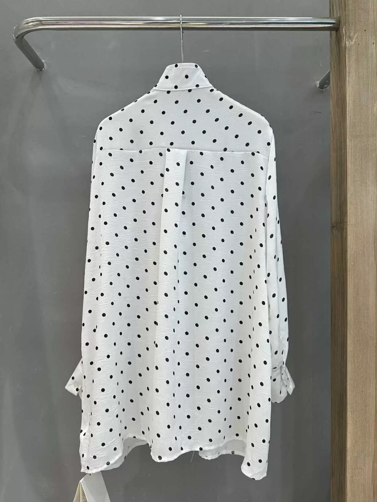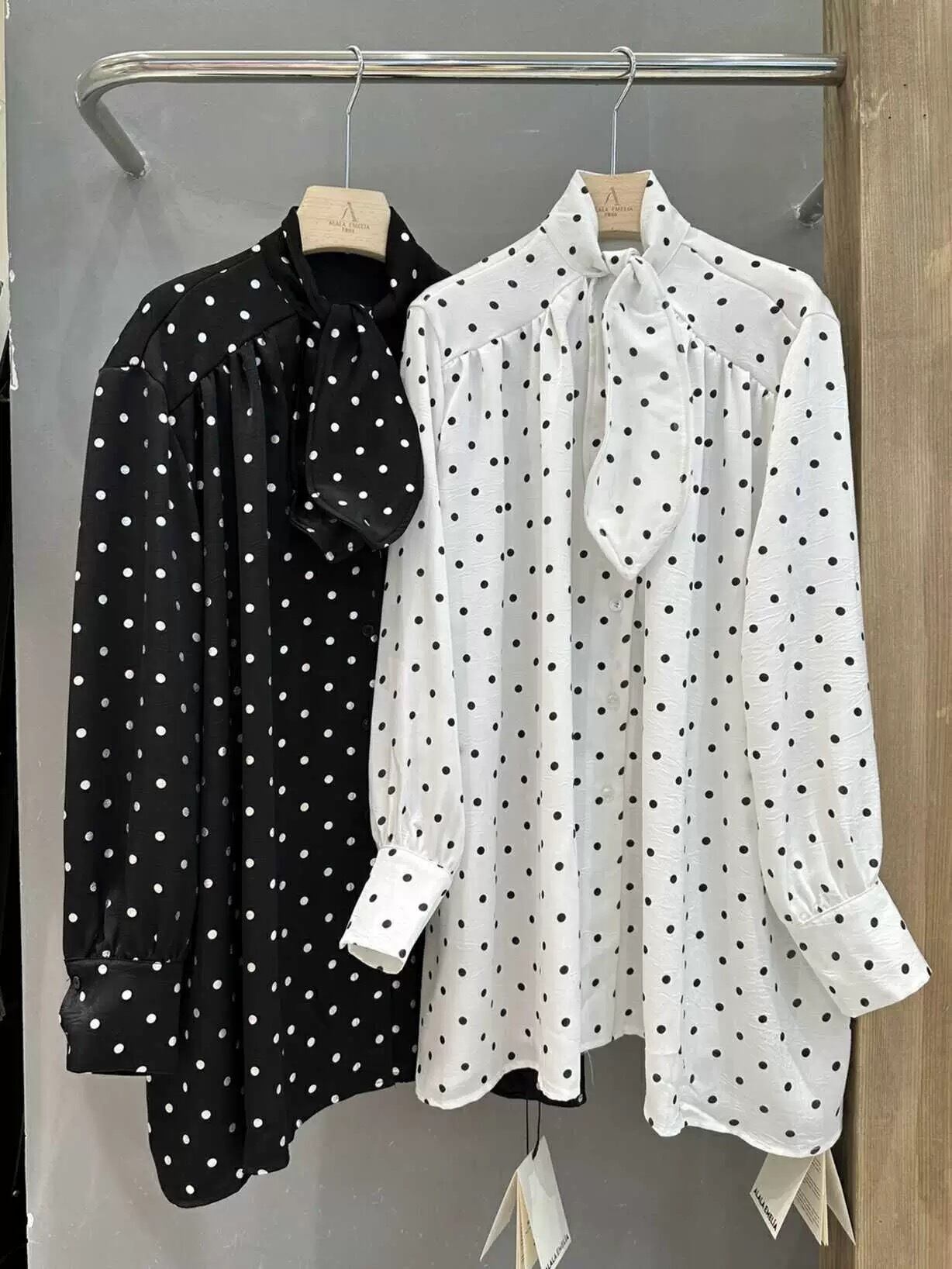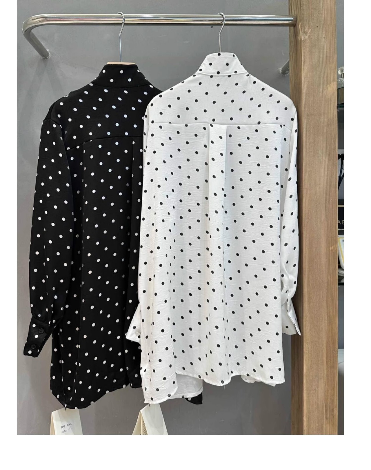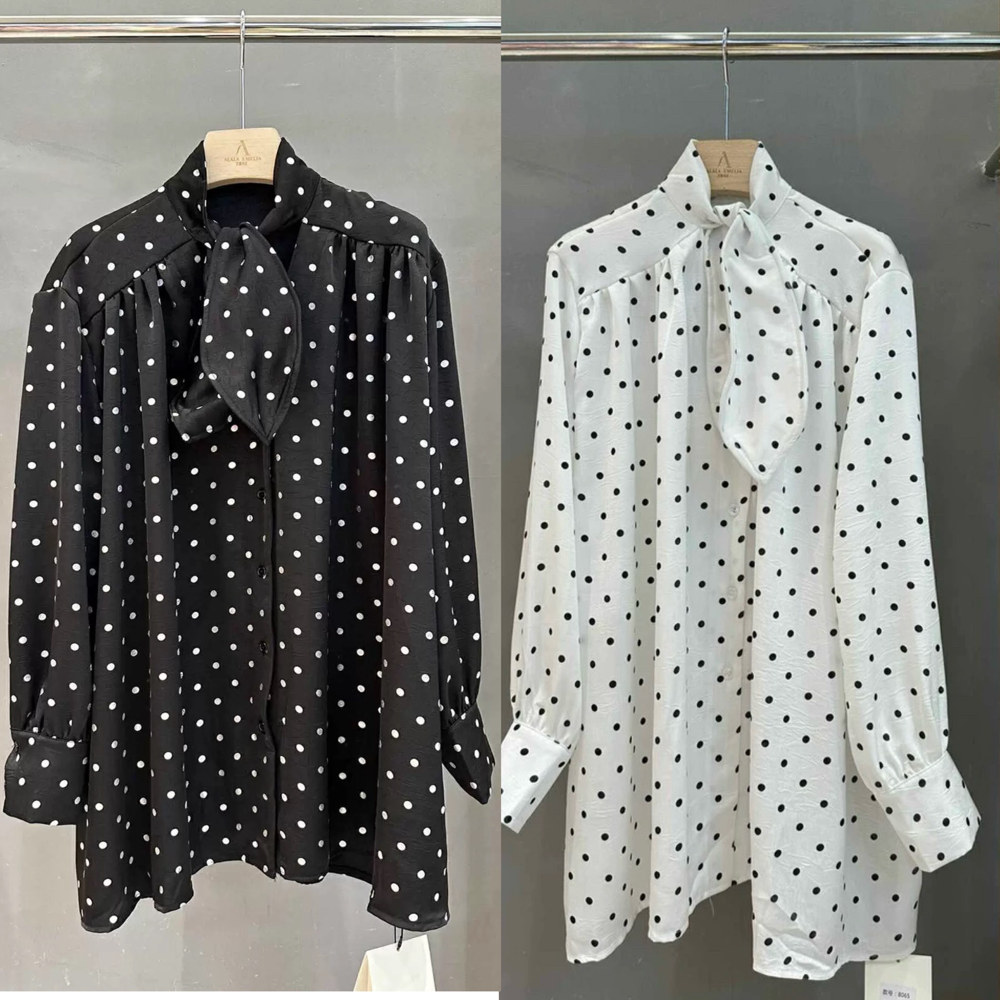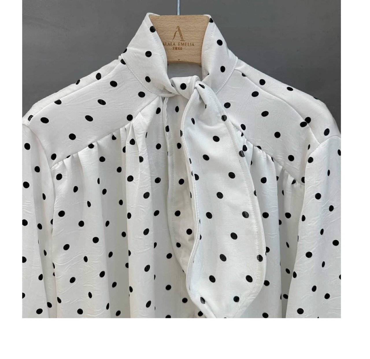 水玉 白 黒 ドット ブラウス ワンピース りぼ