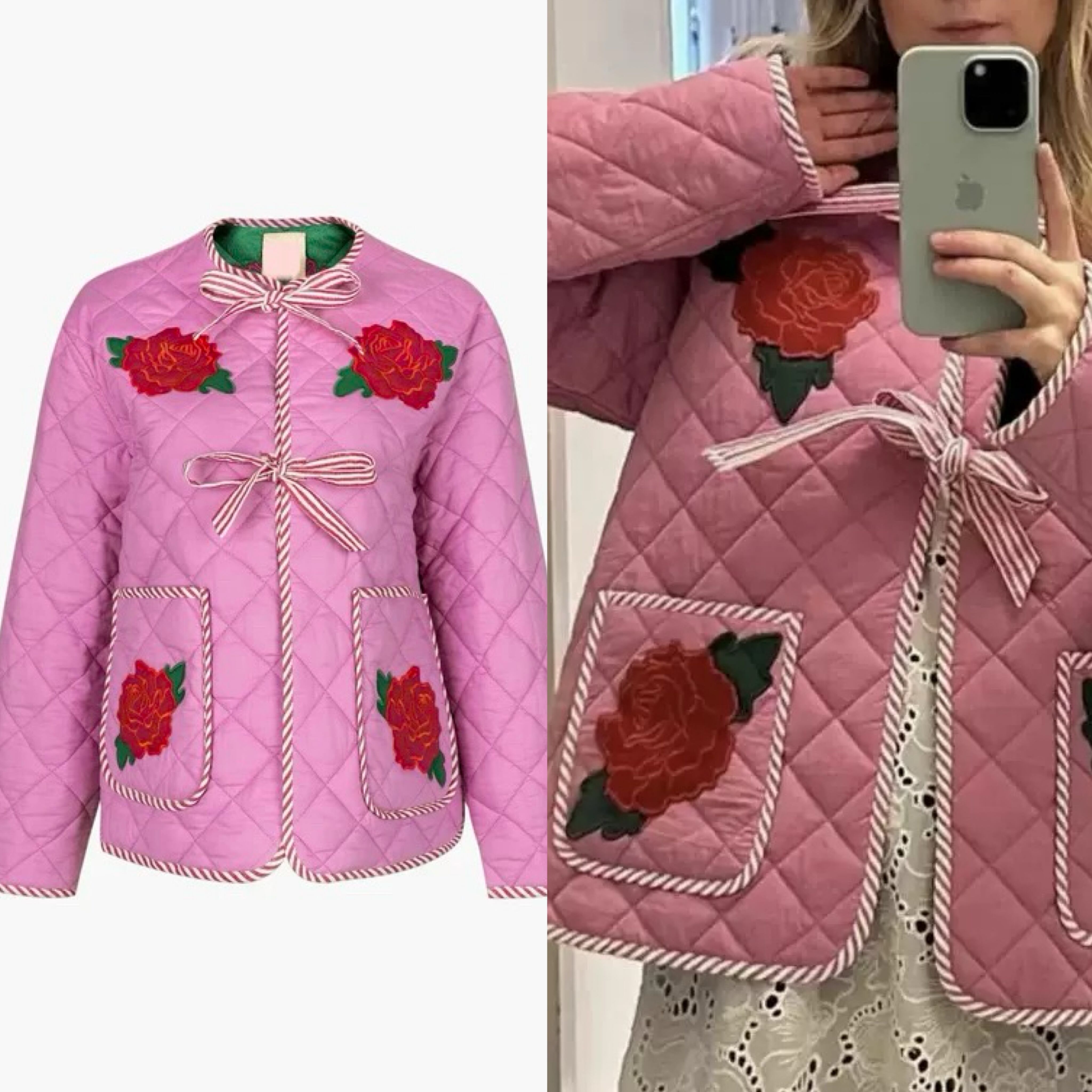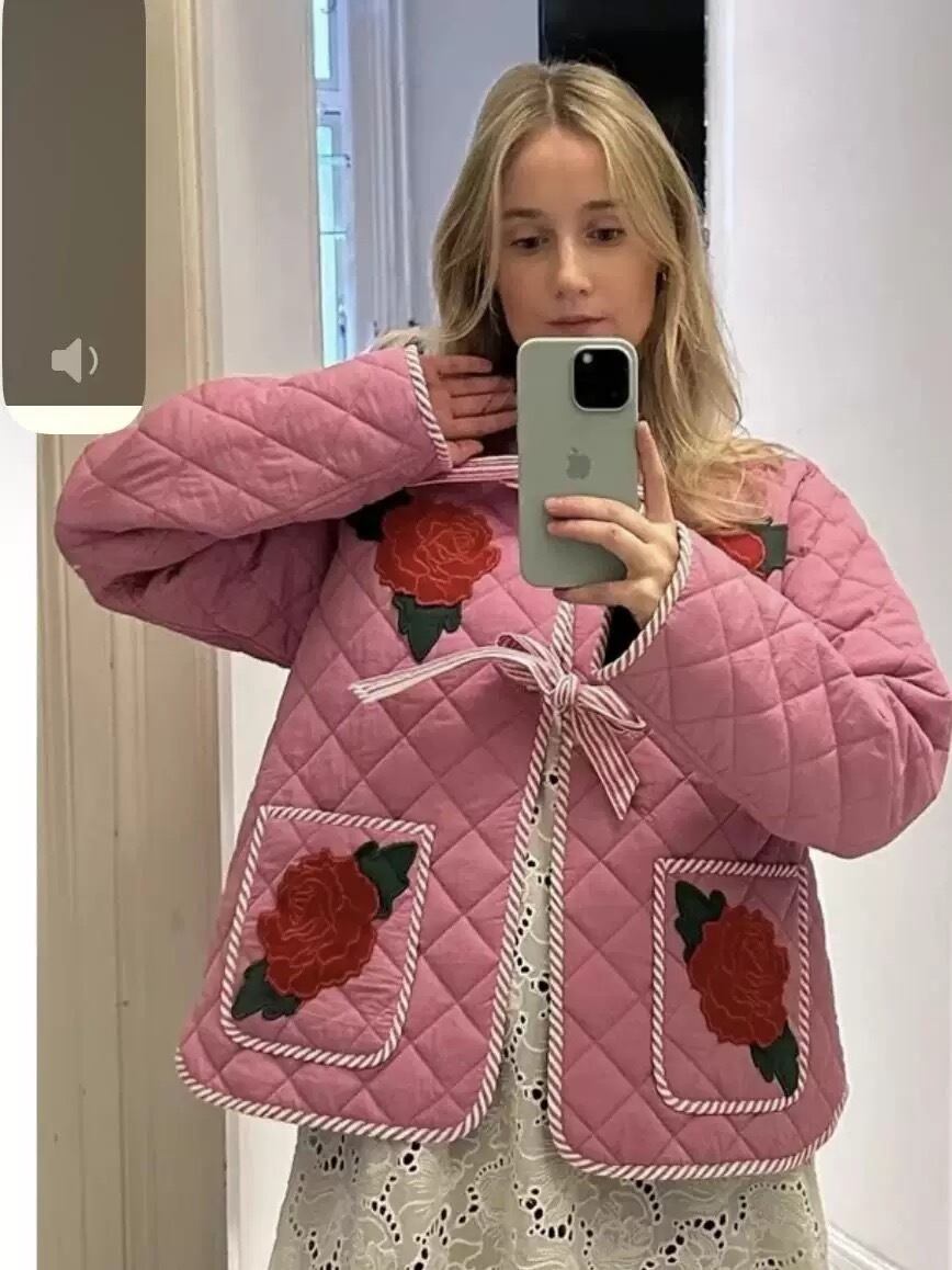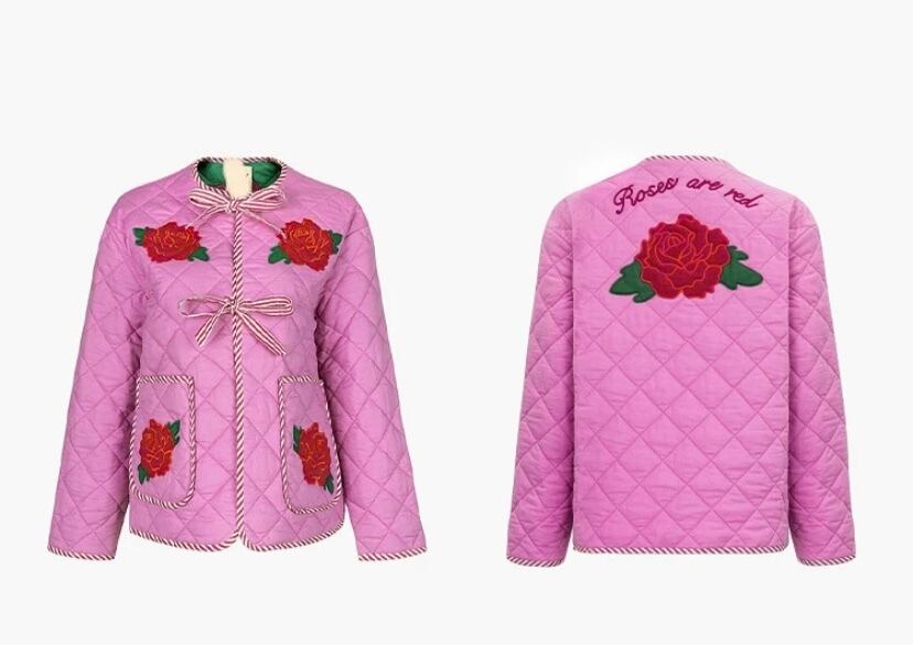 ピンク リボン 薔薇 フラワー ポケット ジャケット コート 緑 赤