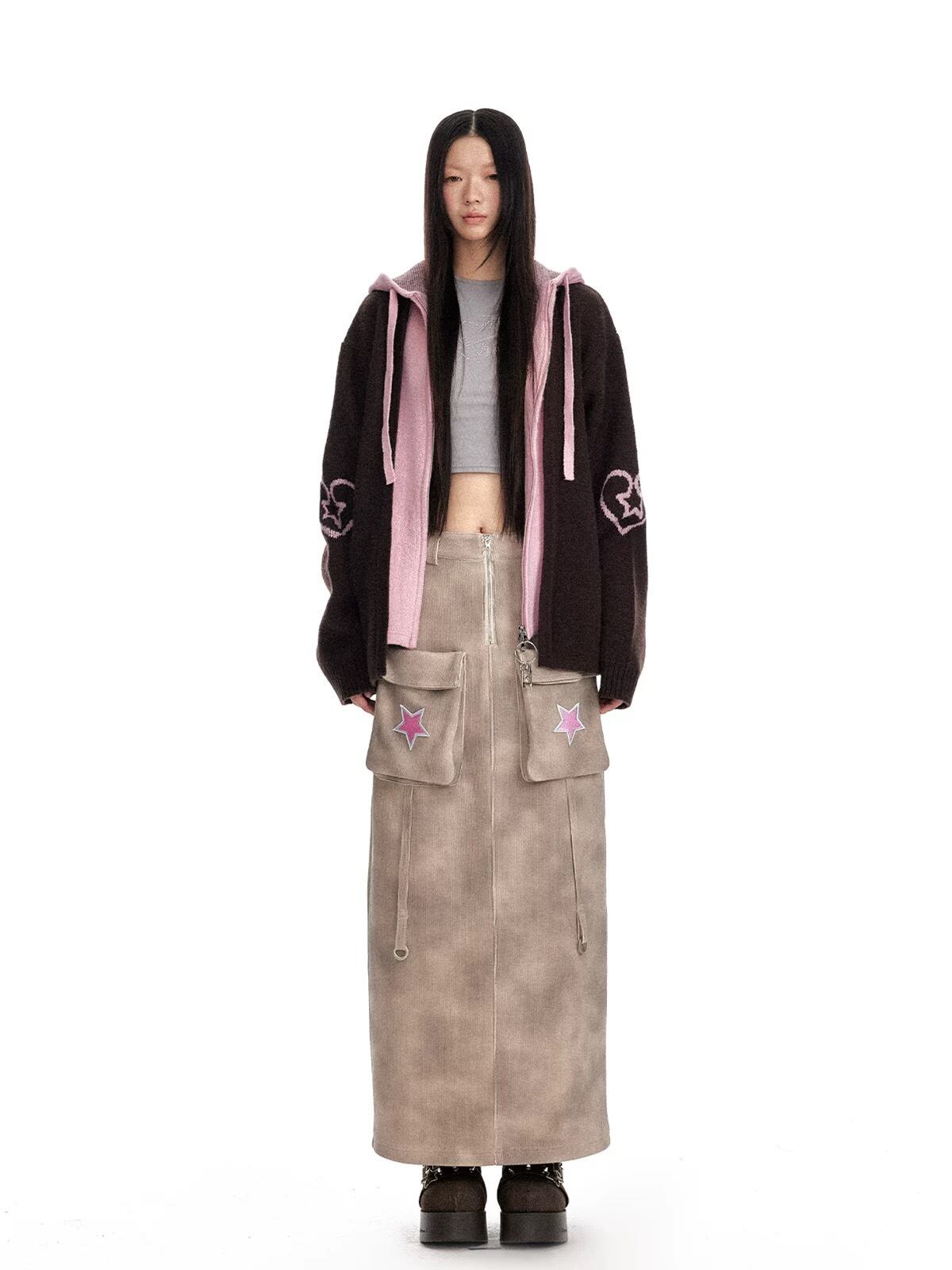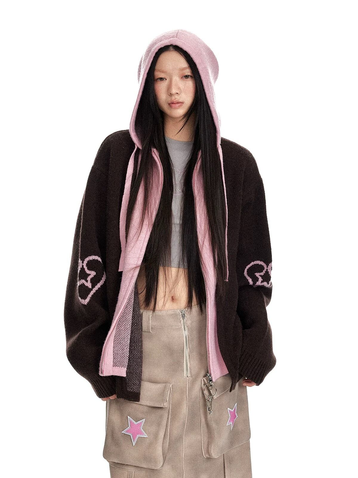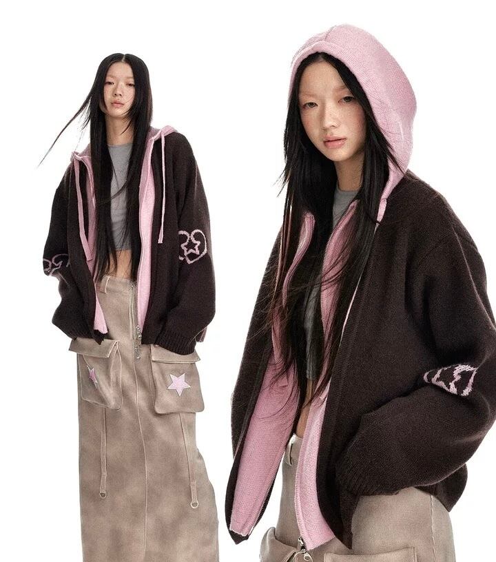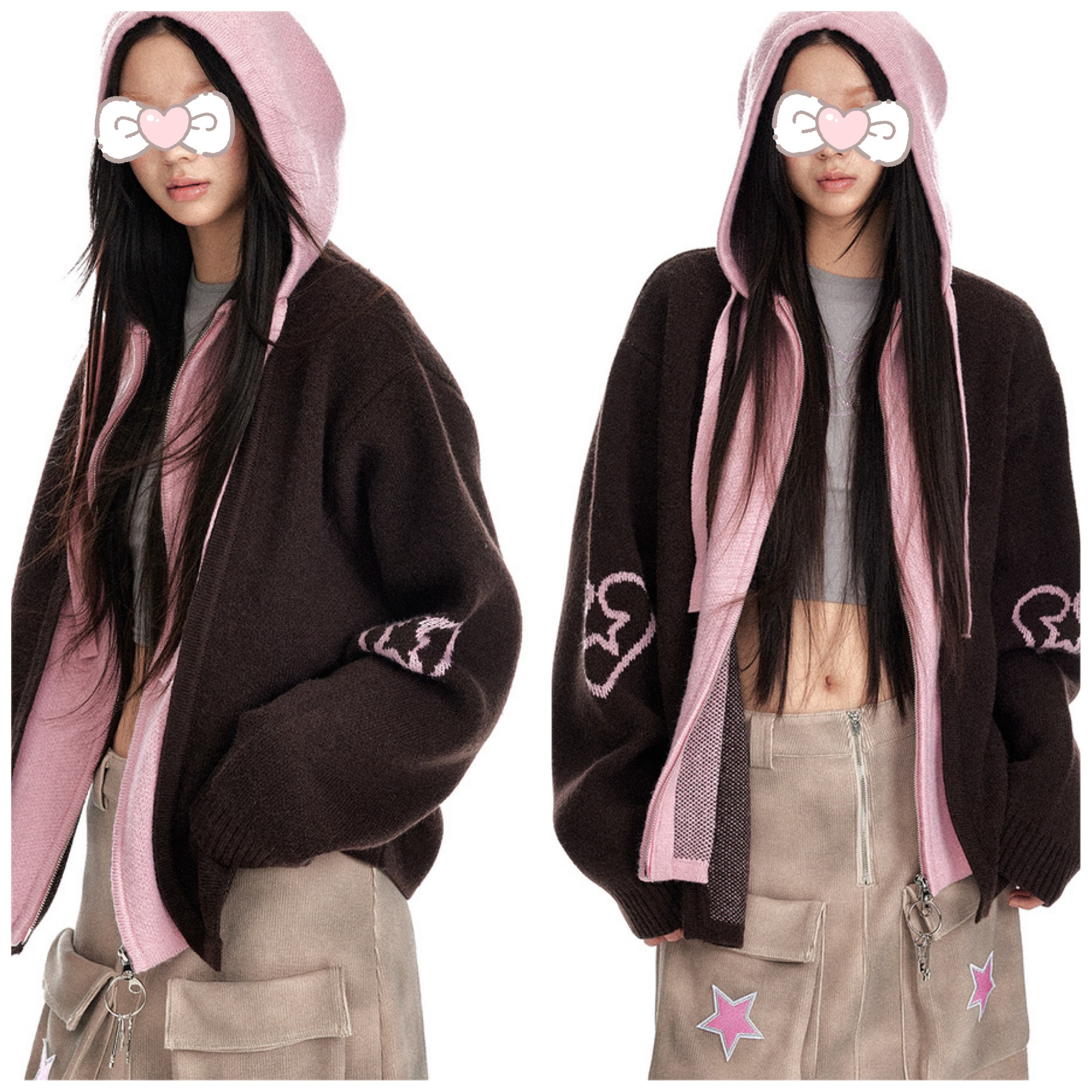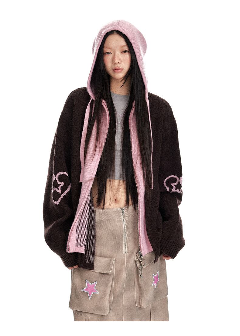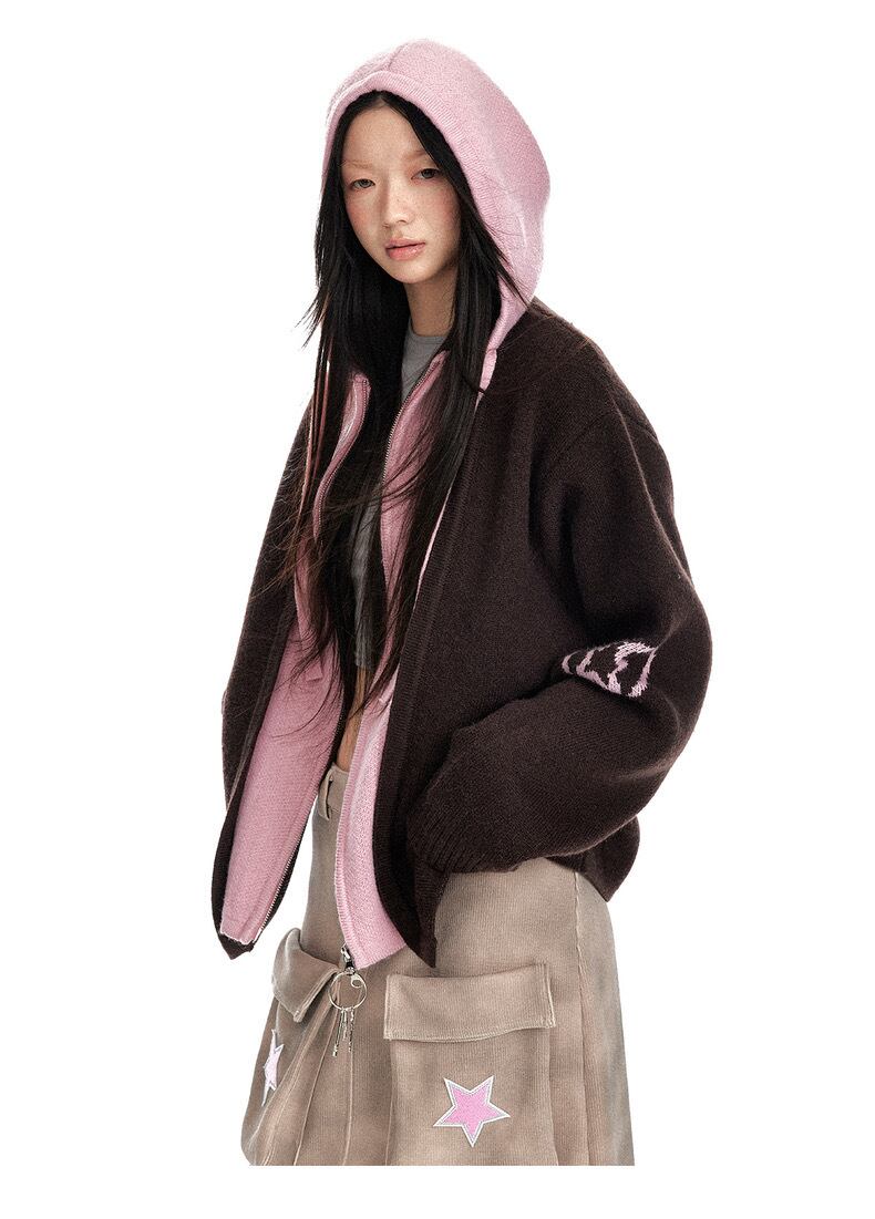 カーディガン 茶色 ピンク ニット ゆったり アウター パーカー