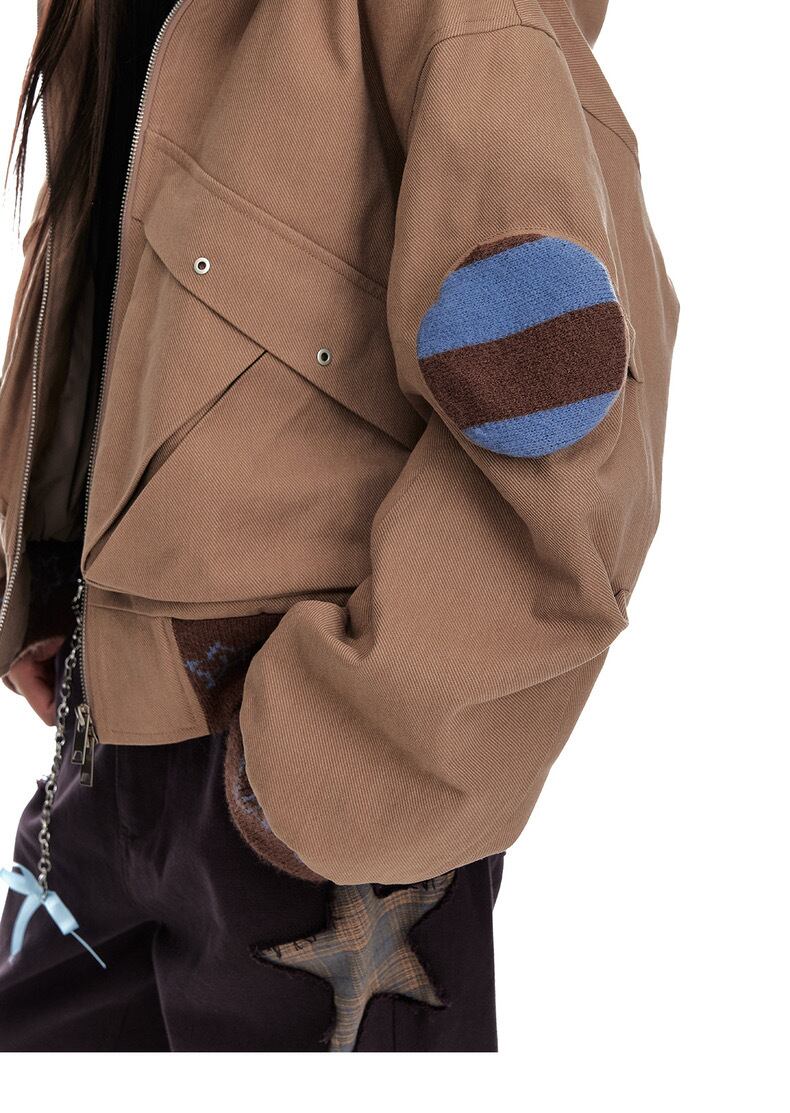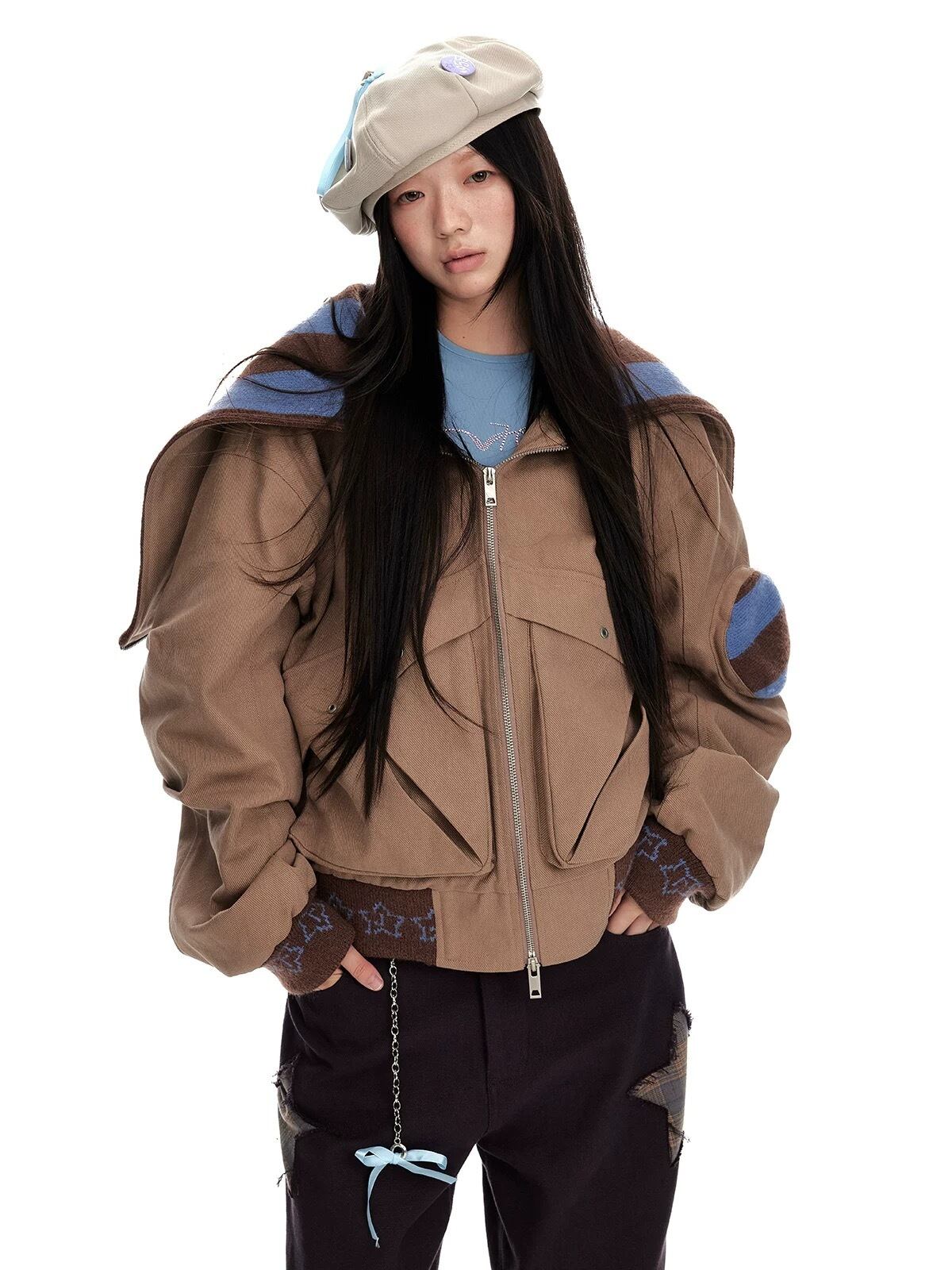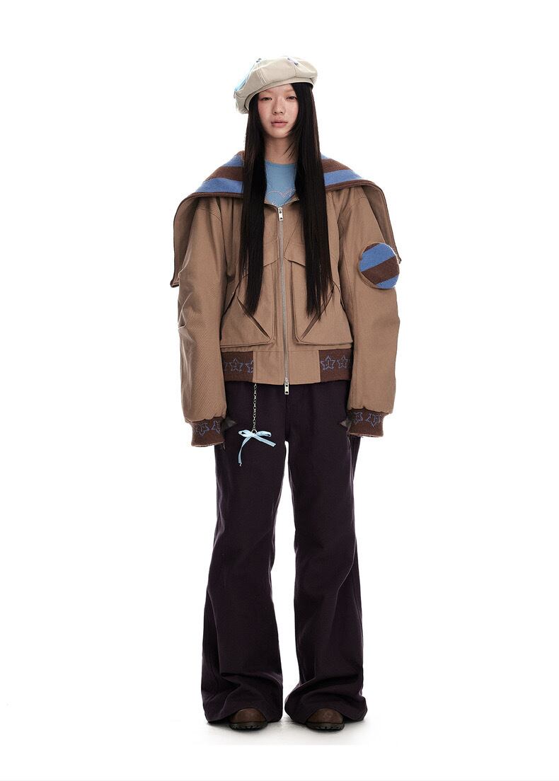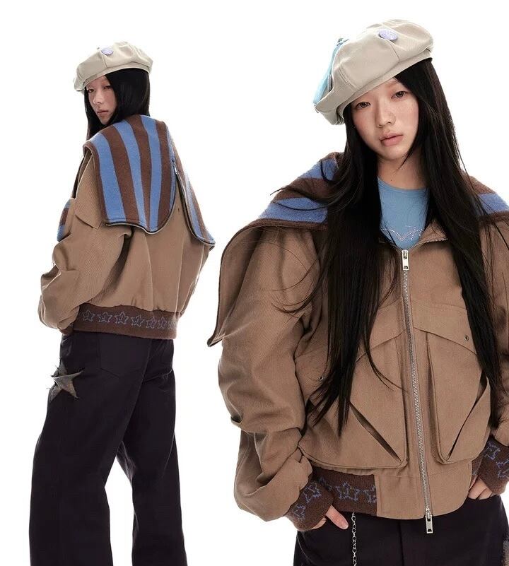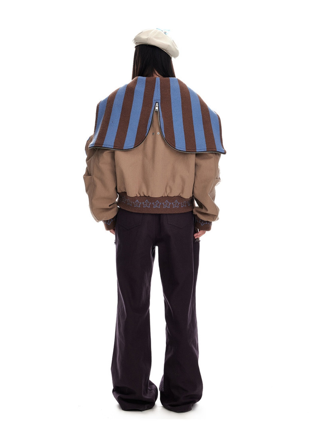 【2way】茶色 ブルー 青 襟 ジャケット アウター ボーダー ストライプ