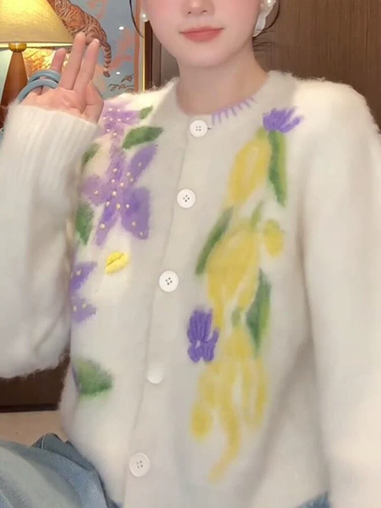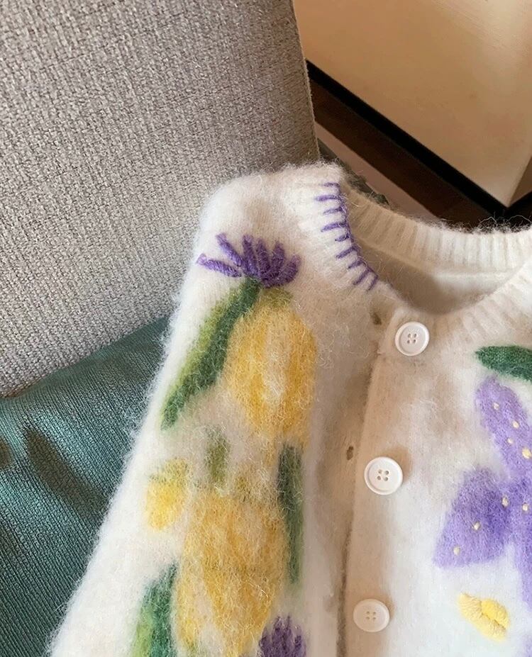カーディガン レモン ぶどう 白 ニット