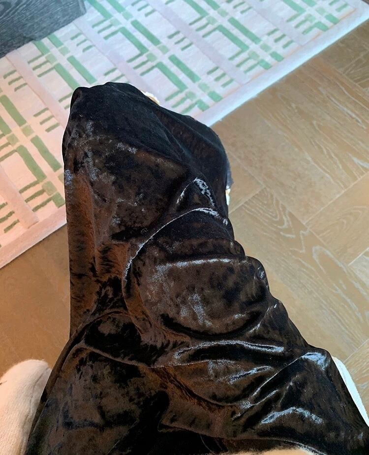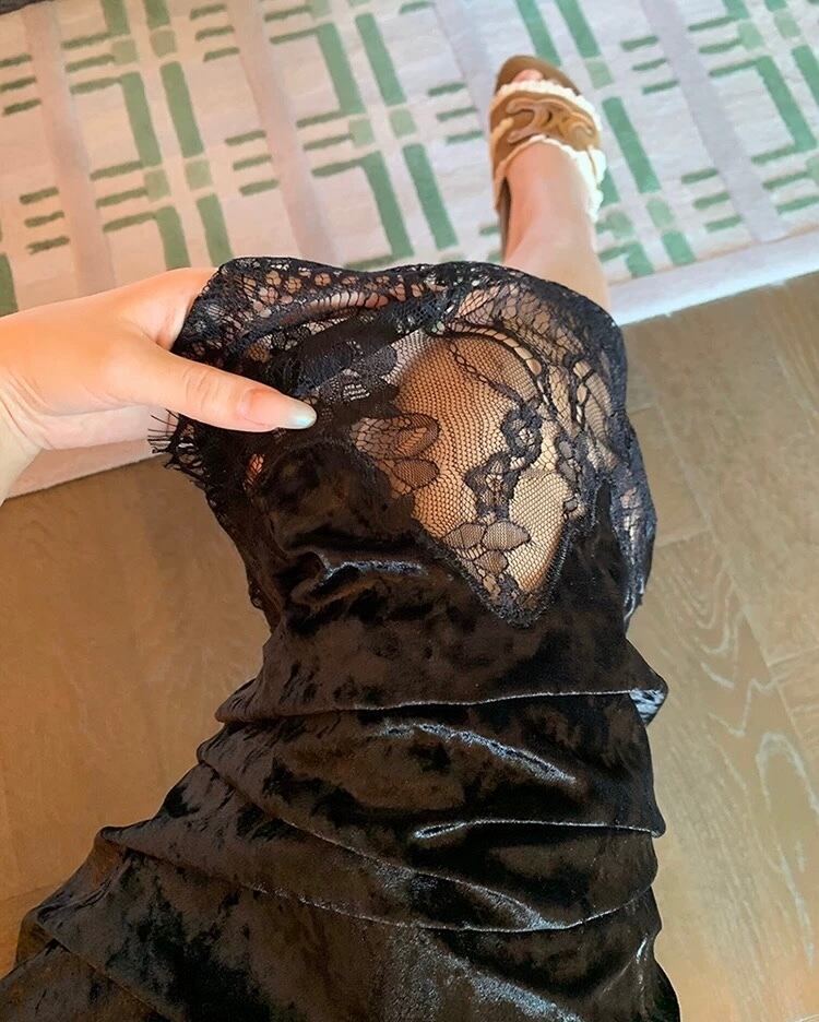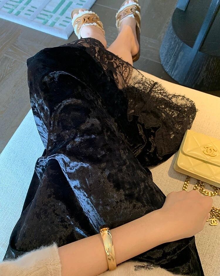 黒 ベロア スカート シンプル レース