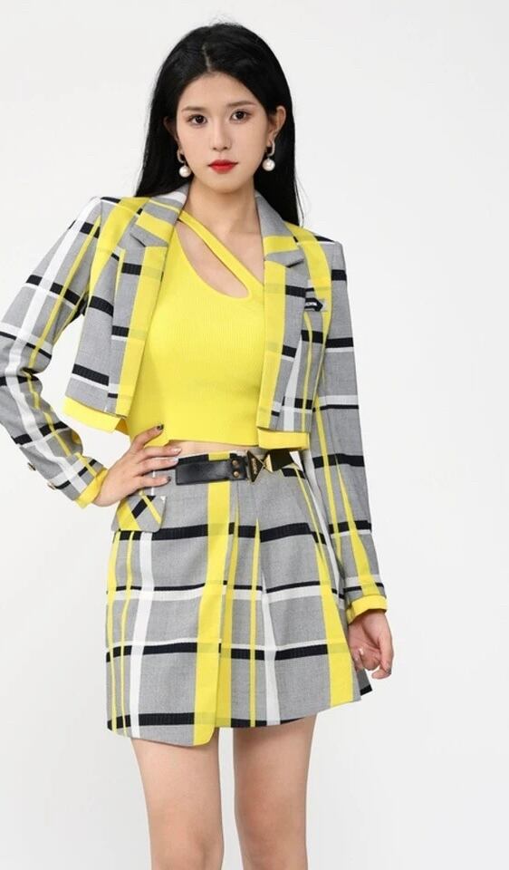 ジャケット 黒 黄色 グレー チェック アウター XL