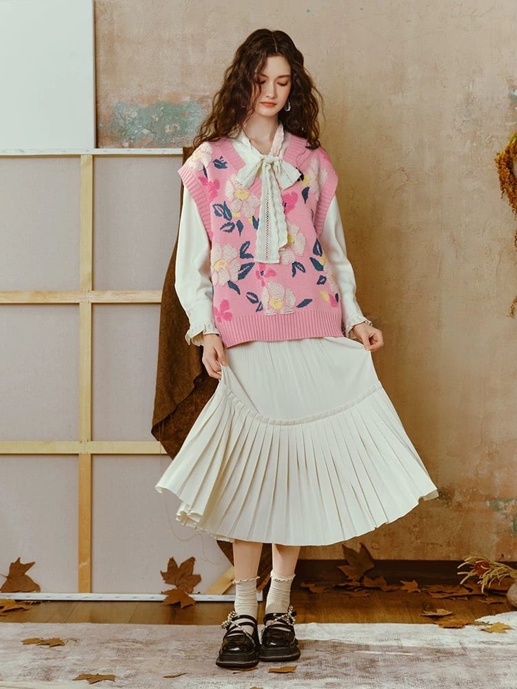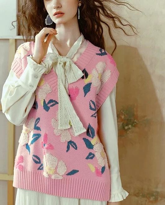 ピンク 花柄 フラワー セーター 可愛い カーディガン
