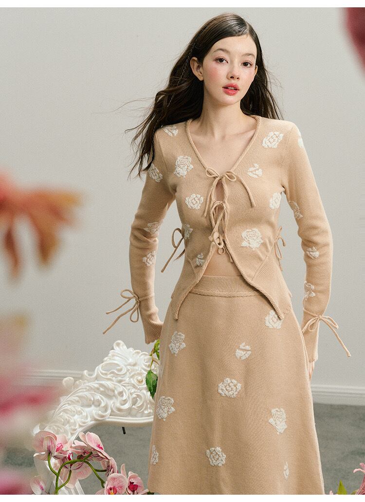 【スカート】ベージュ ボトムス 花柄 フラワー