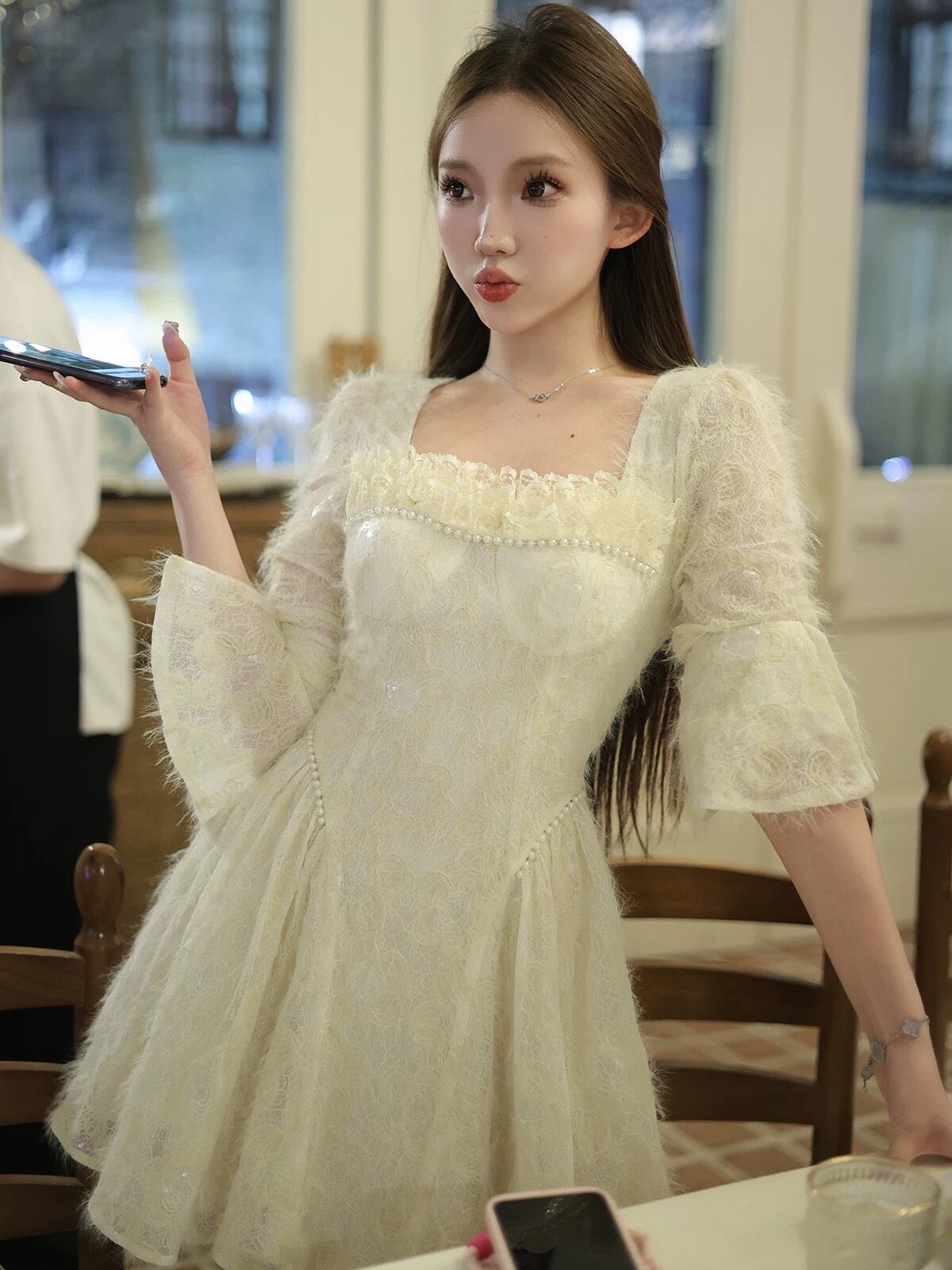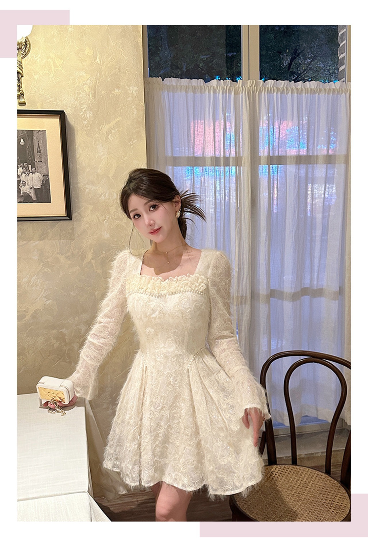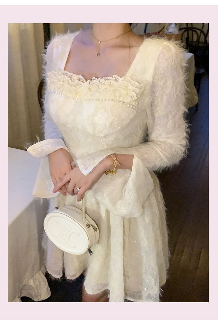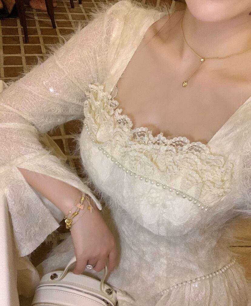 白 ふわふわ お嬢様 ワンピース ガーリー 可愛い