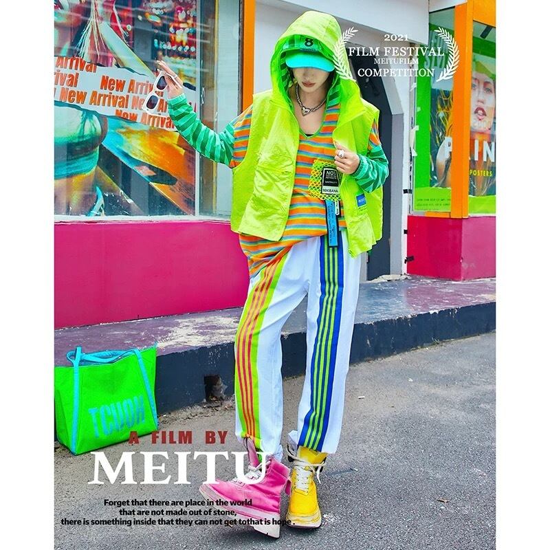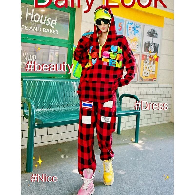 カジュアル 赤 チェック パンツ スウェット 黒 白 ボーダー レインボー