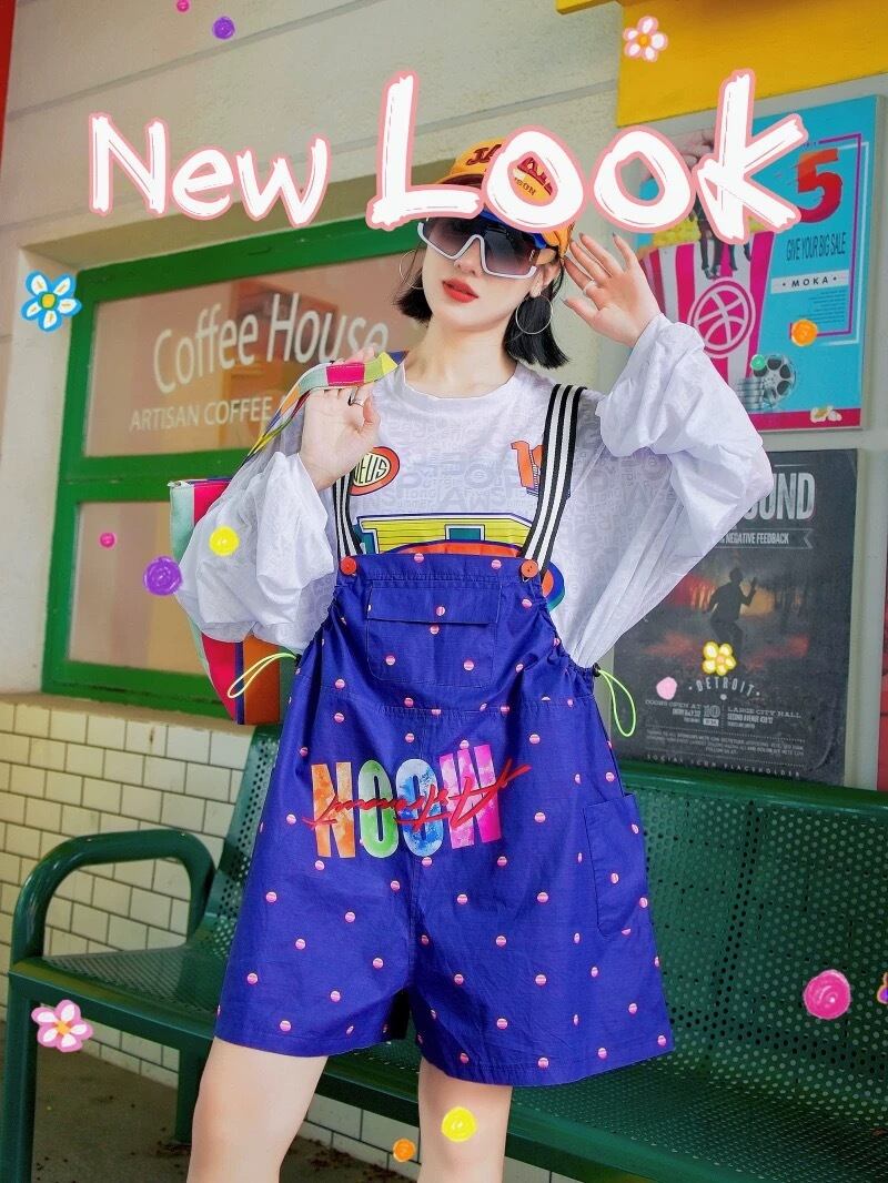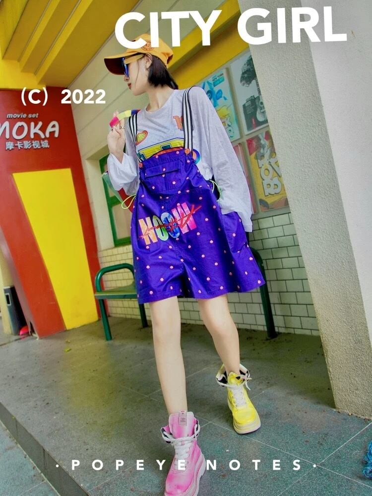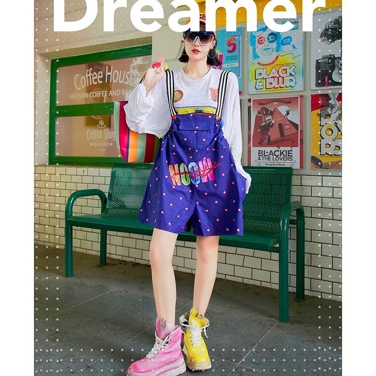 ジャンパースカート ミニスカート 紫 ボトムス 水玉 カラフル