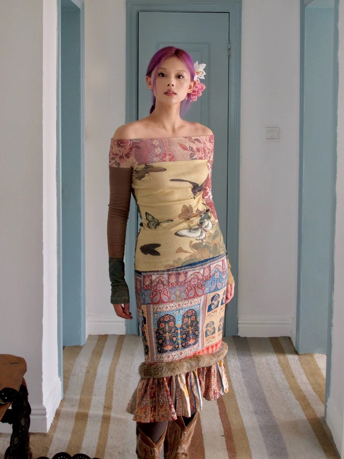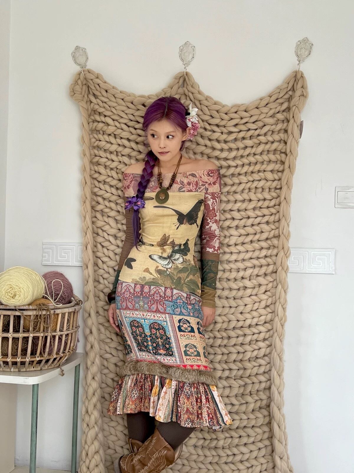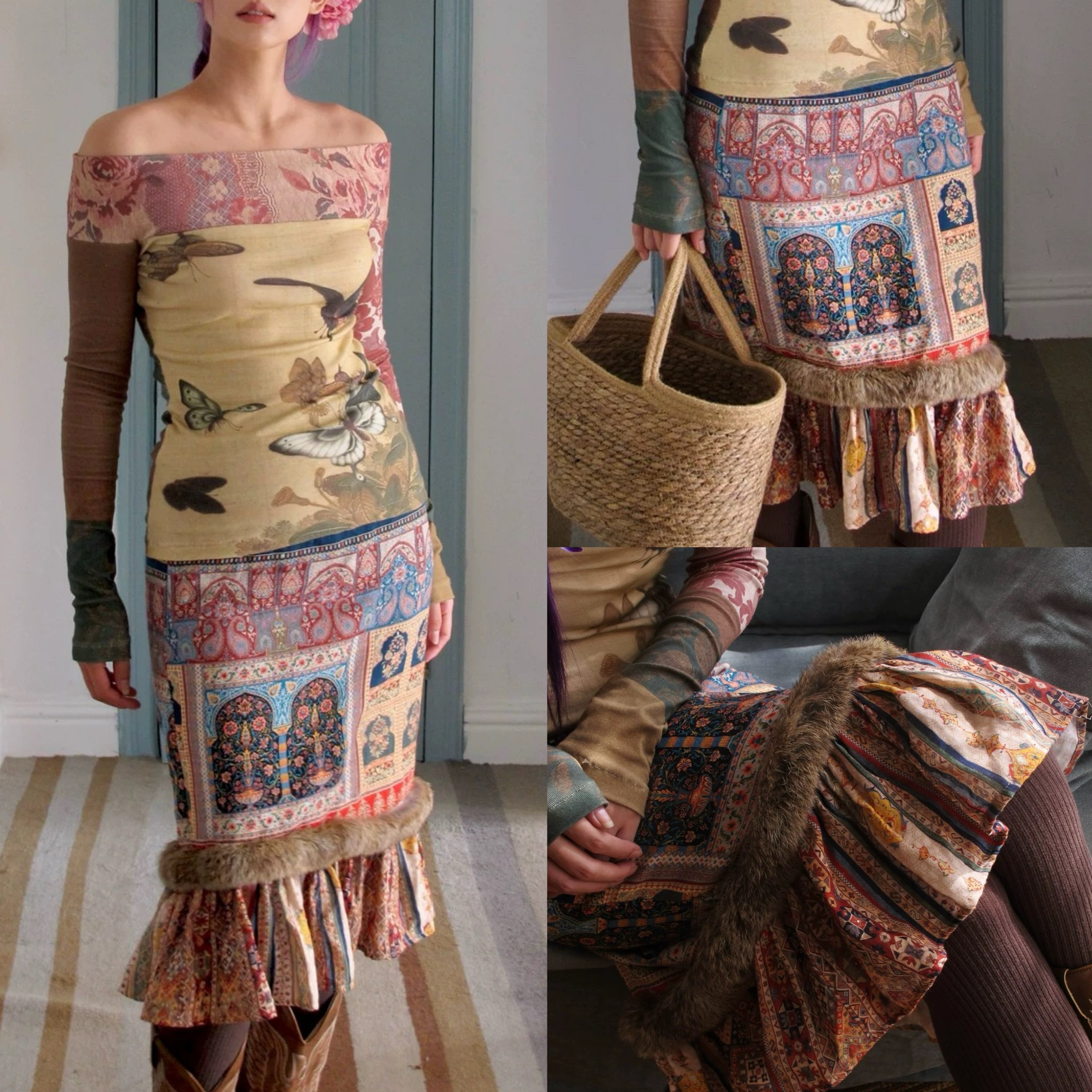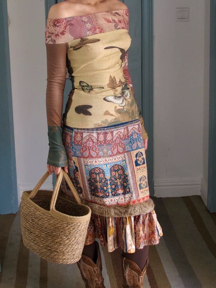 ベージュ クラシック レトロ パッチワーク ヴィンテージ風