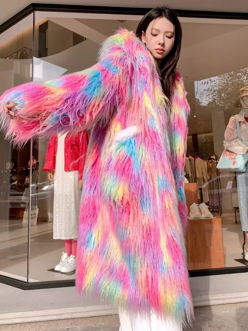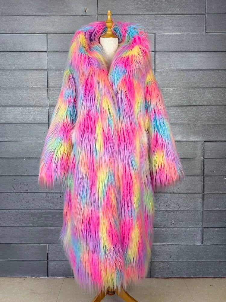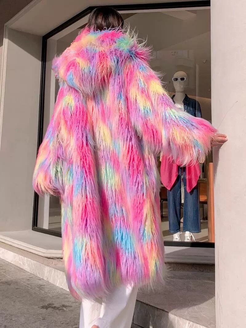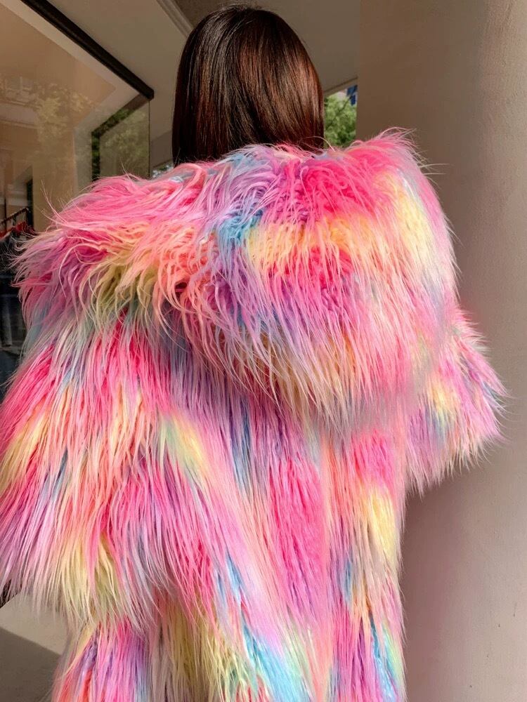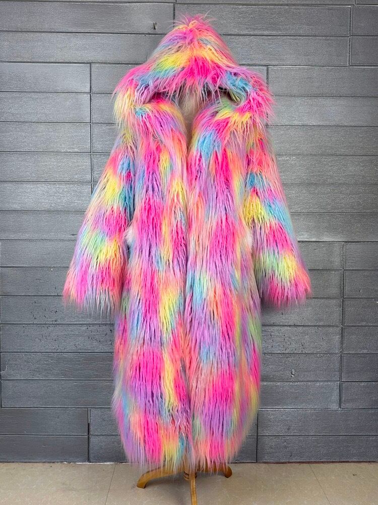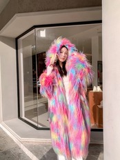 パーカーつき レインボー グラデーション ピンク 水色 コート