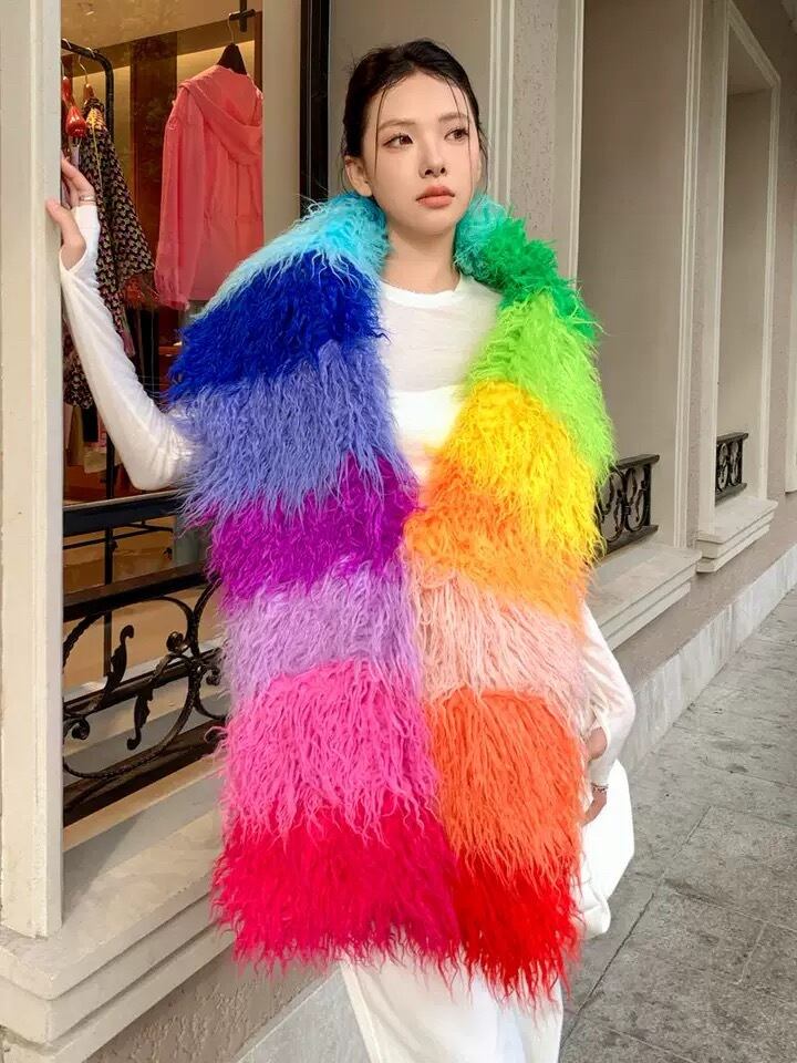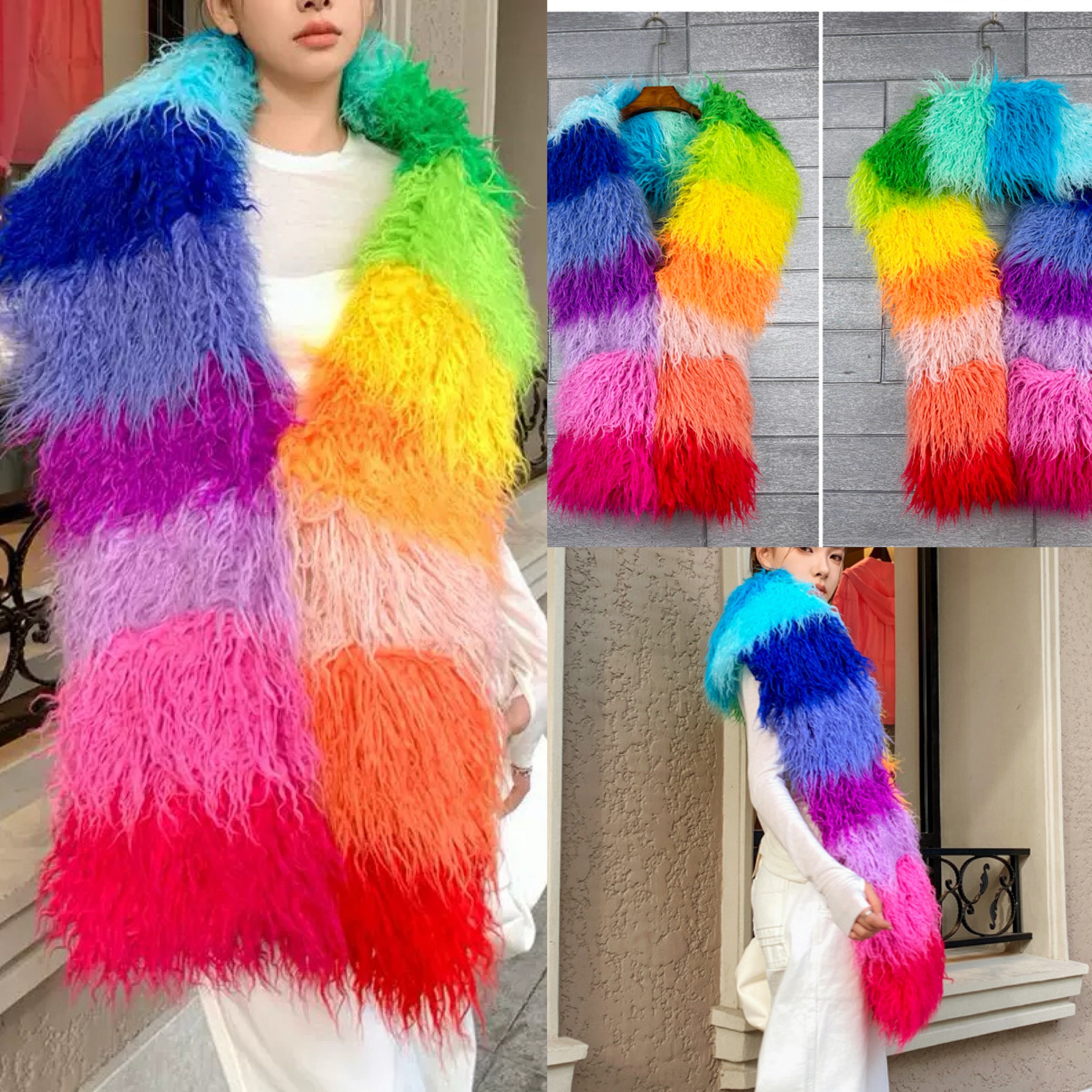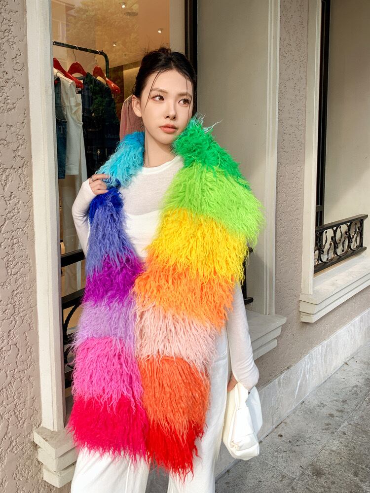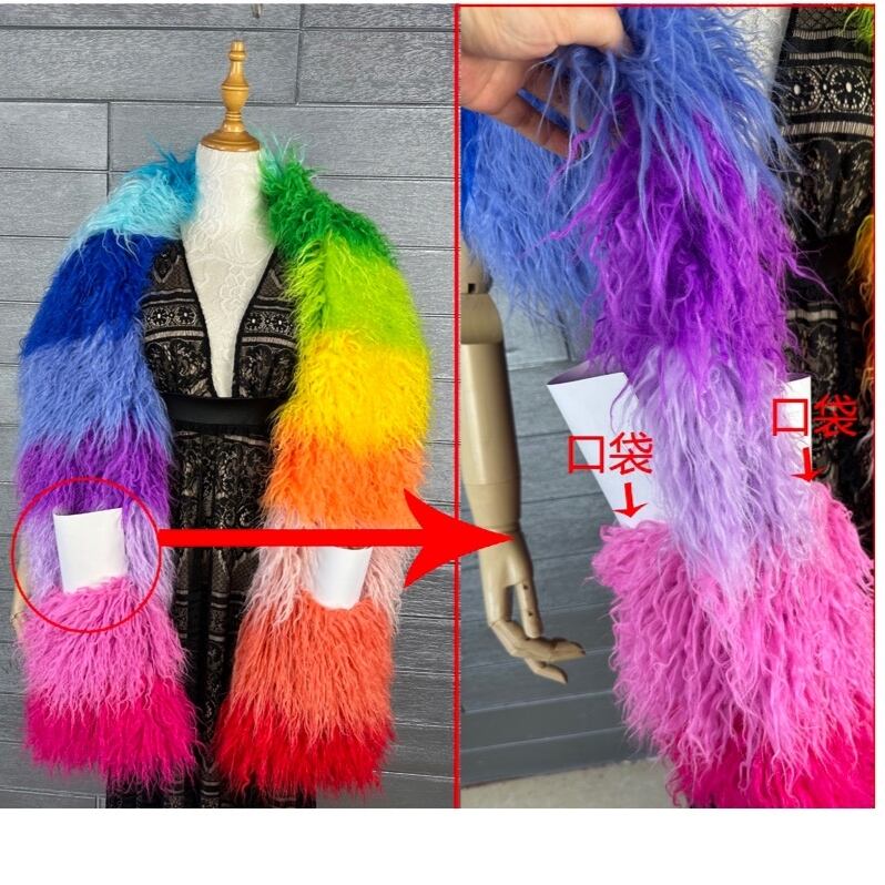 【ポケットつき】カラフル ボーダー オレンジ 赤 ピンク チェック まふら