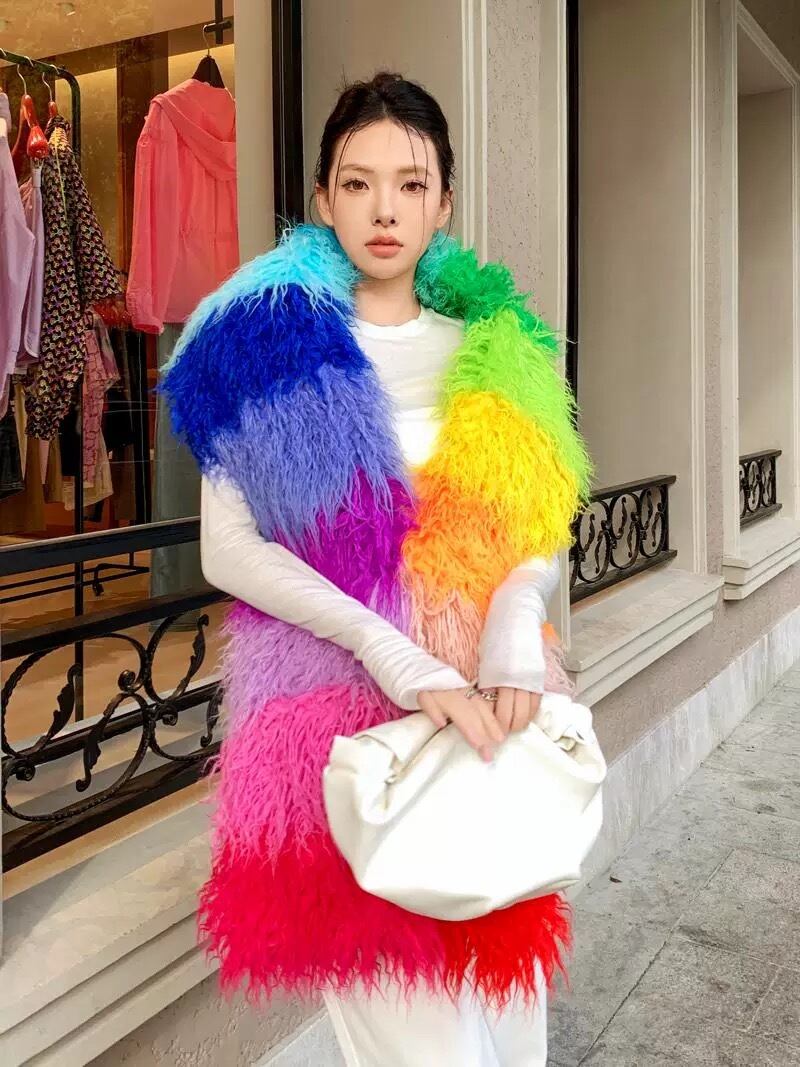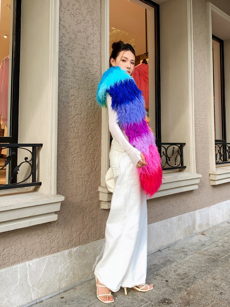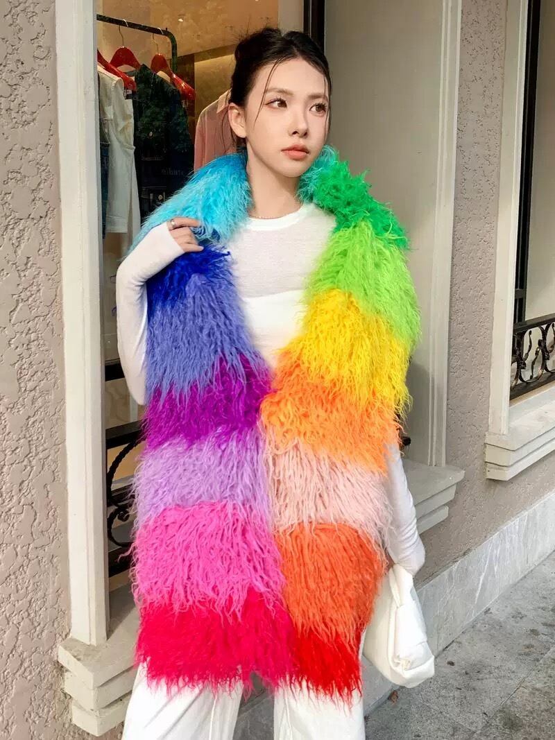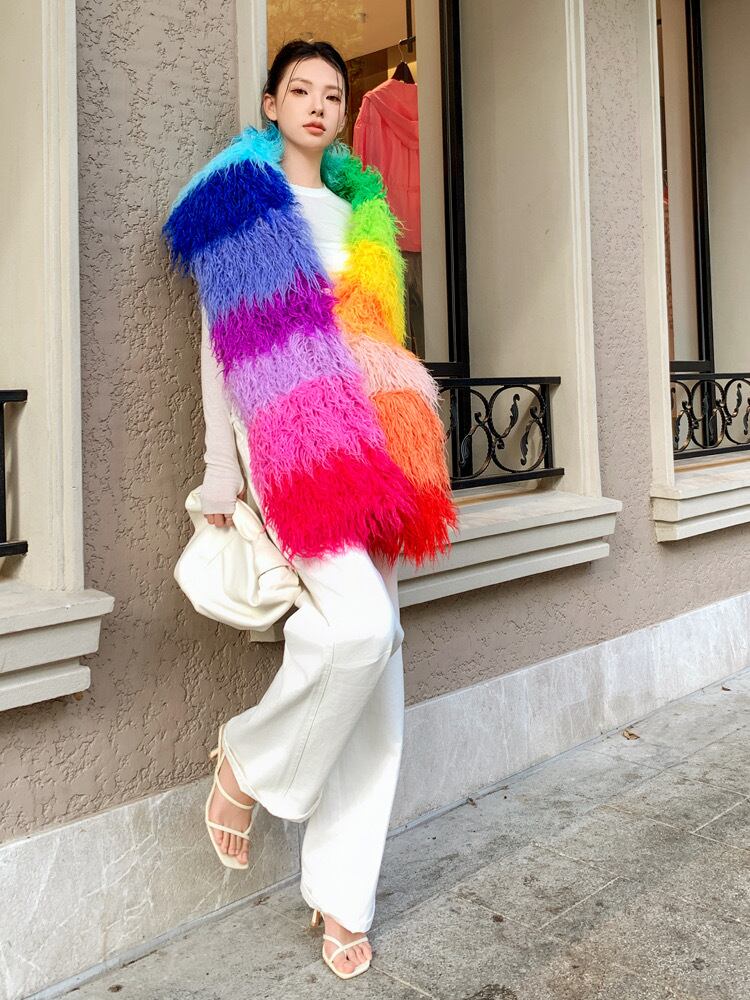 【ポケットつき】カラフル ボーダー オレンジ 赤 ピンク チェック まふら
