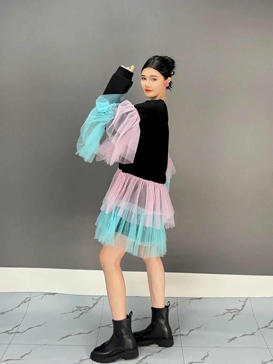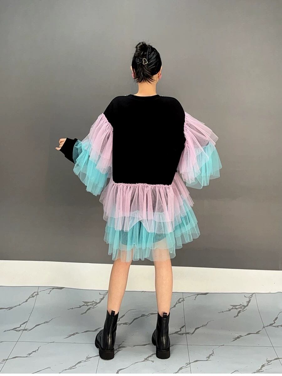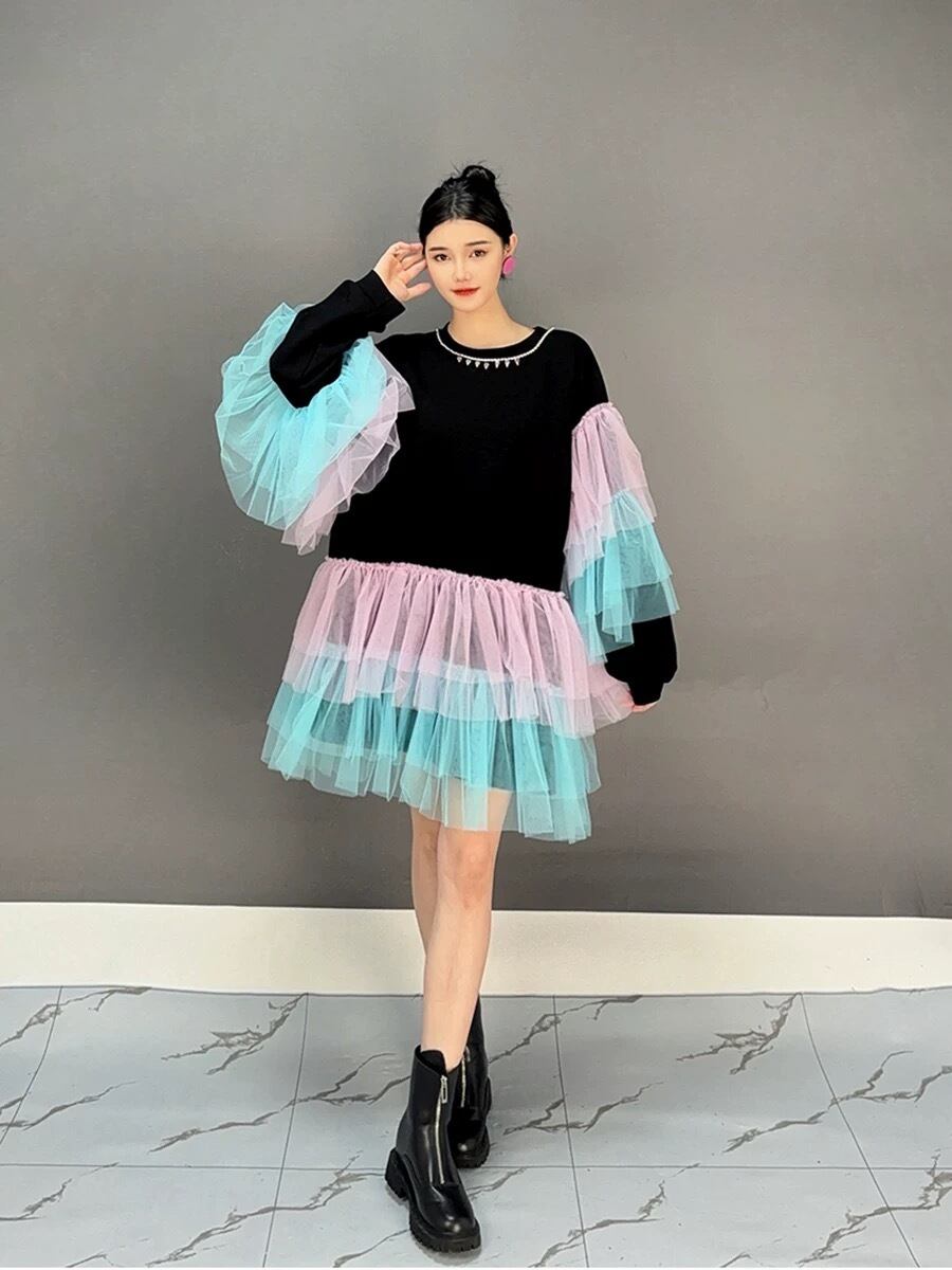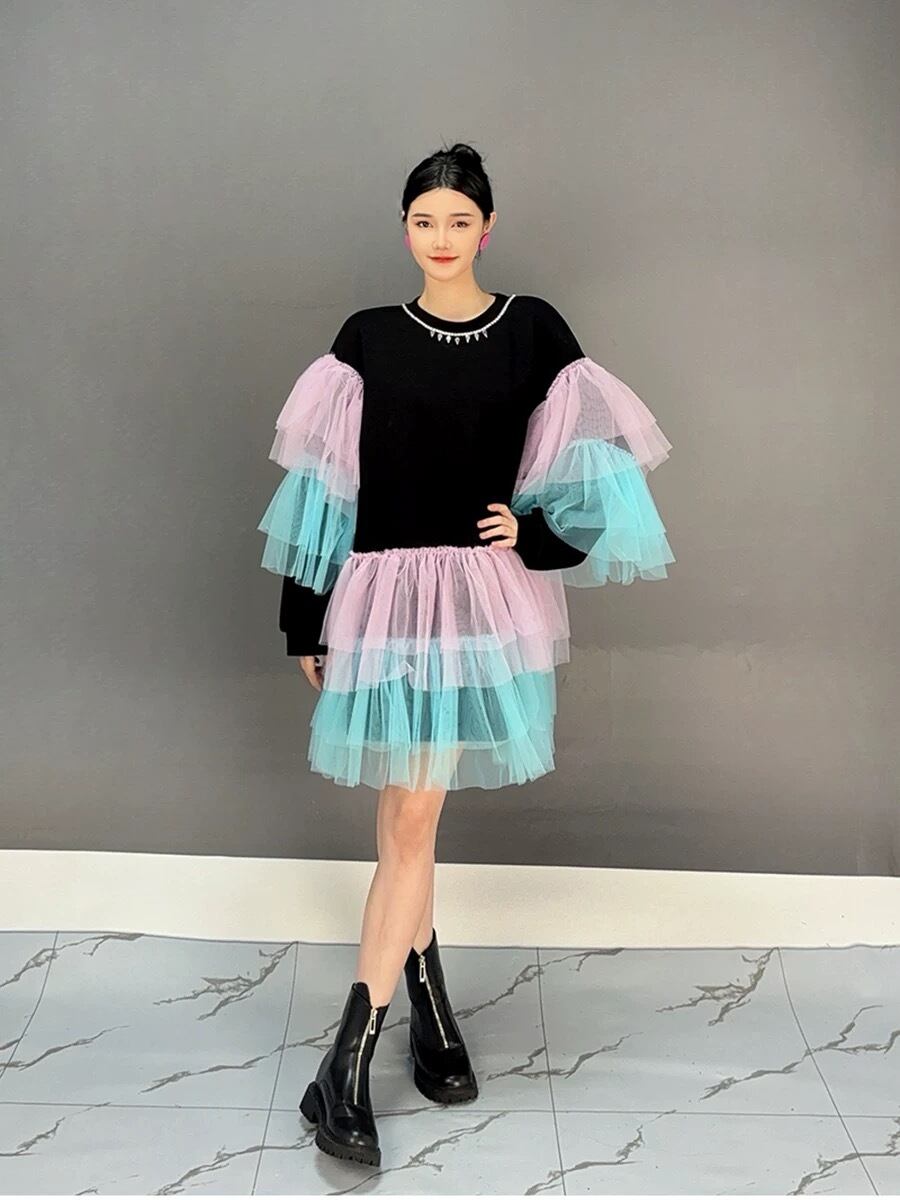 お花 セーター ワンピース 水色 ピンク カラフル デコレーション