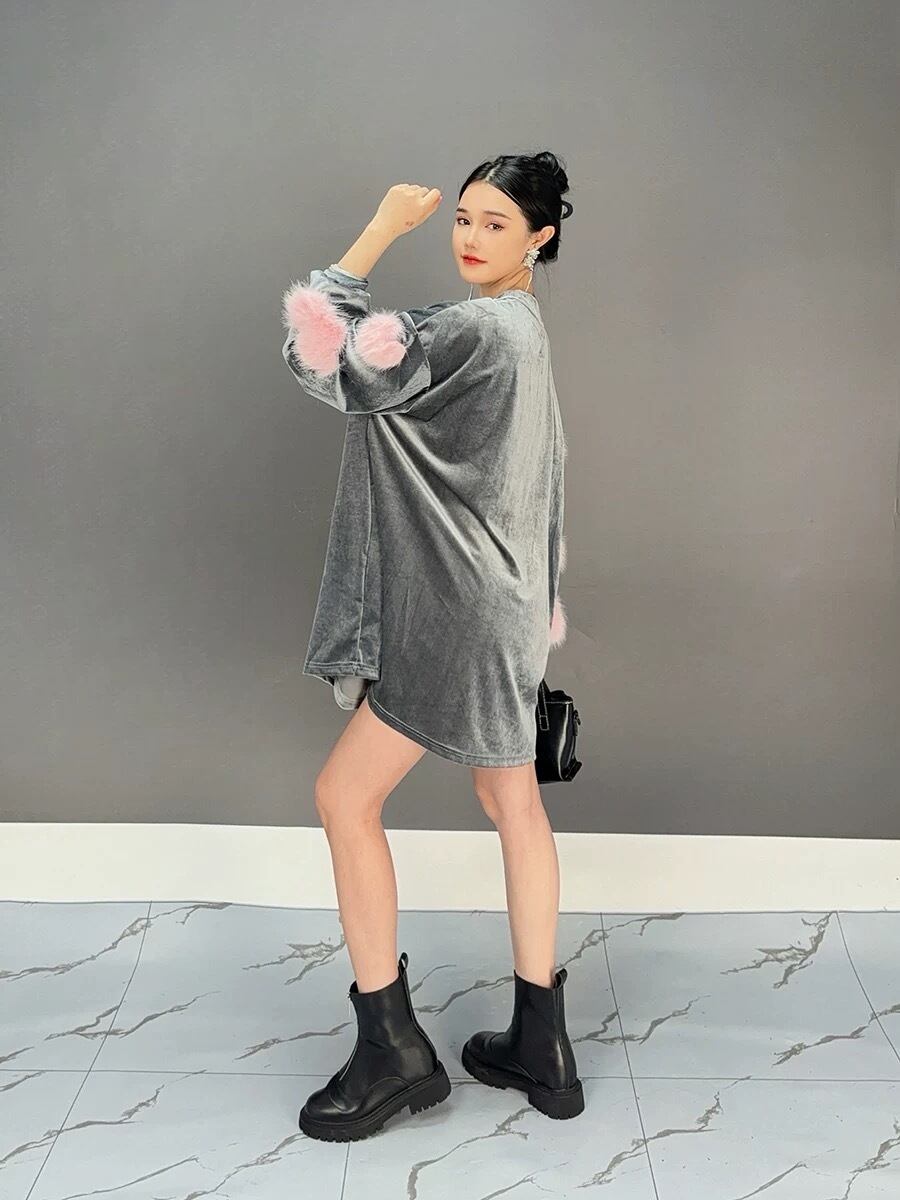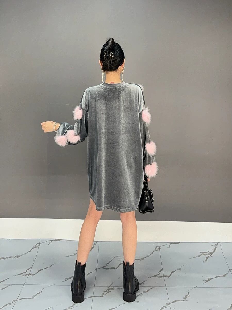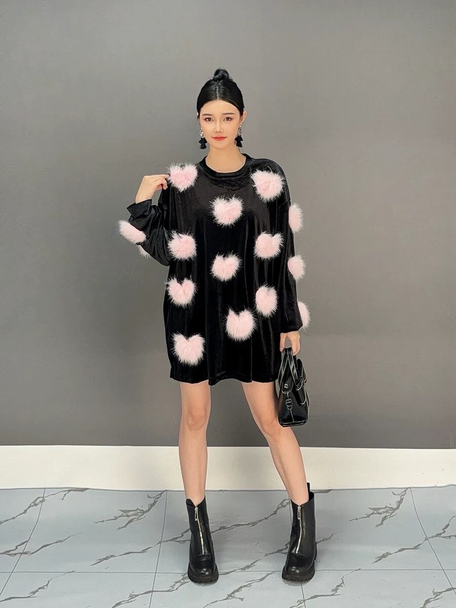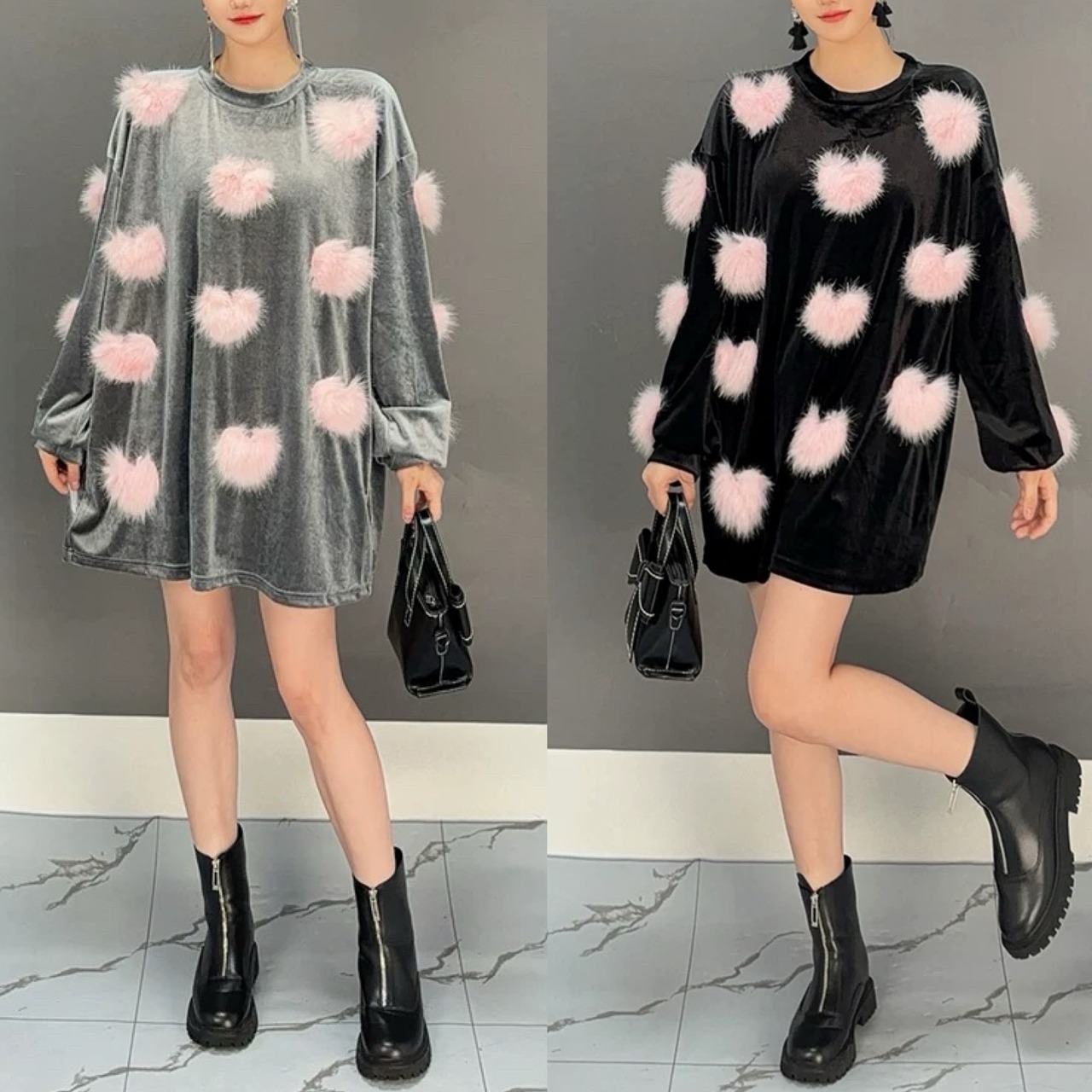 シルバー グレー ハート もこもこ ファー 黒