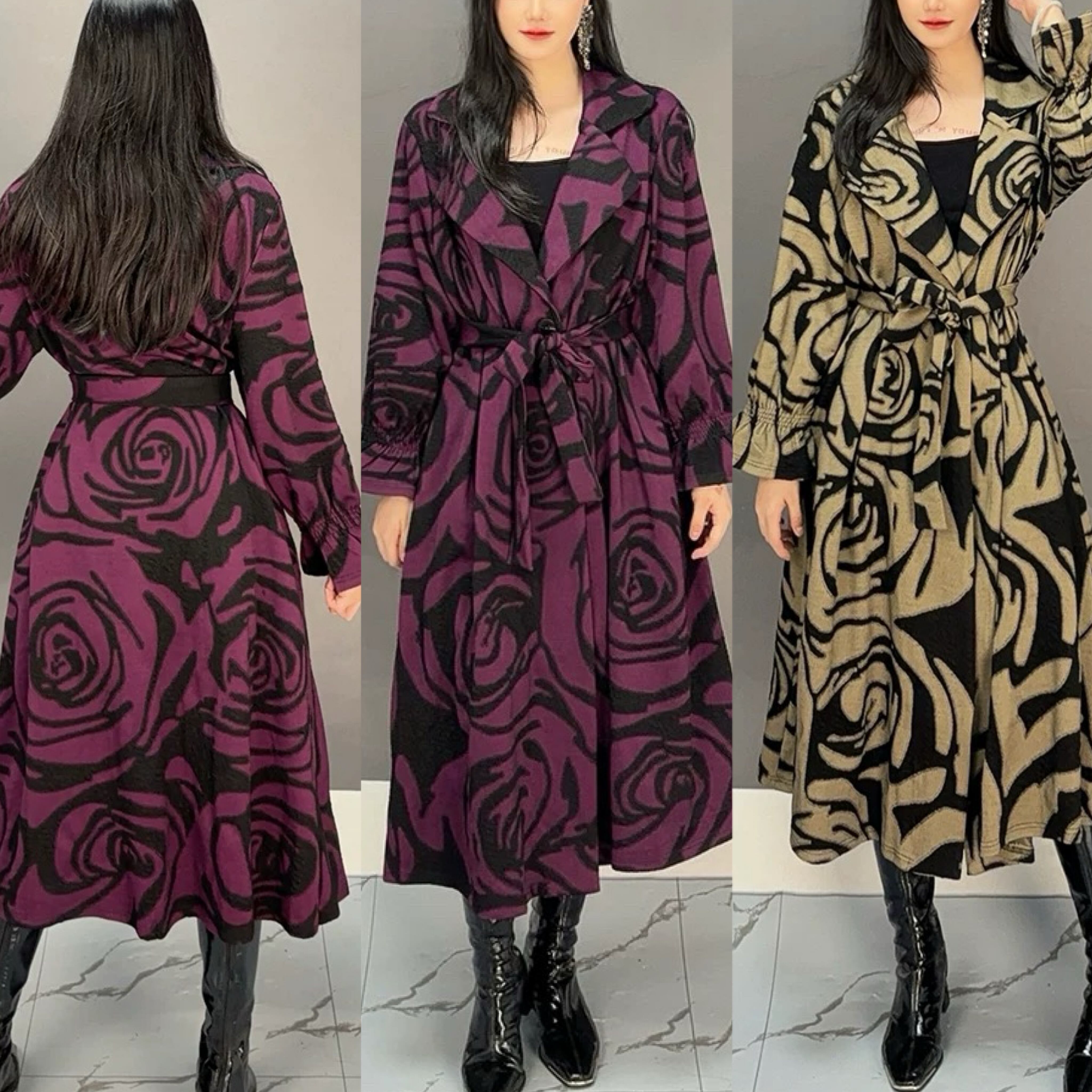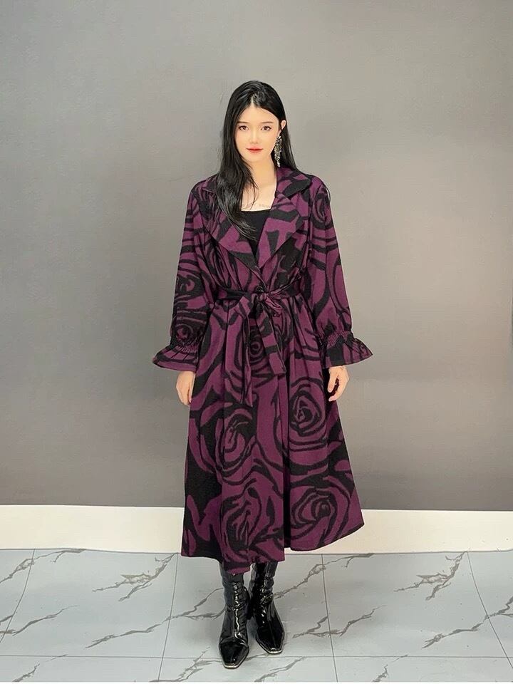 薔薇 花柄 フラワー ベージュ 茶系 カーキ 紫 コート