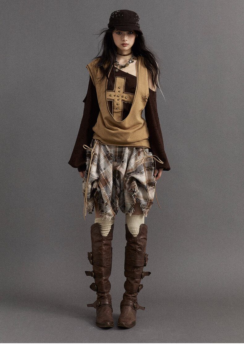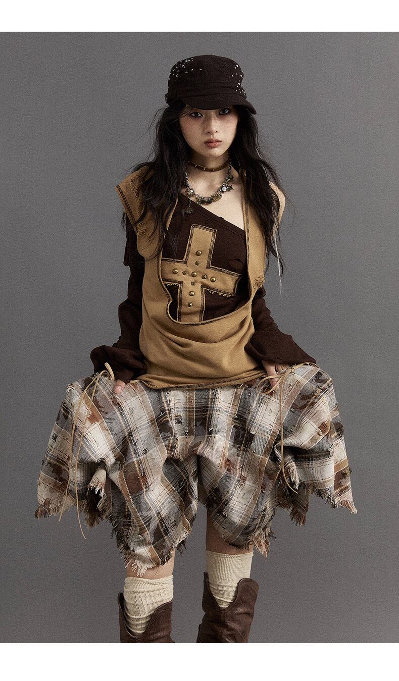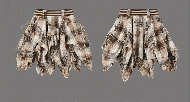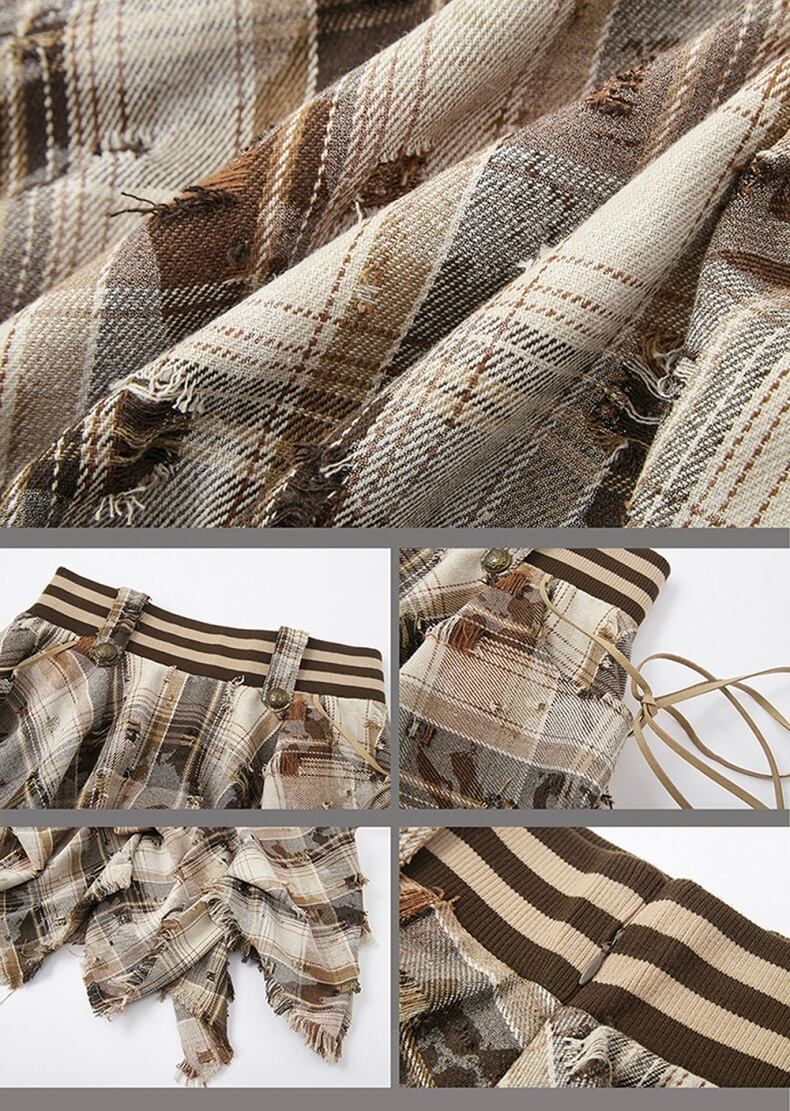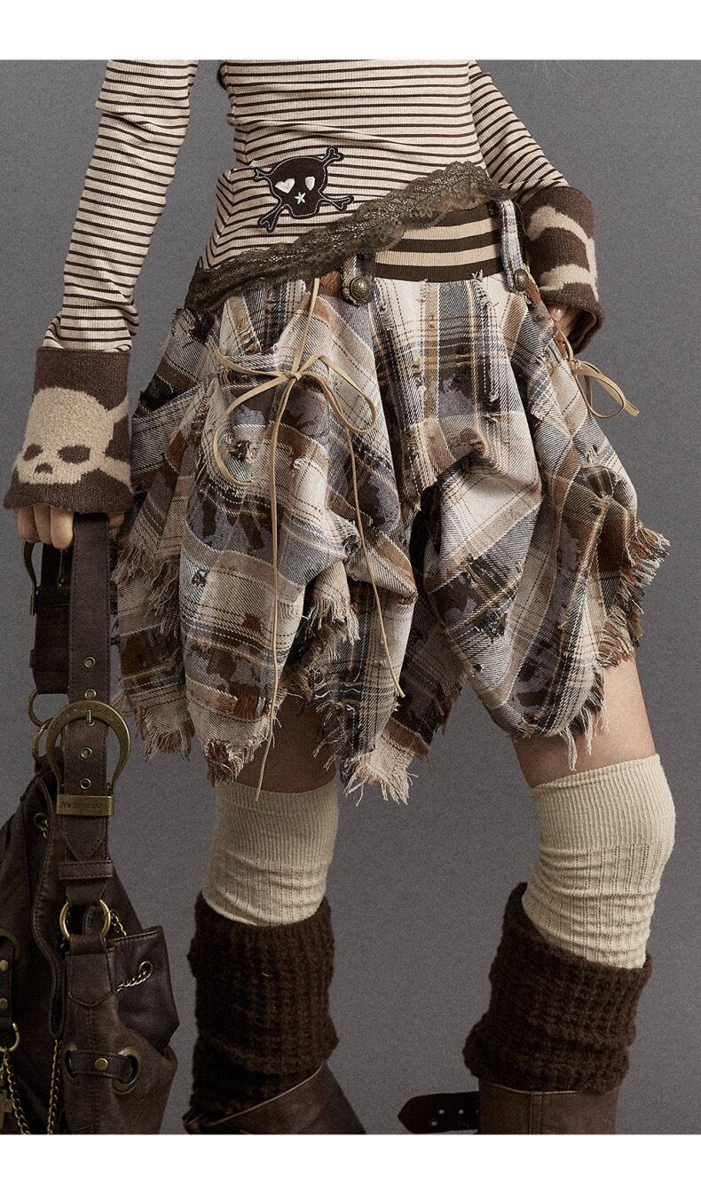 チェック ダメージ スカート ボトムス ベージュ 茶色