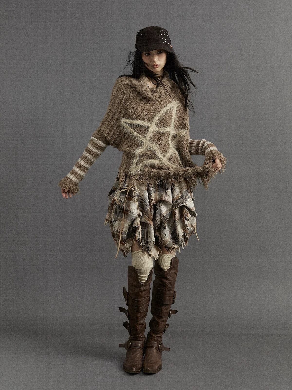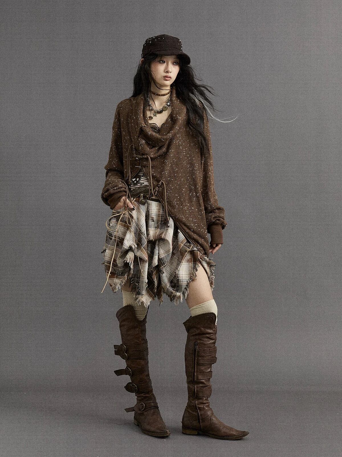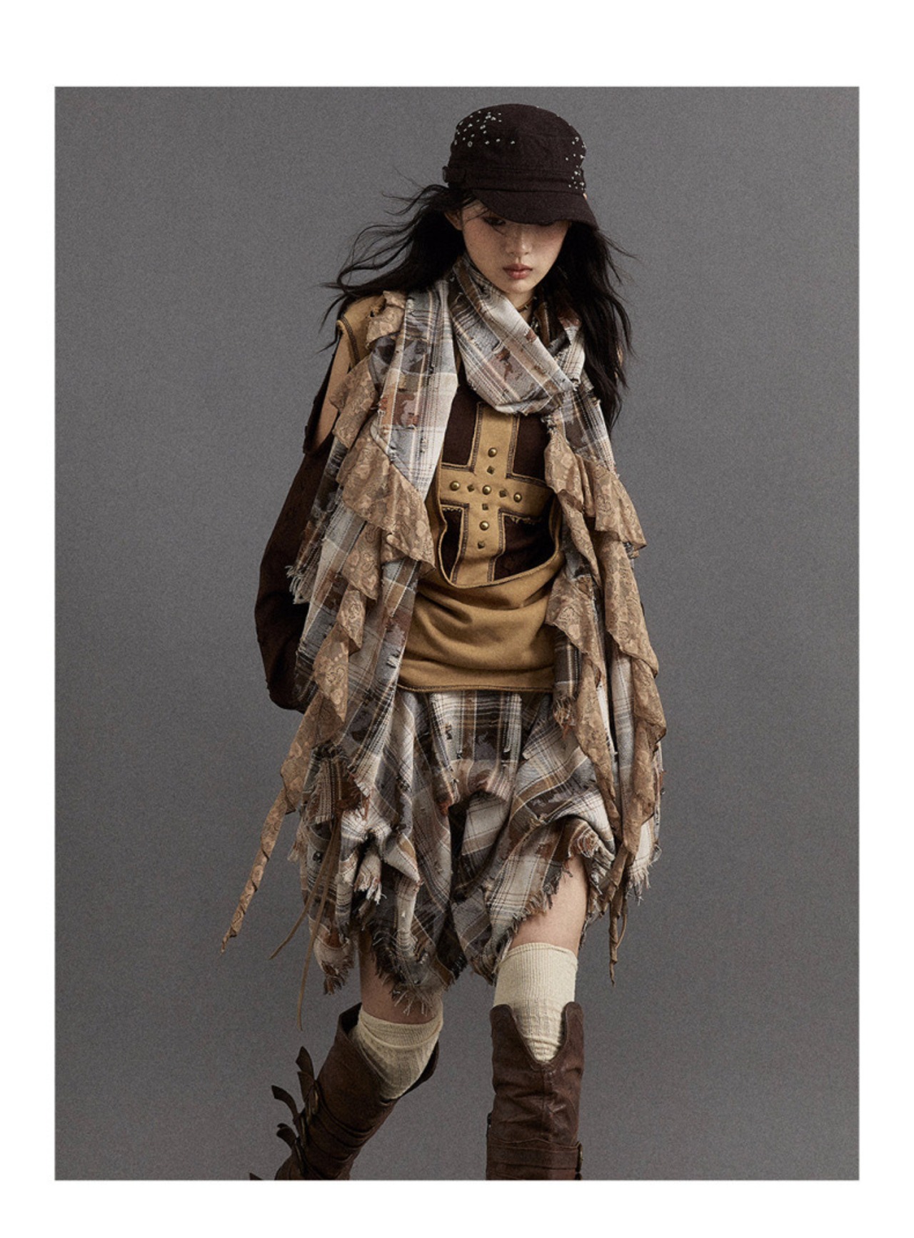 チェック ダメージ スカート ボトムス ベージュ 茶色