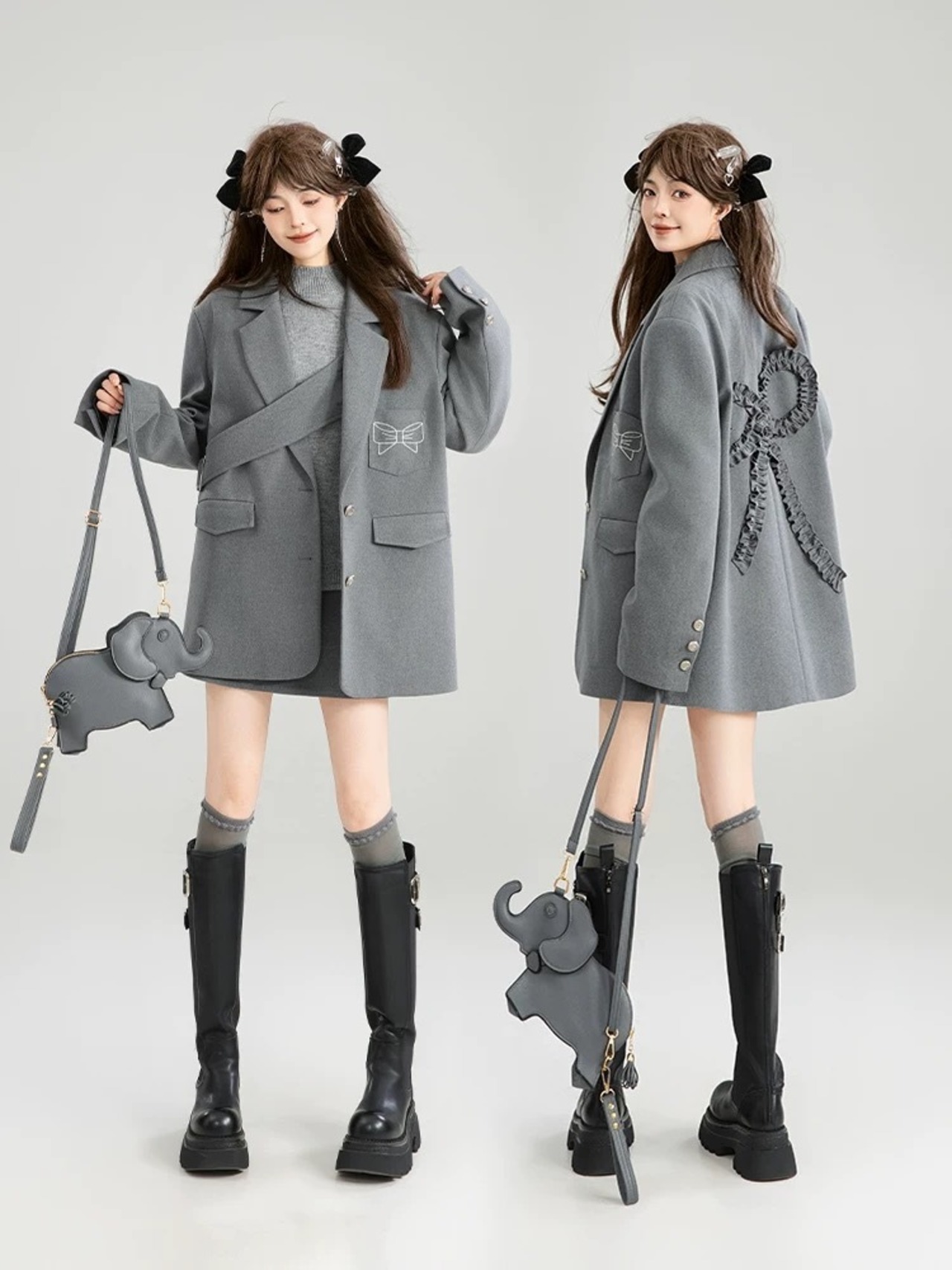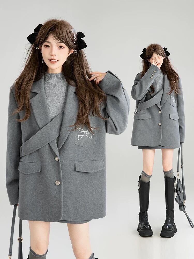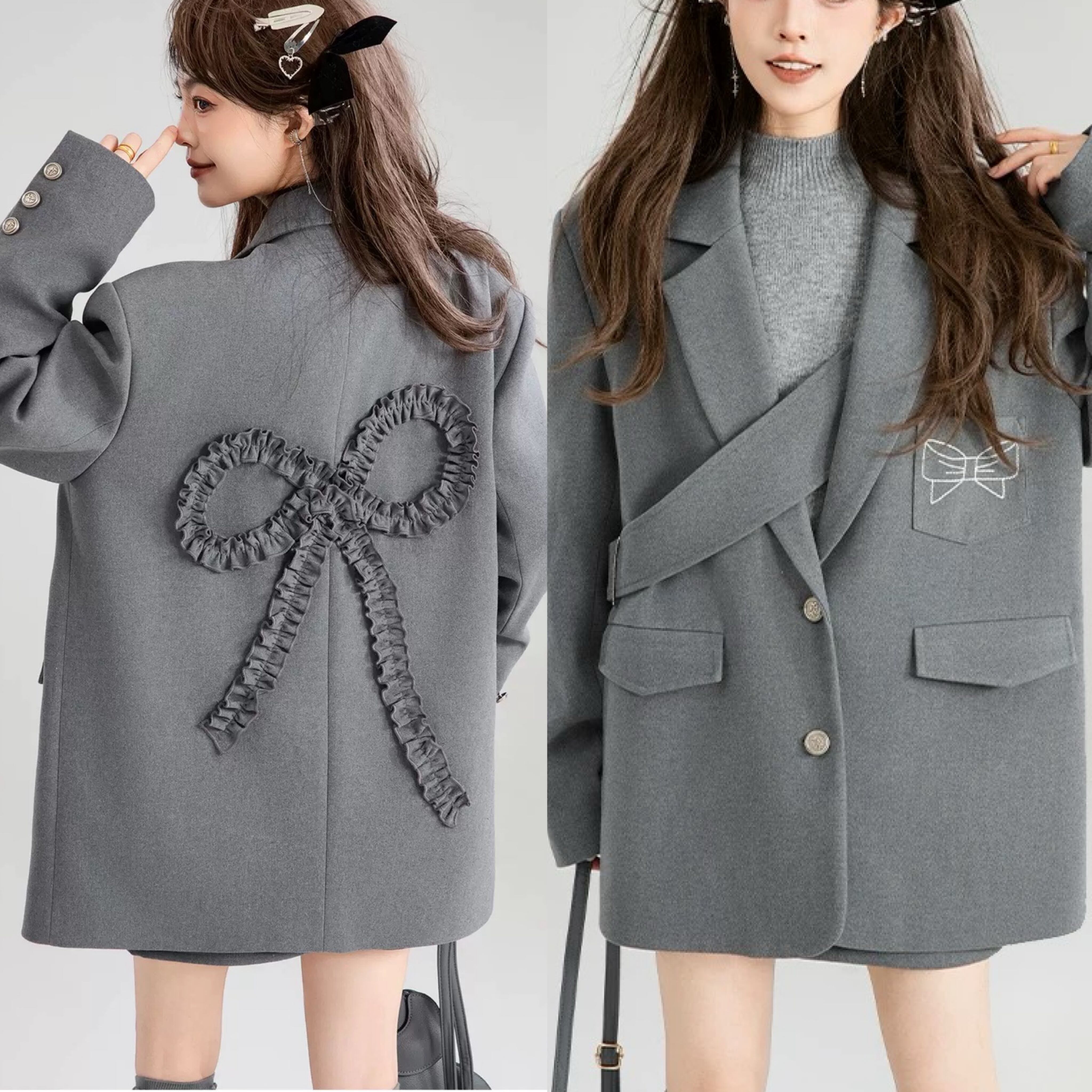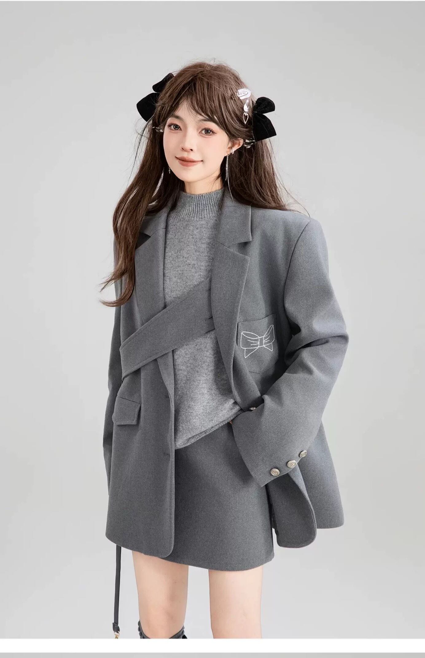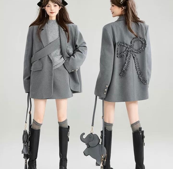 グレー ジャケット リボン カジュアル