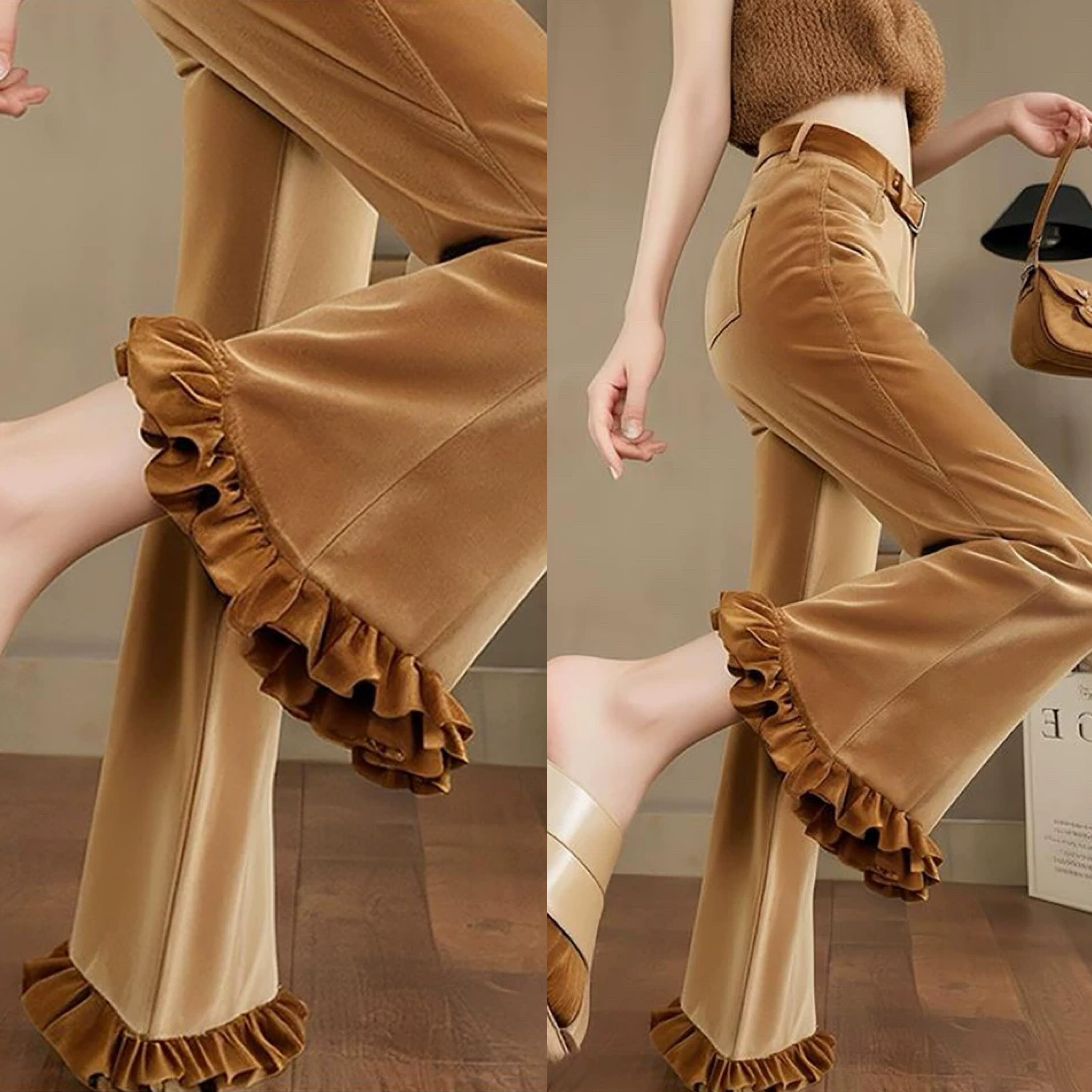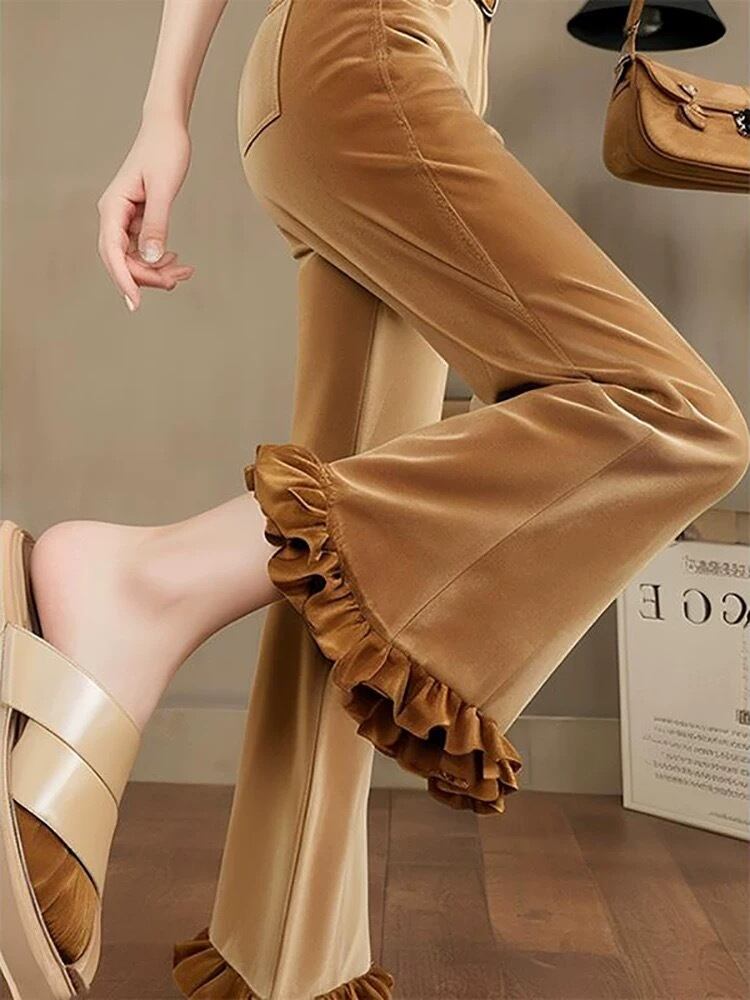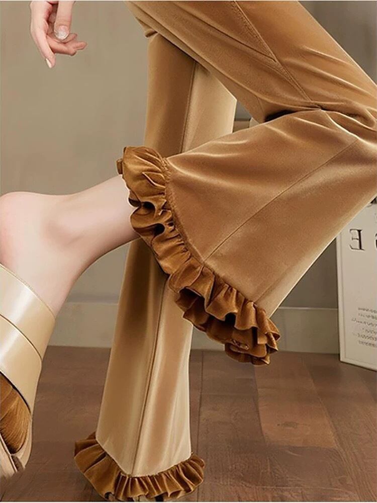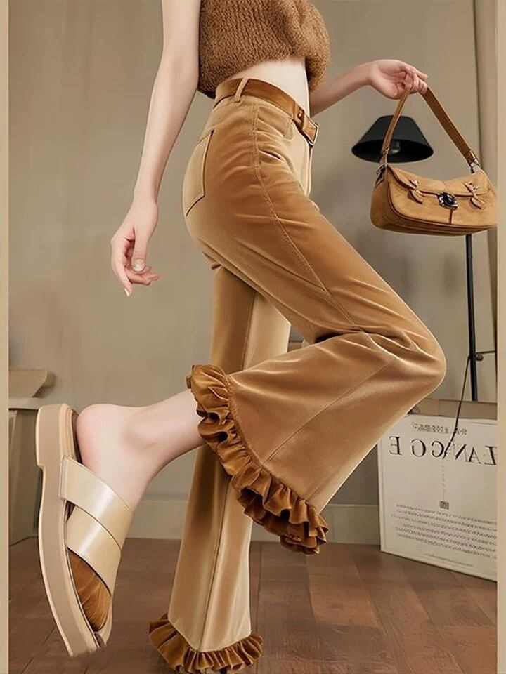 ベージュ 茶色 パンツ フリル XL ボトムス