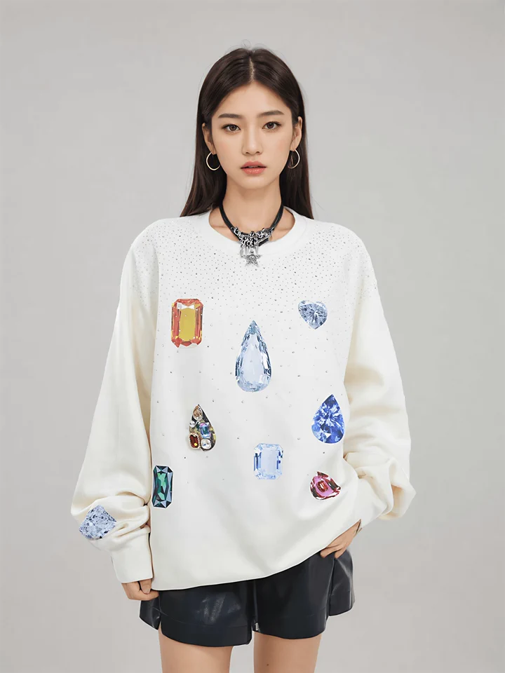 ジュエリー 宝石 トレーナー 水色 カラフル