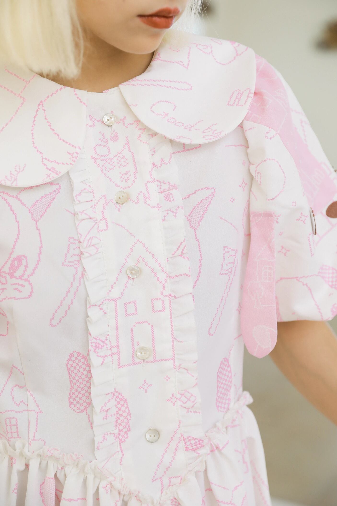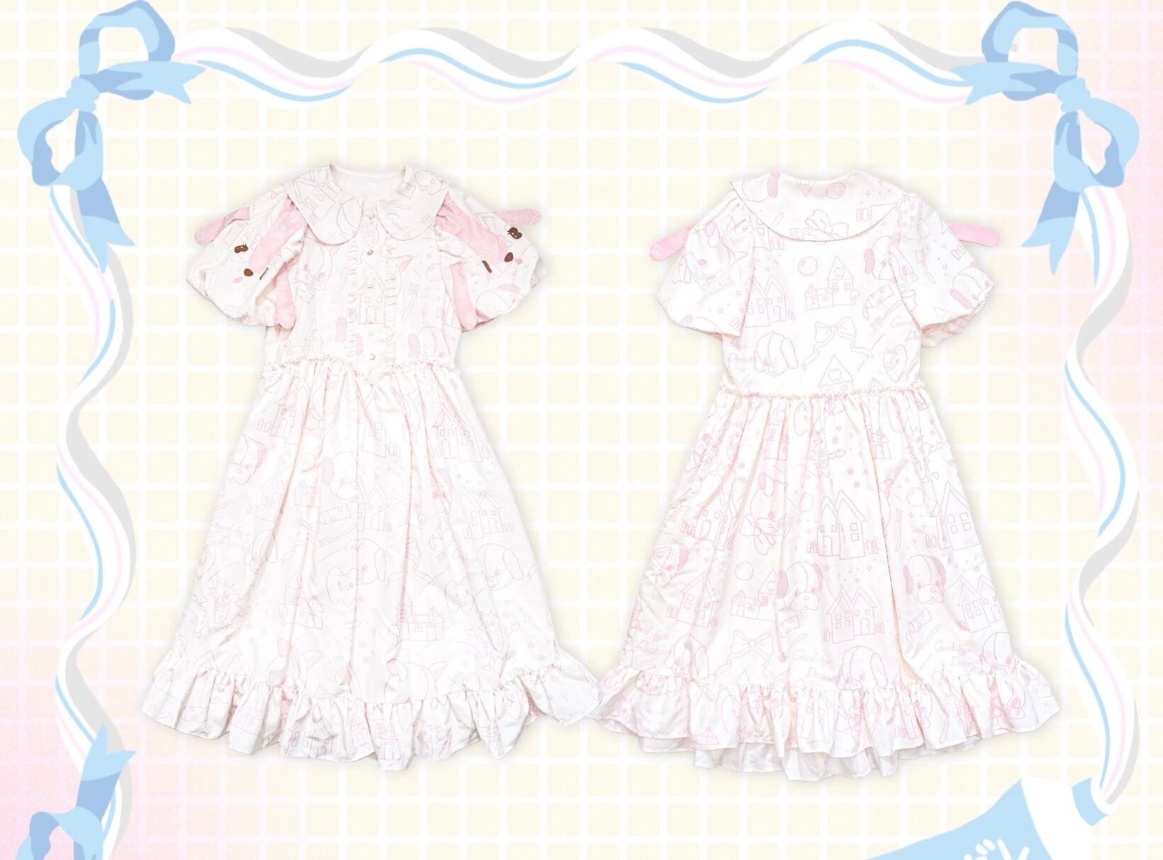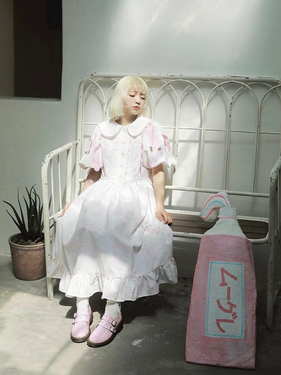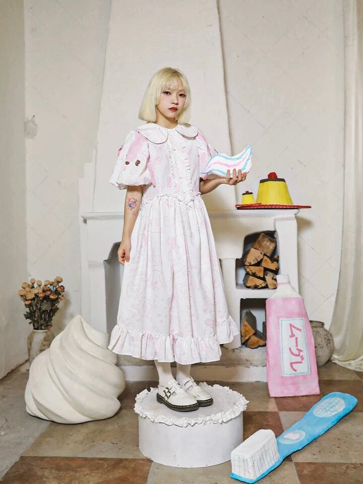 白 ピンク ワンピース 可愛い くまさん ねこ