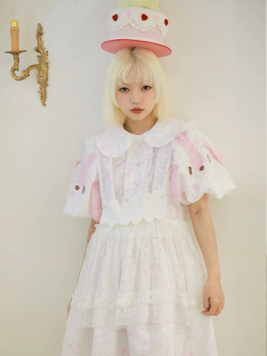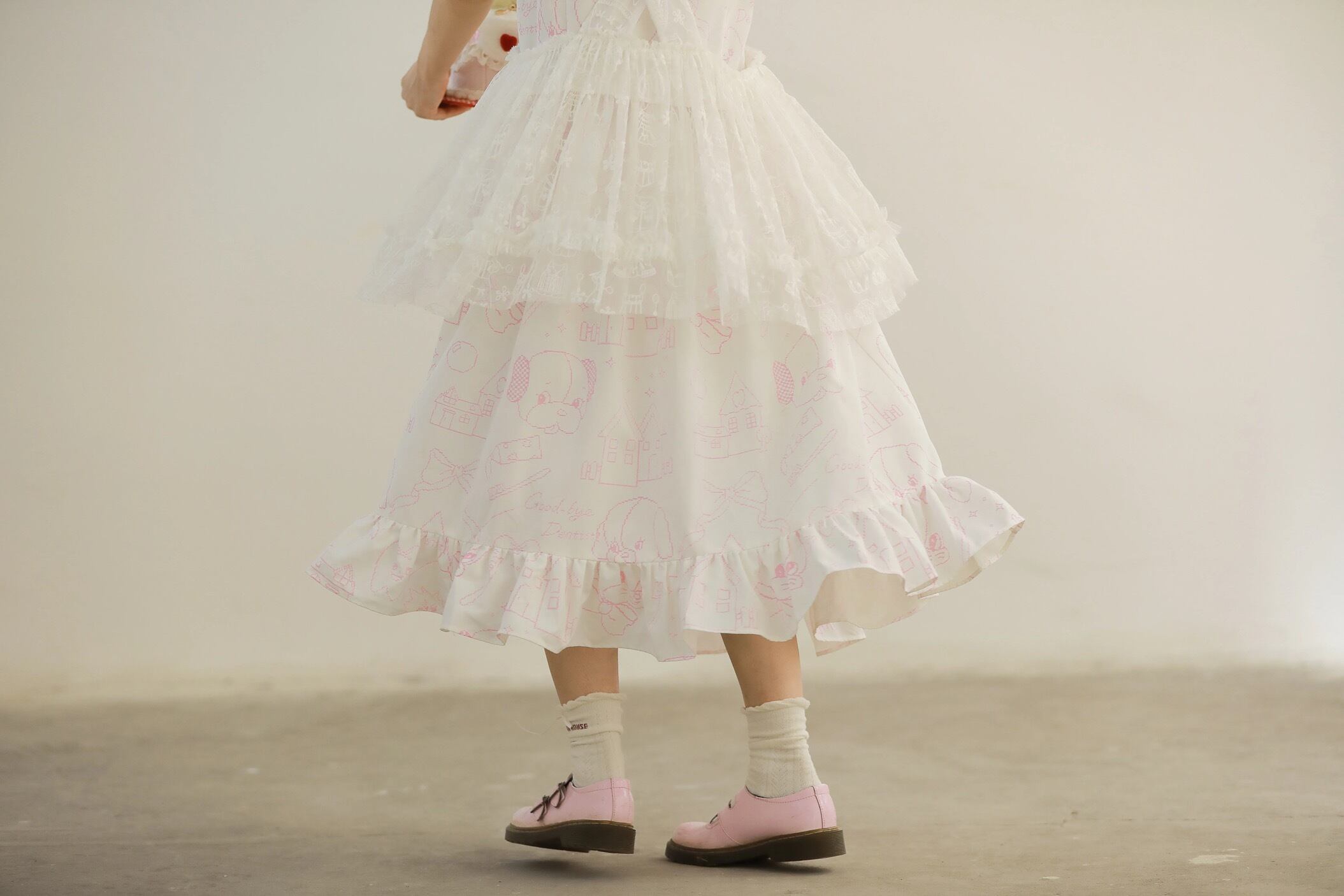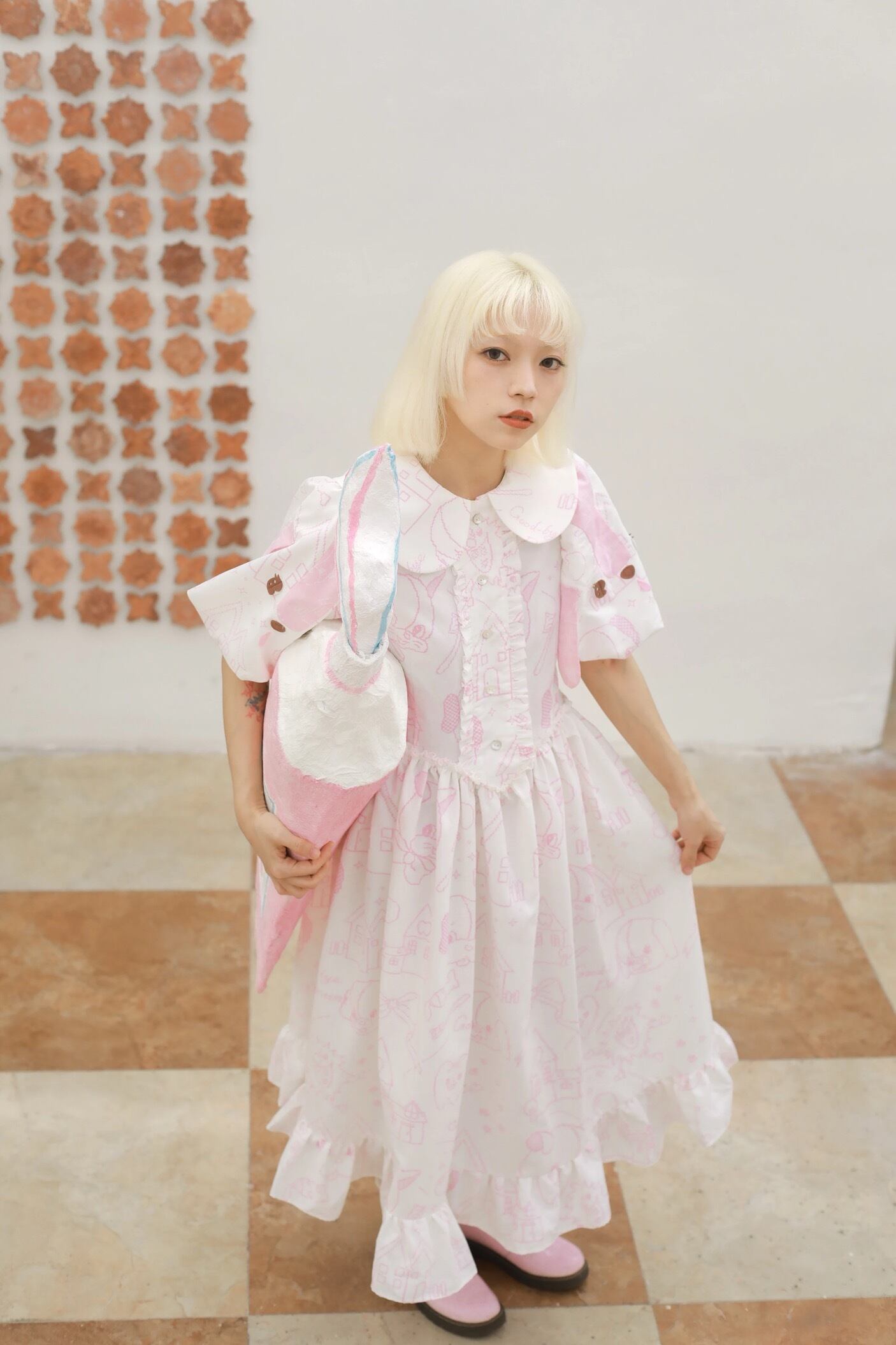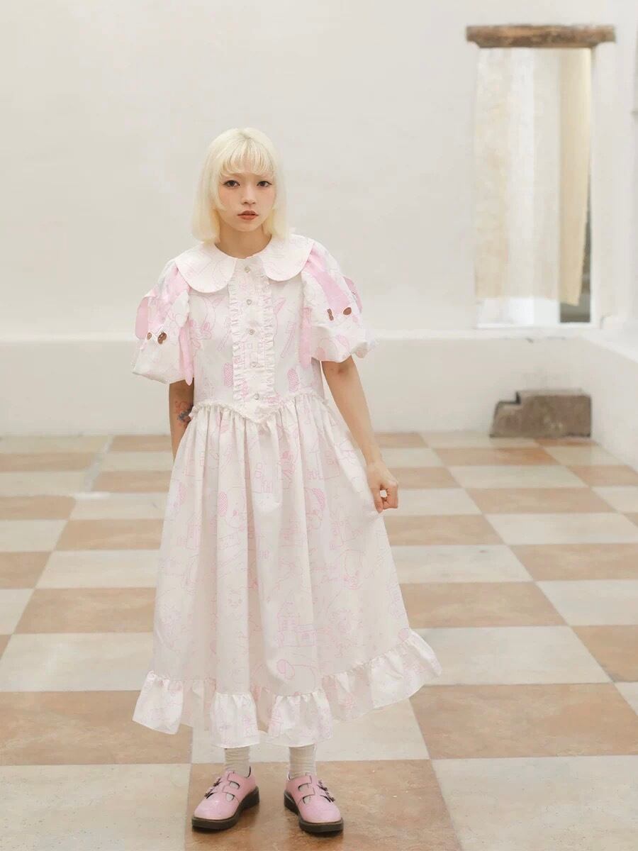 白 ピンク ワンピース 可愛い くまさん ねこ