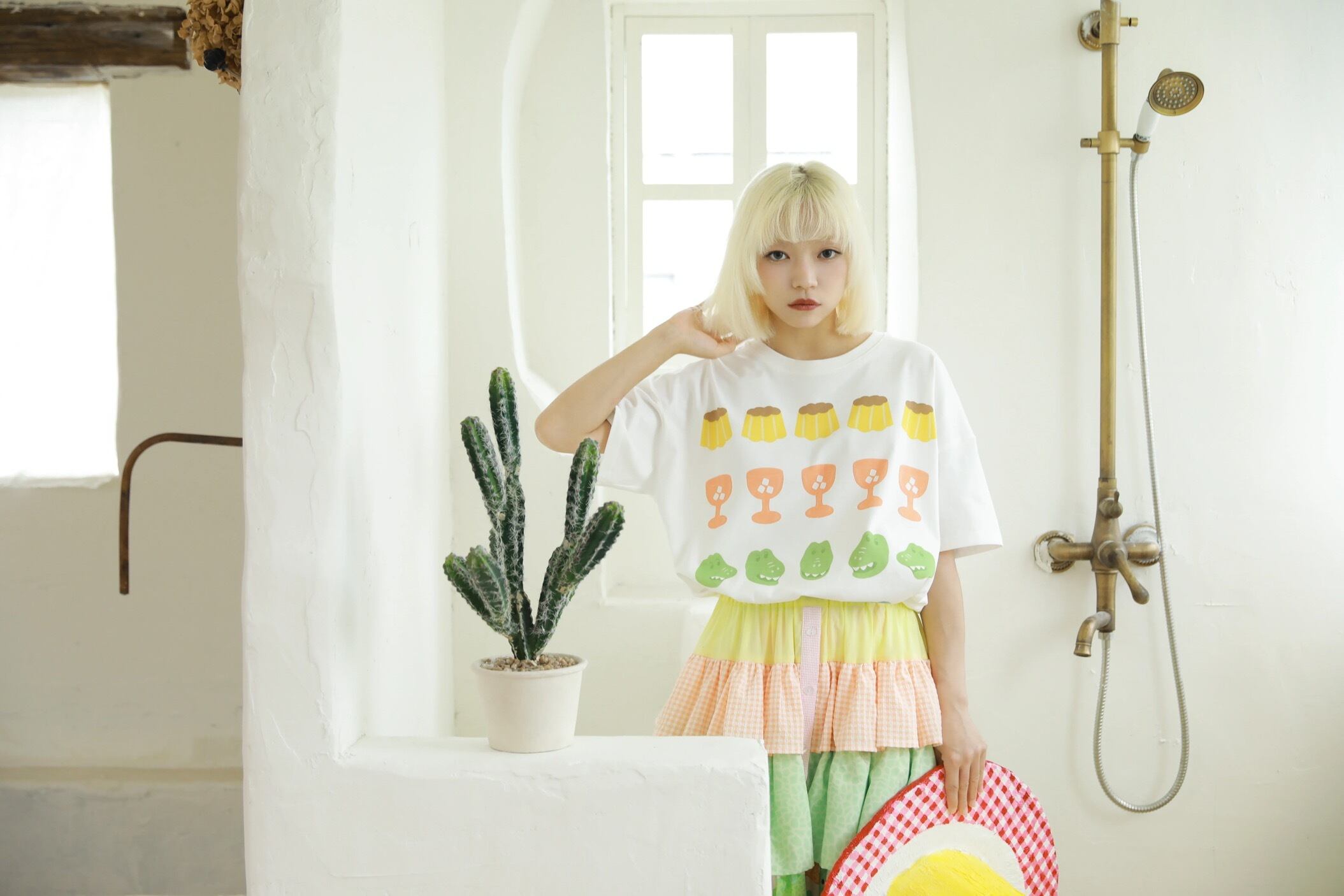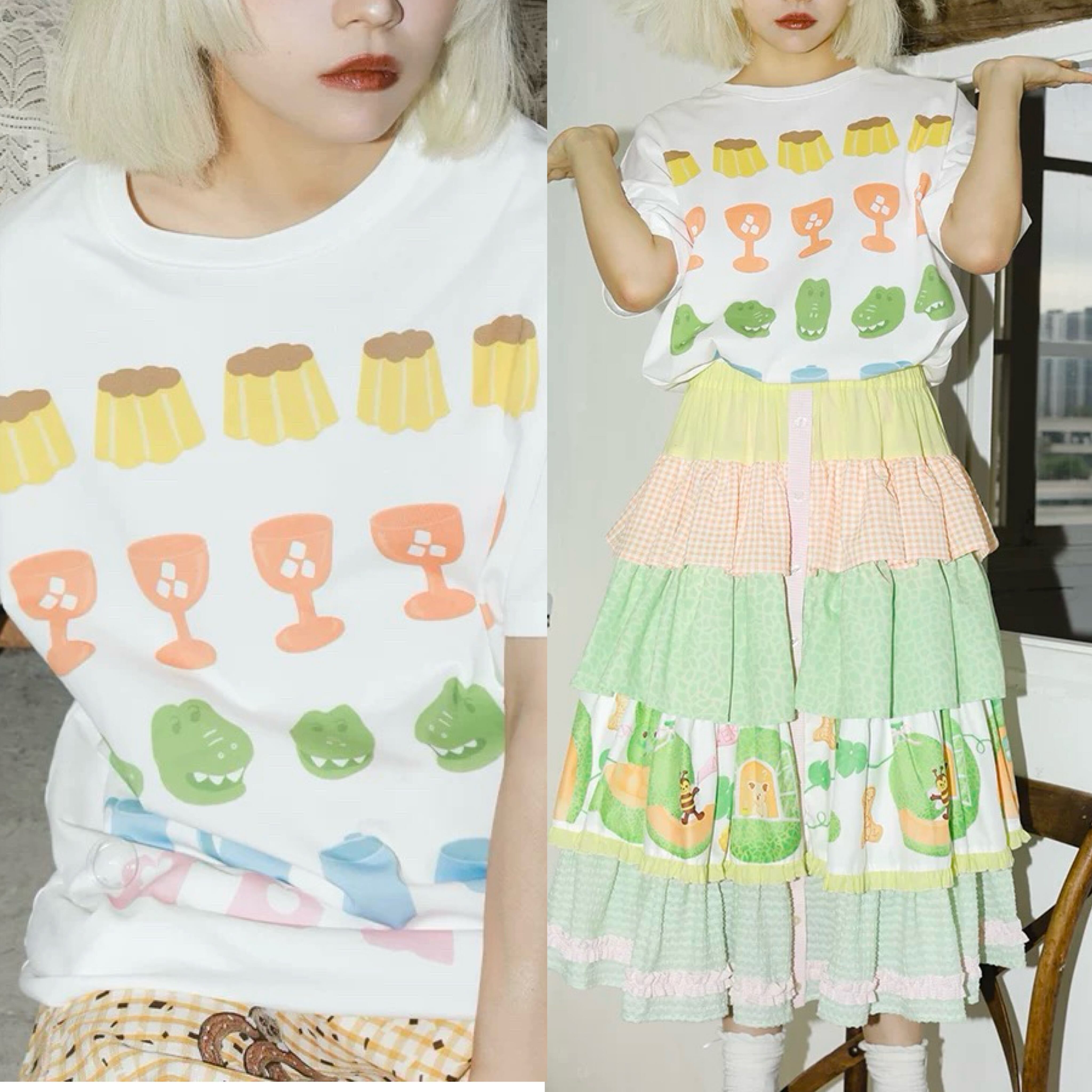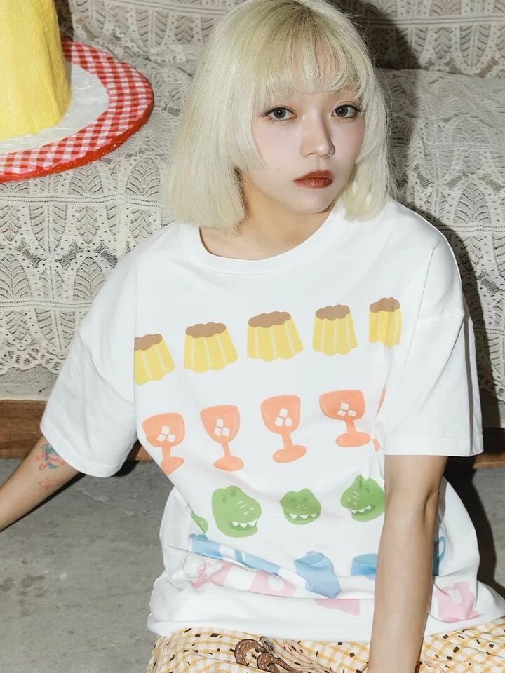 カラフル Tシャツ ブラウス 黄色 プリン 緑