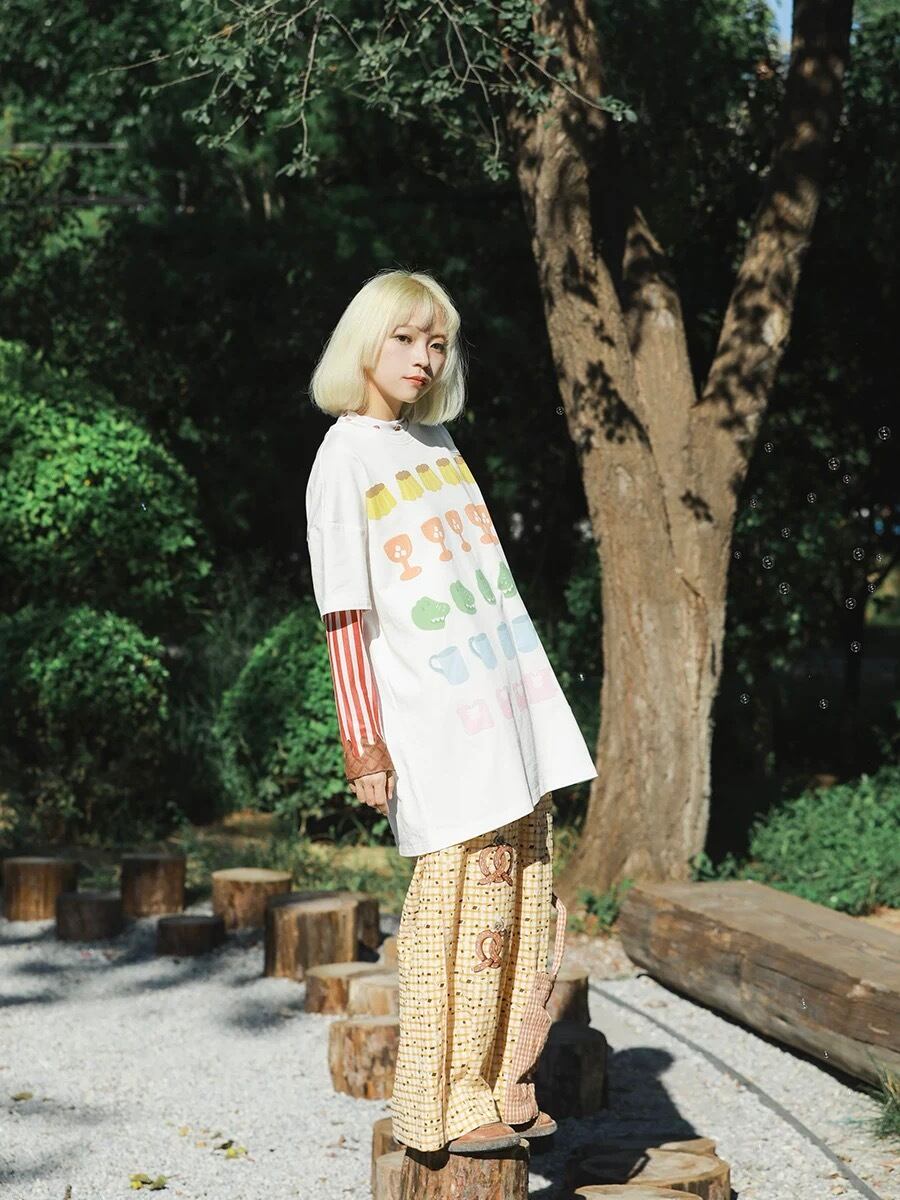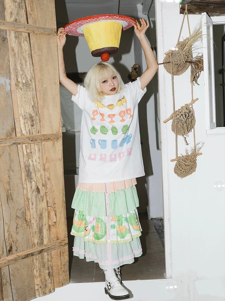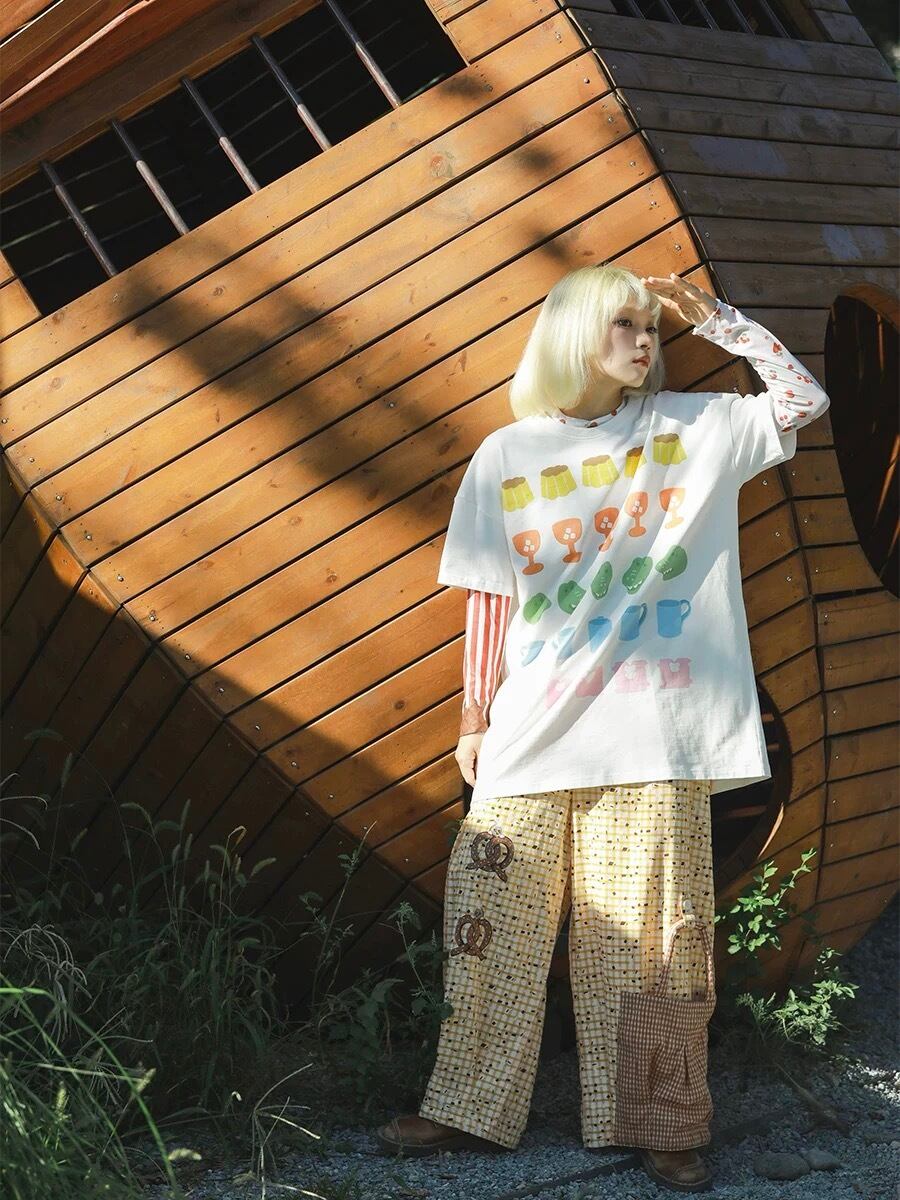 カラフル Tシャツ ブラウス 黄色 プリン 緑