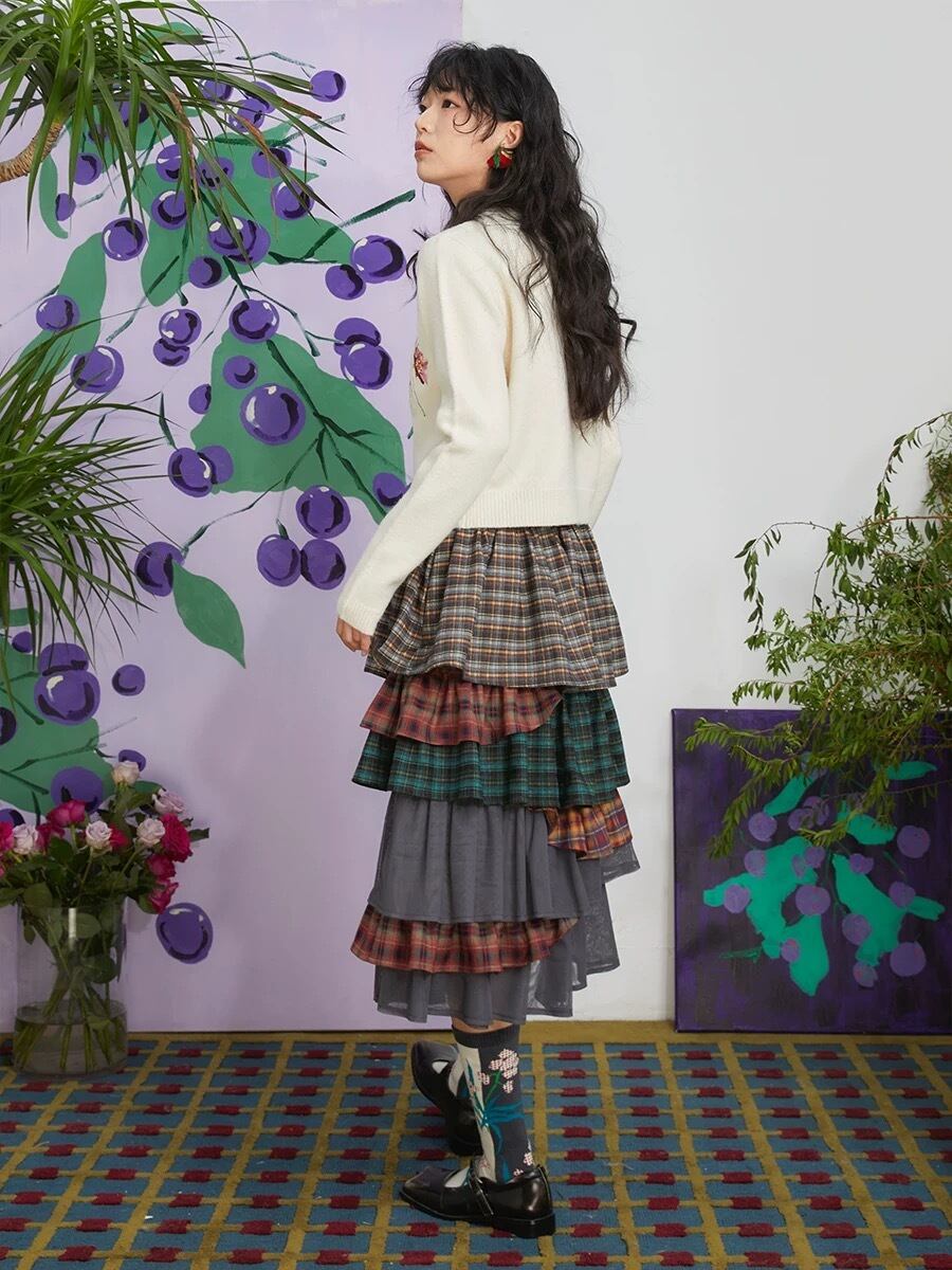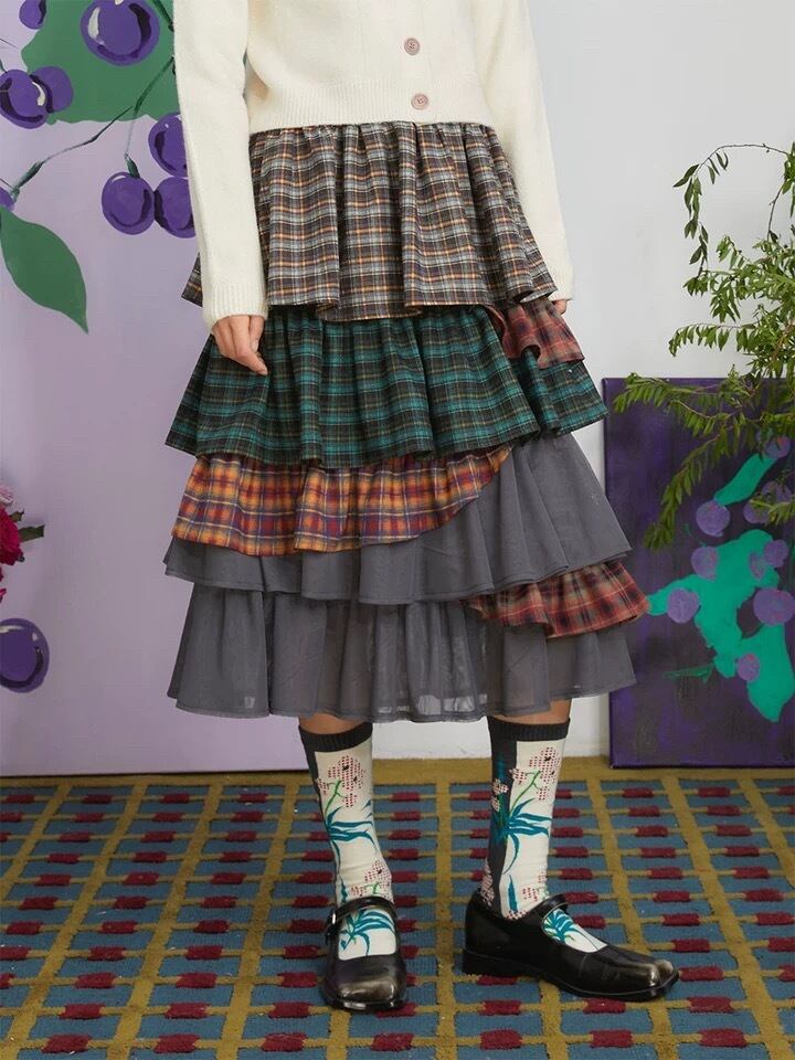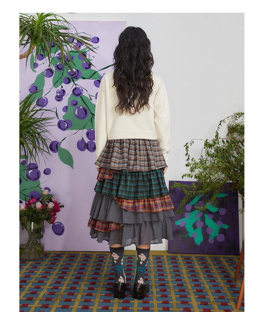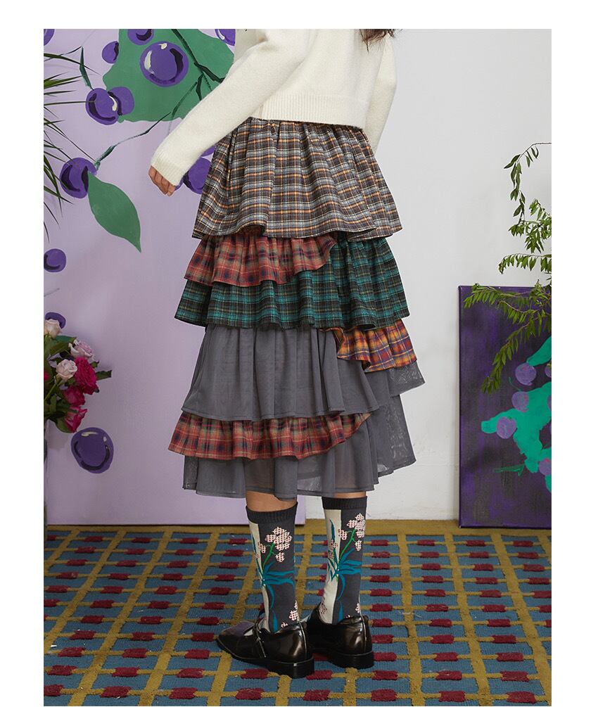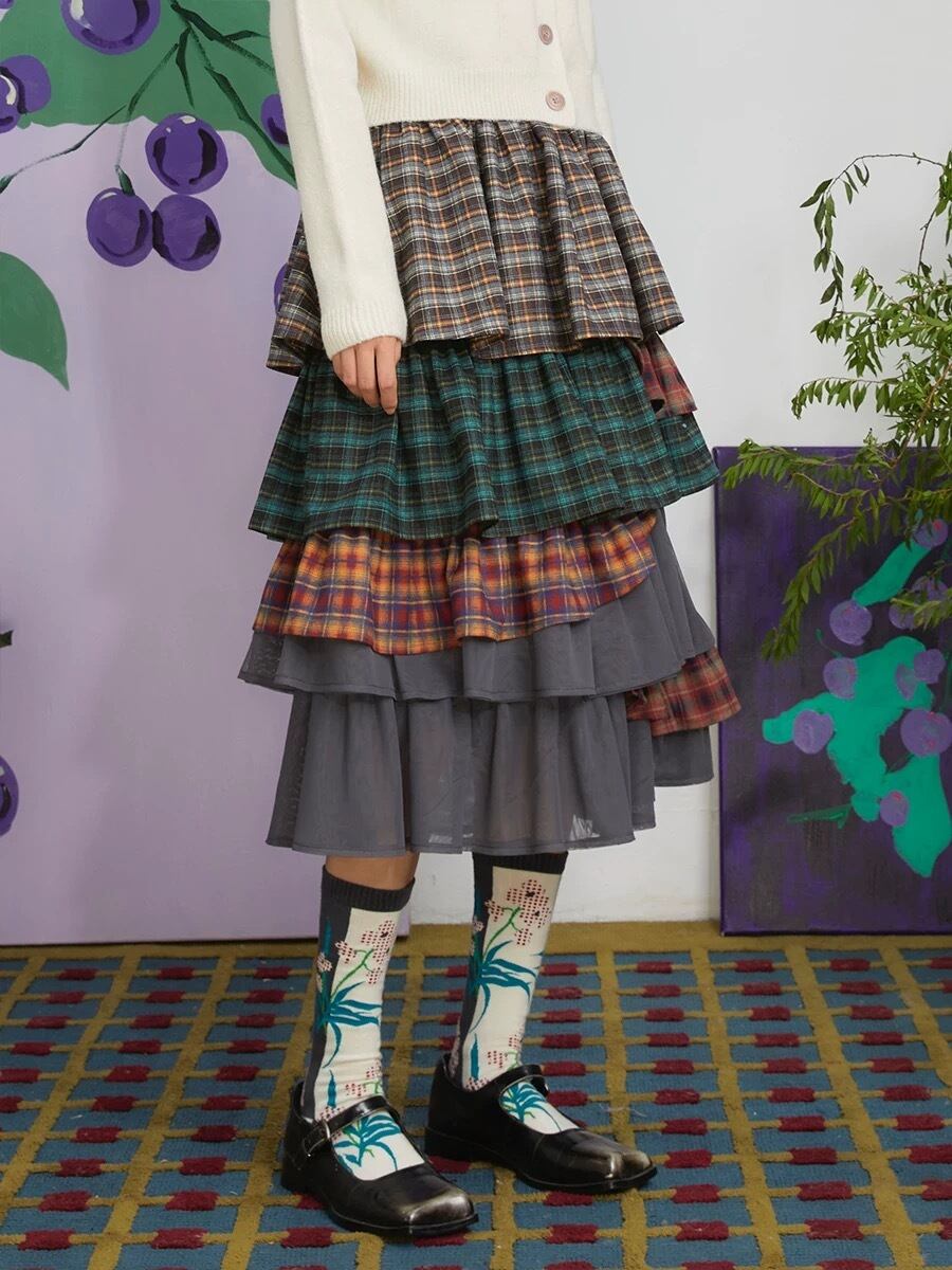 チェック だんだん グラデ 赤 ベージュ 緑 スカート