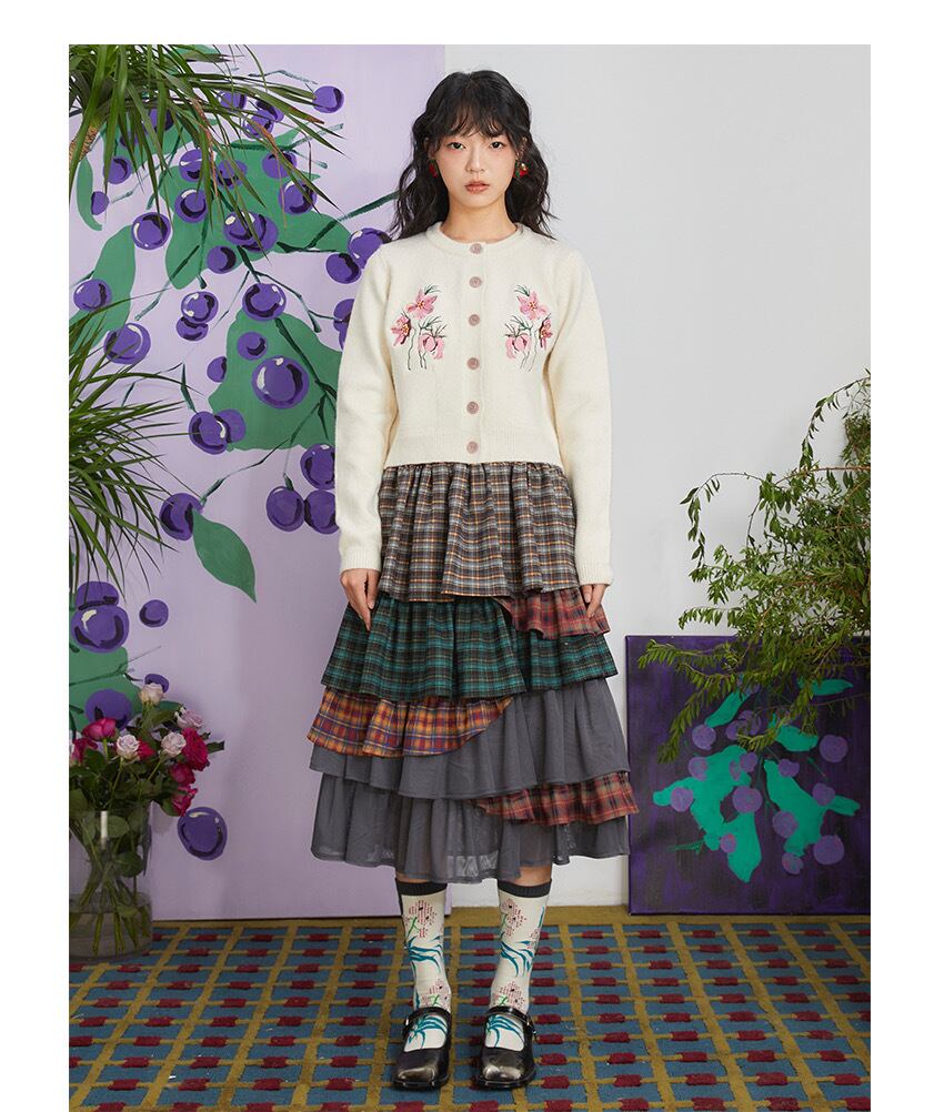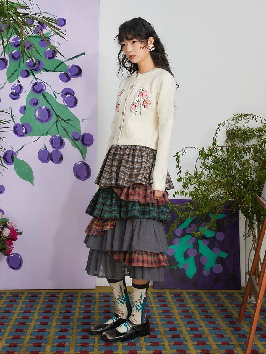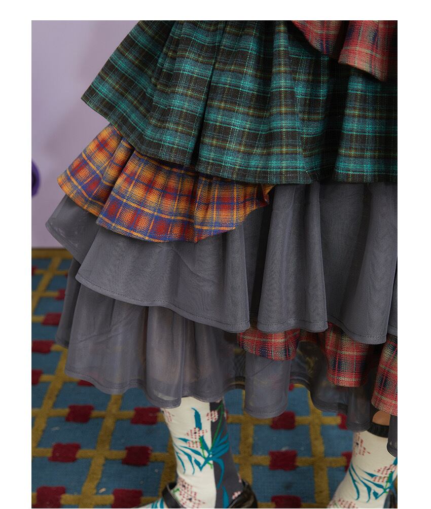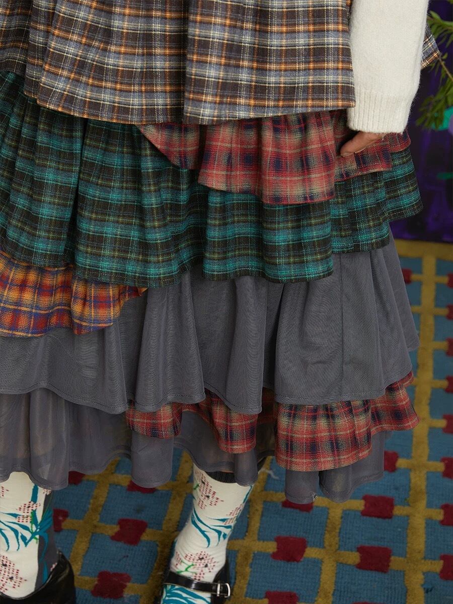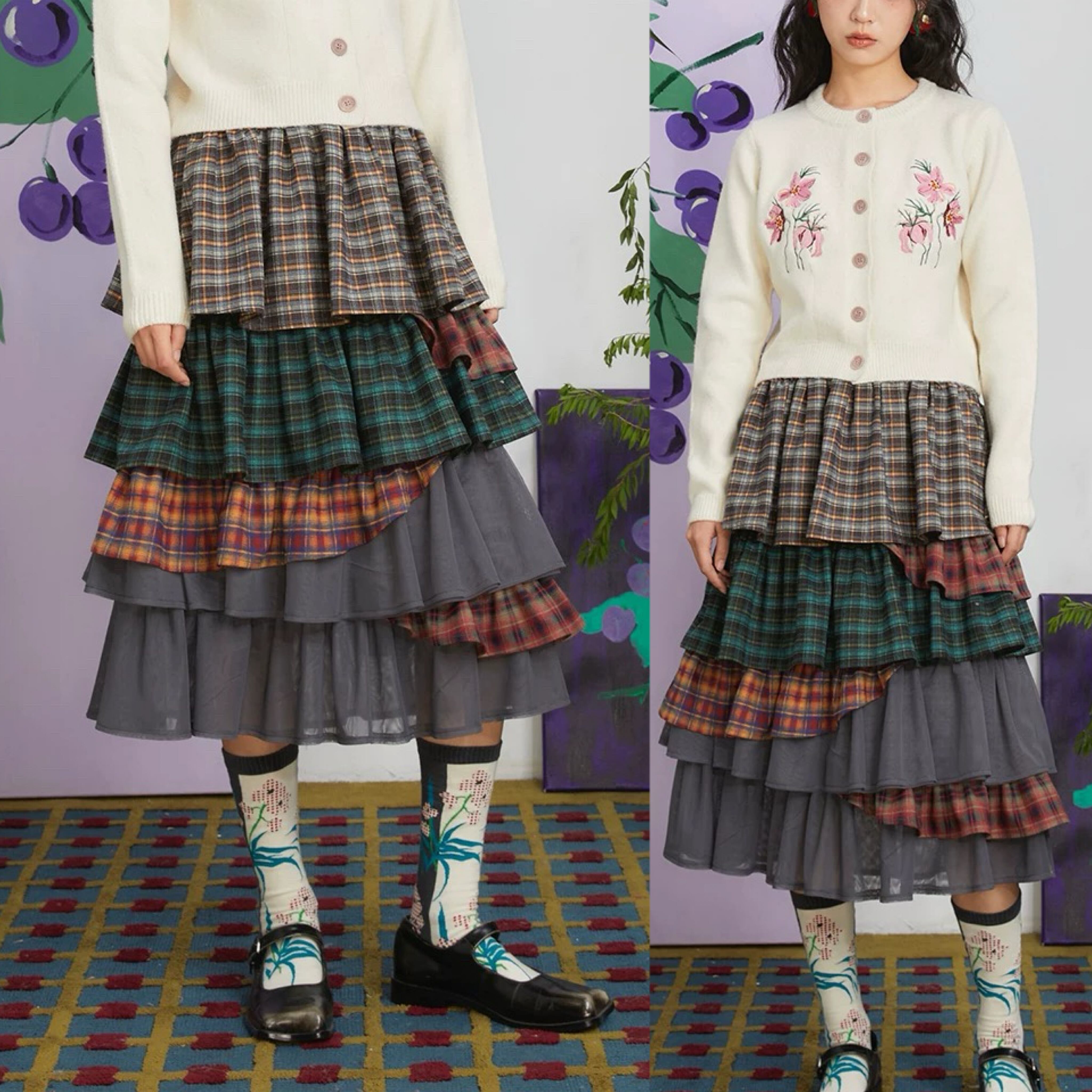チェック だんだん グラデ 赤 ベージュ 緑 スカート