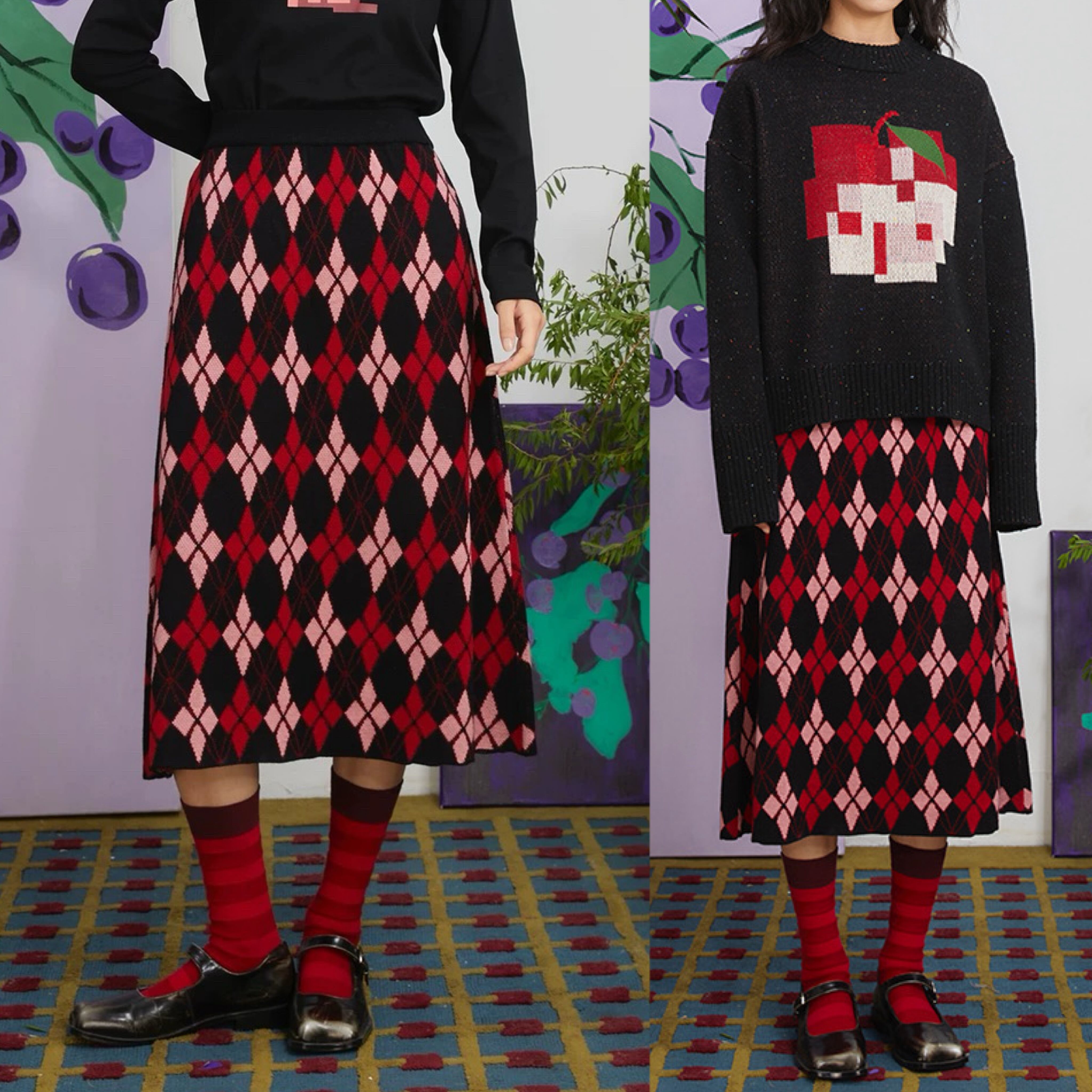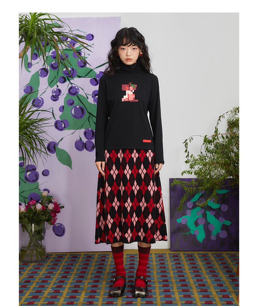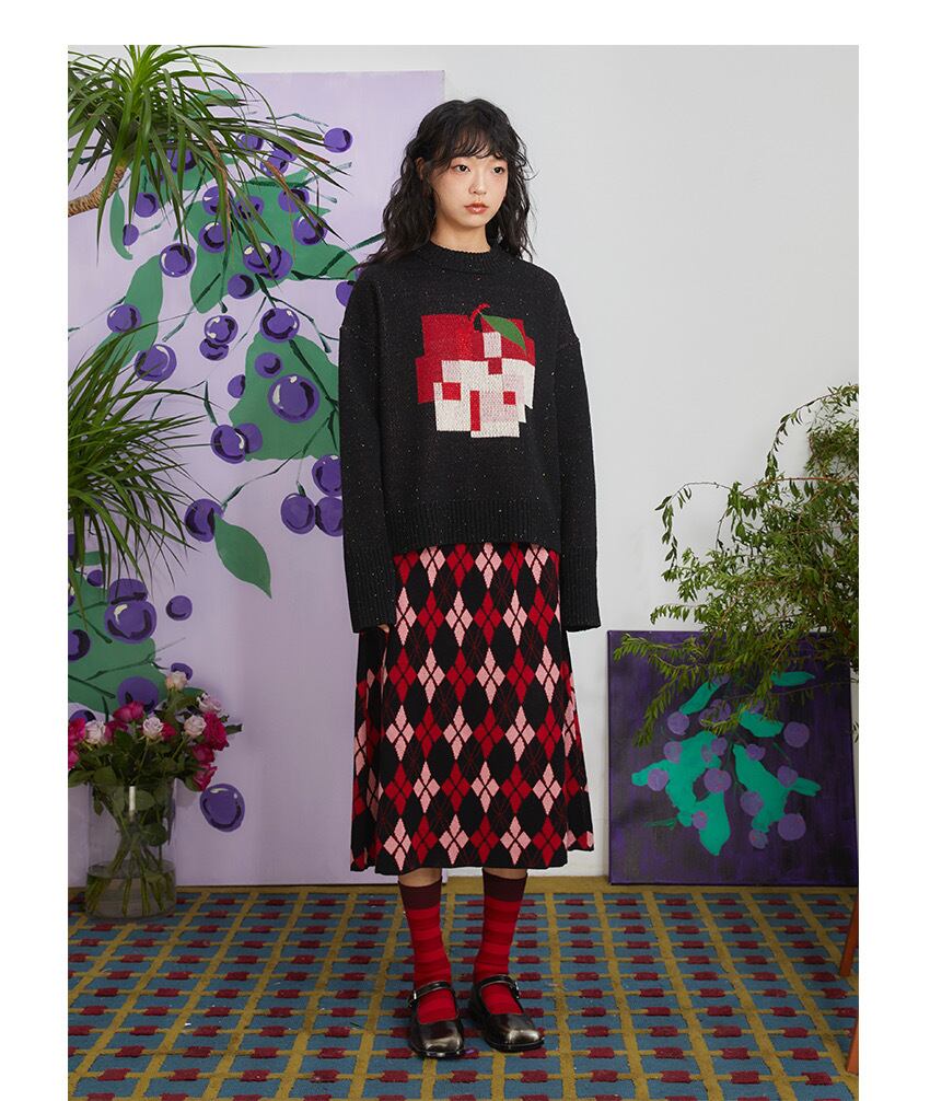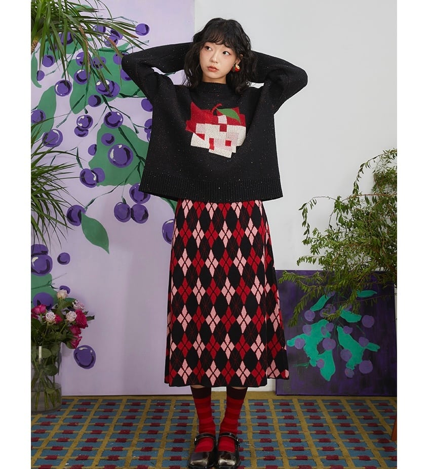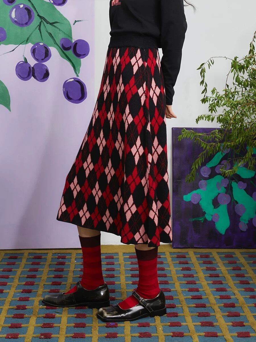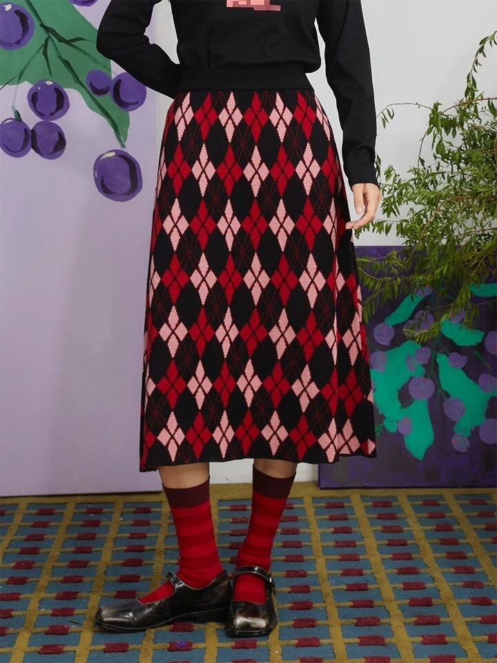 赤 黒 ニット スカート ボトムス ガーリー