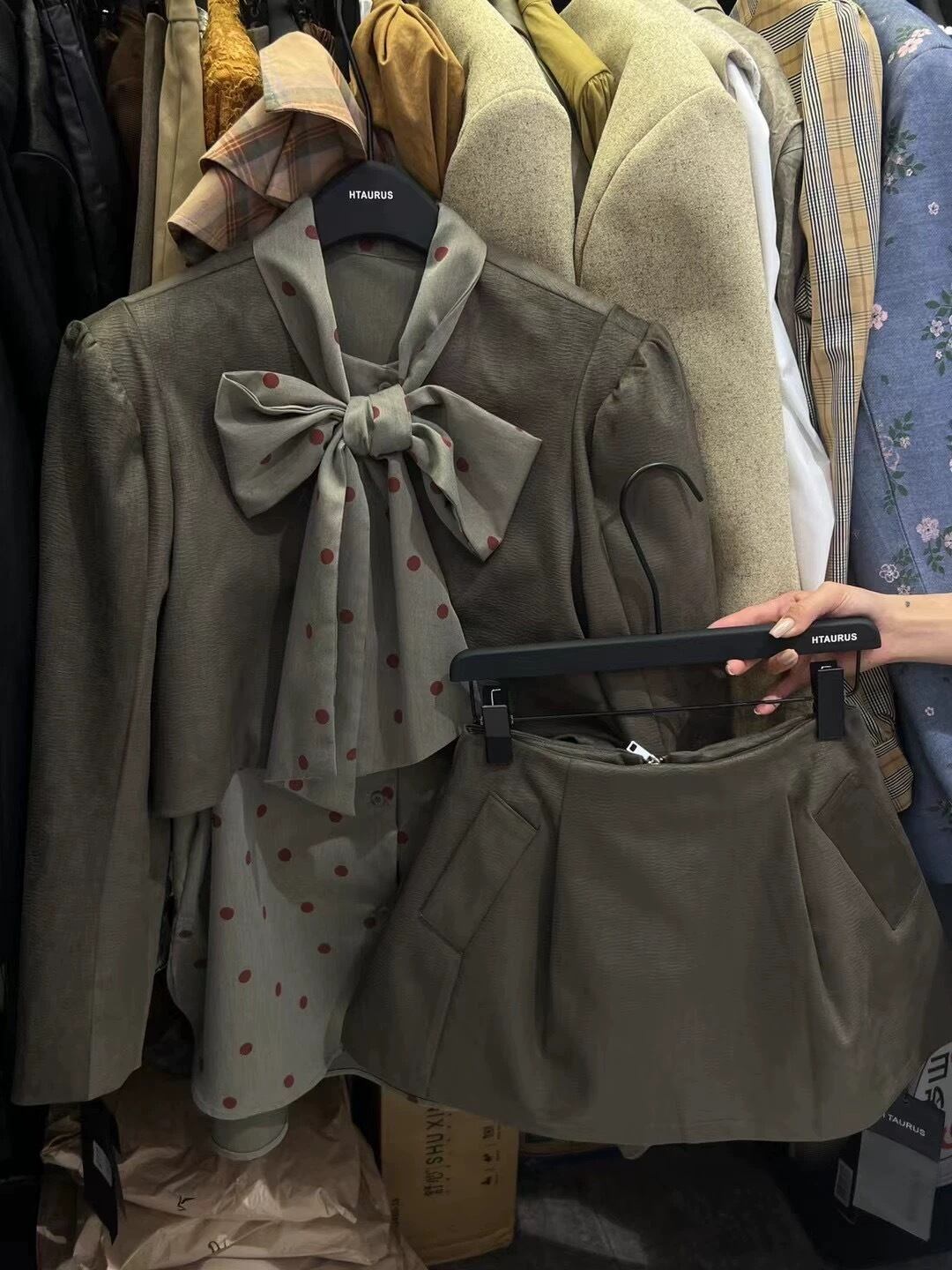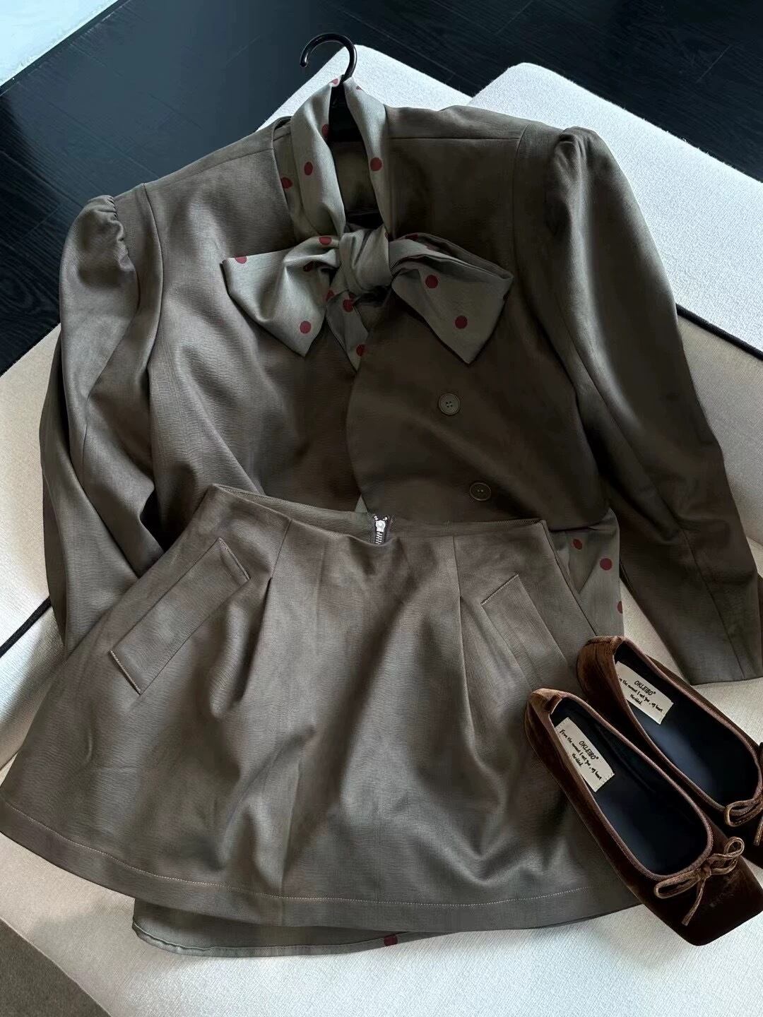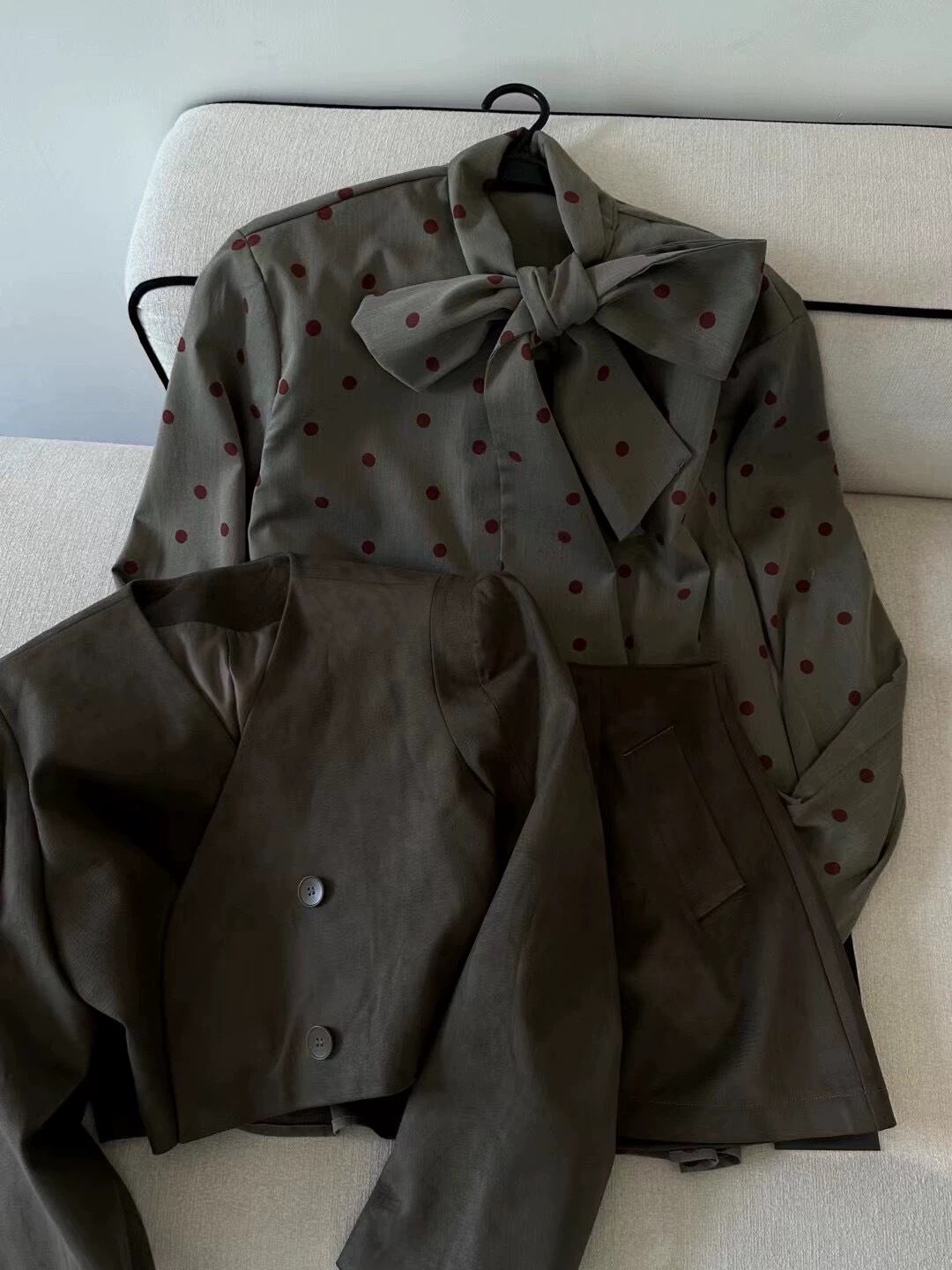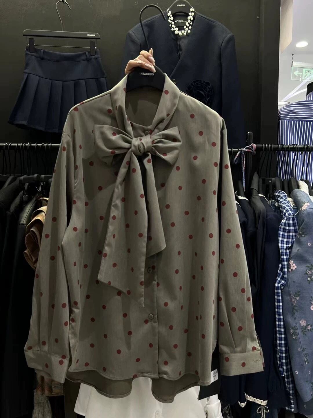 水玉 赤 グレー カーキ 茶色 ブラウス シャツ