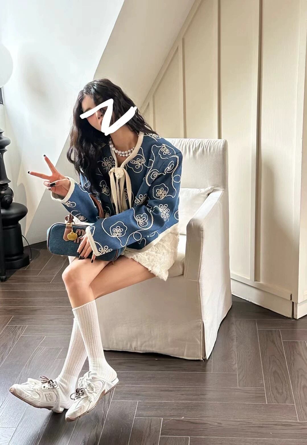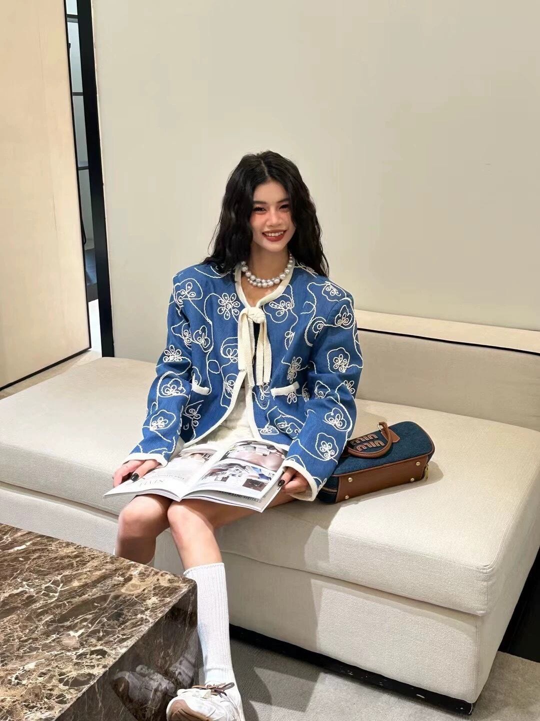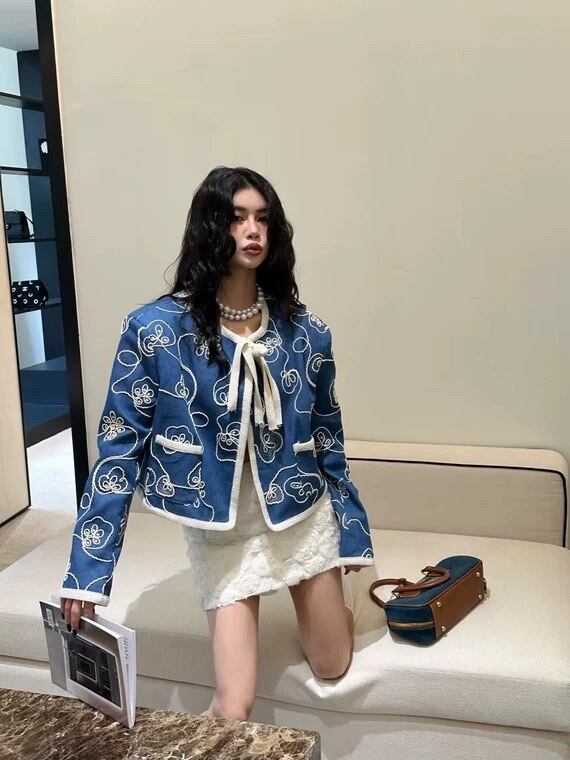 ジャケット 水色 ブルー 花柄 フラワー 青 デニム
