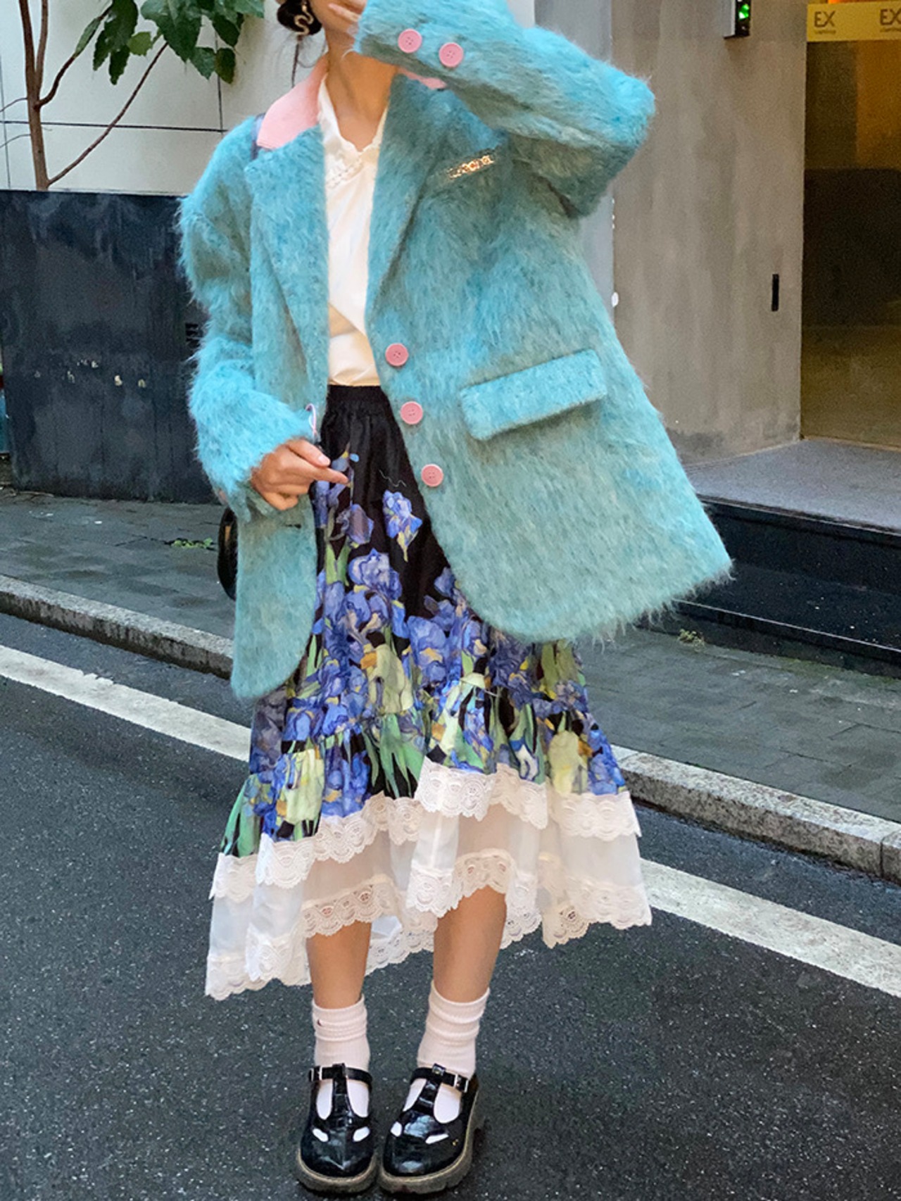 ジャケット アウター カーディガン 緑 水色
