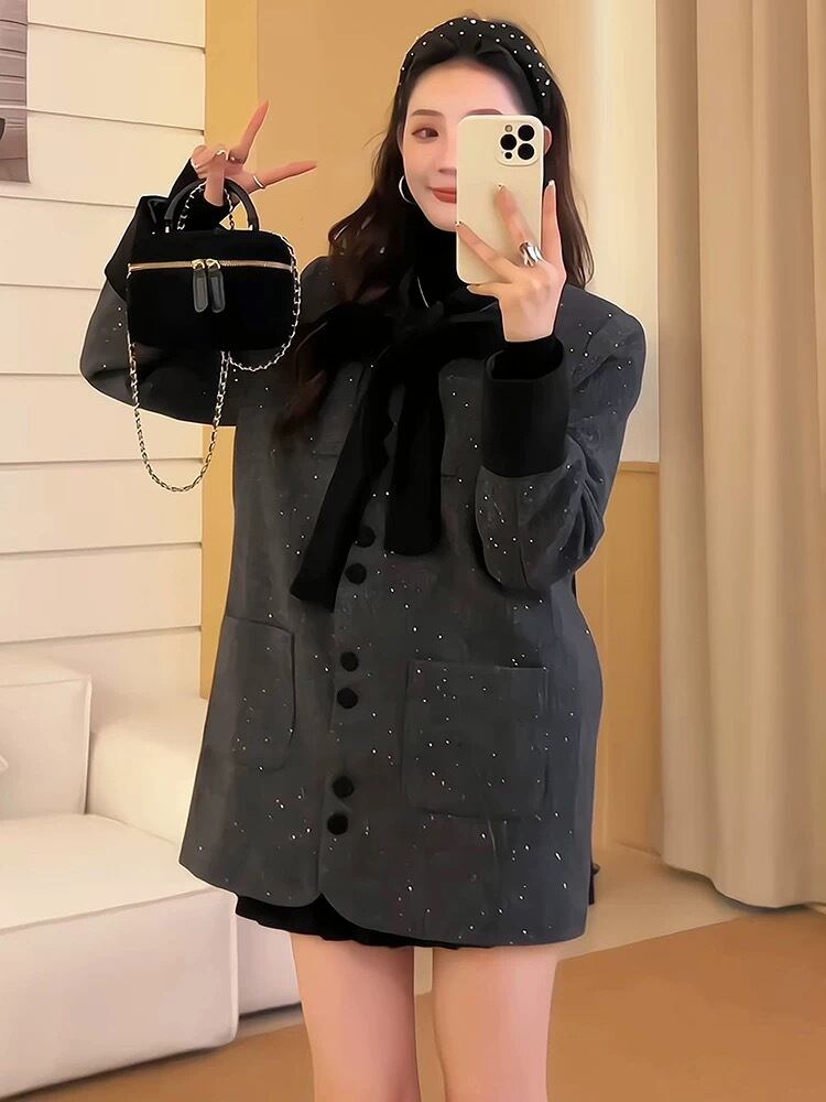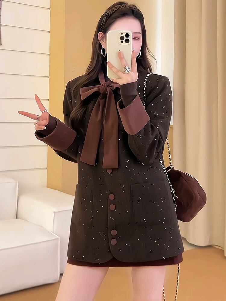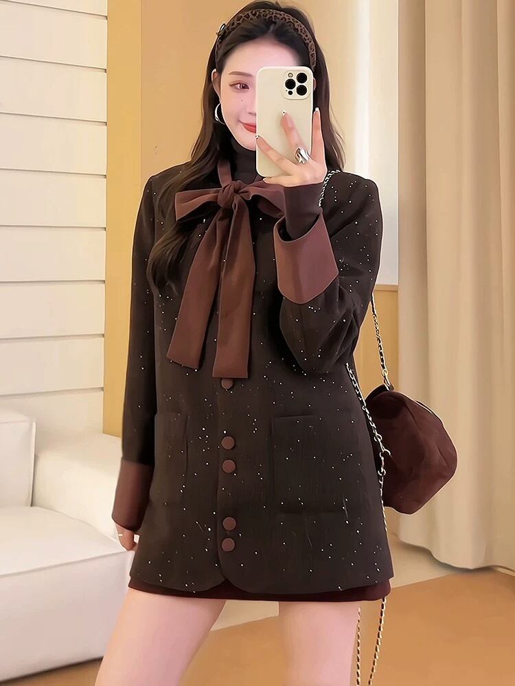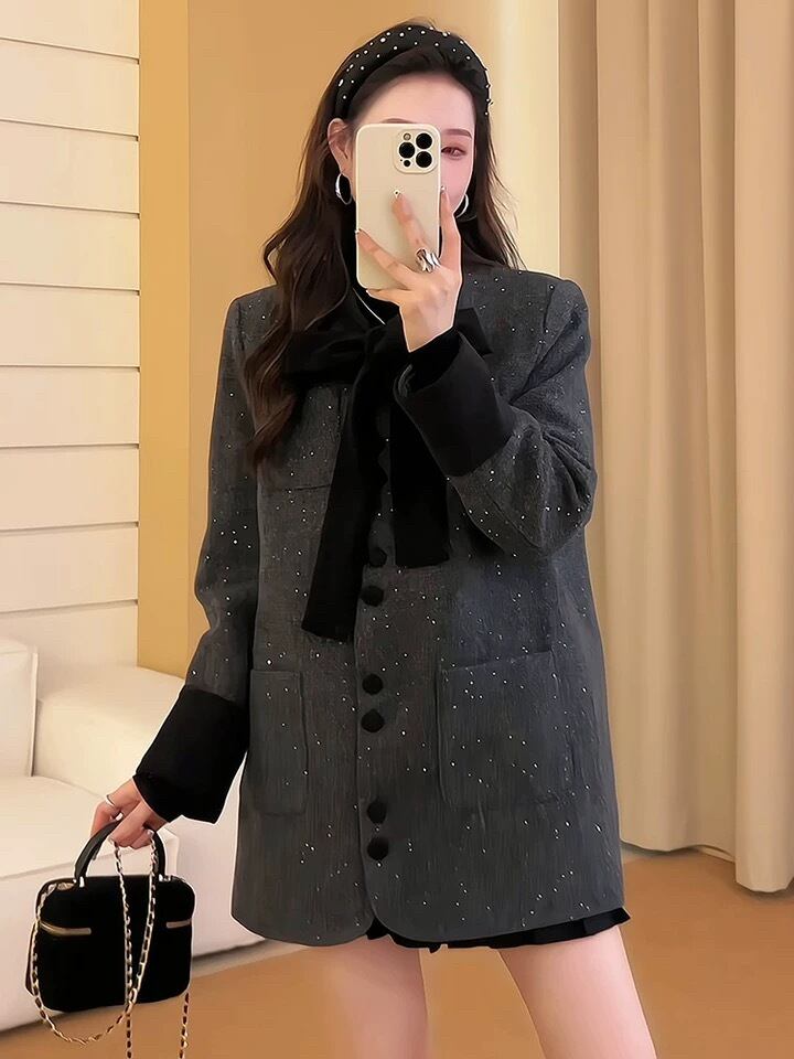 黒 茶色 リボン ジャケット ラメ キラキラ カーディガン